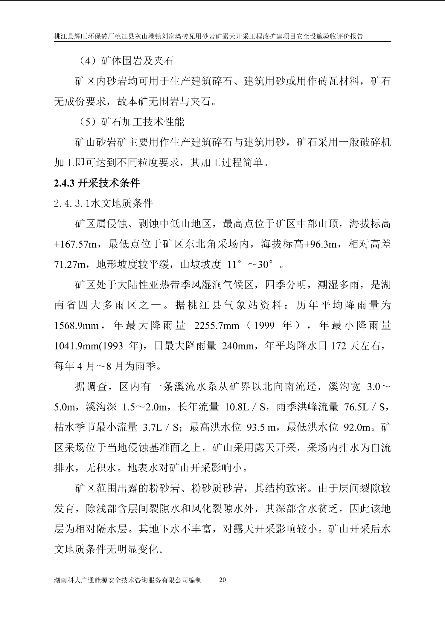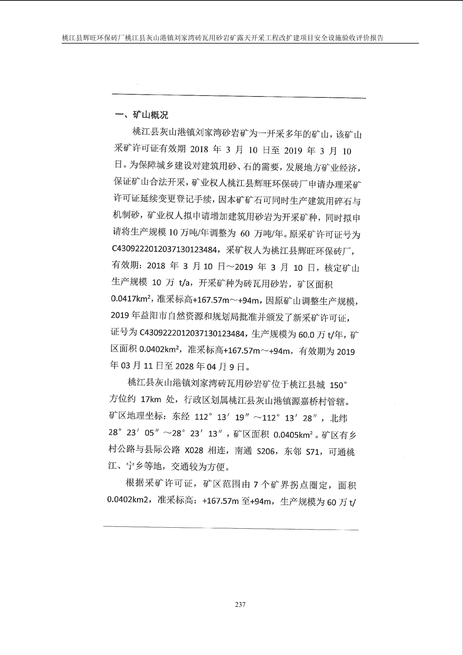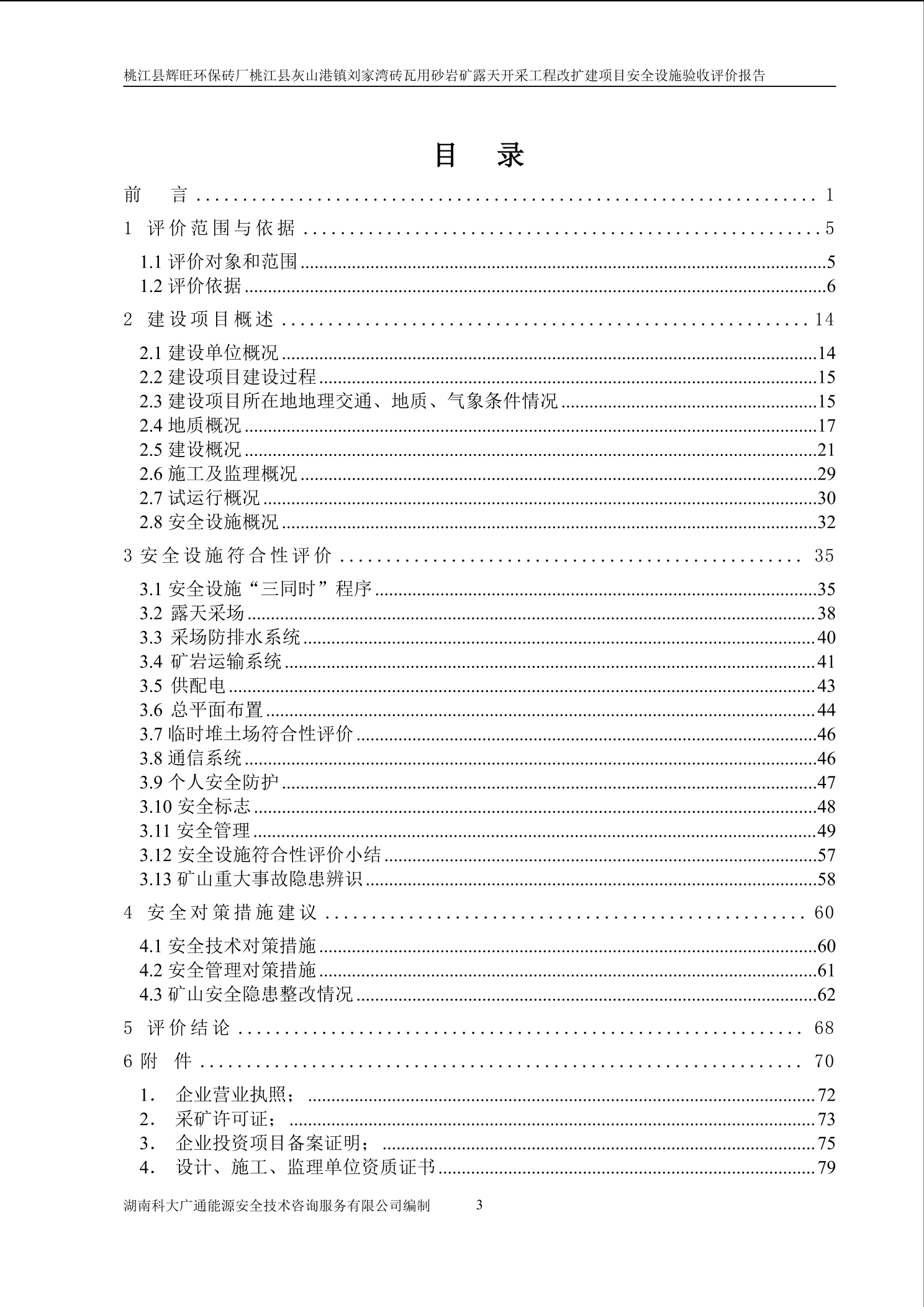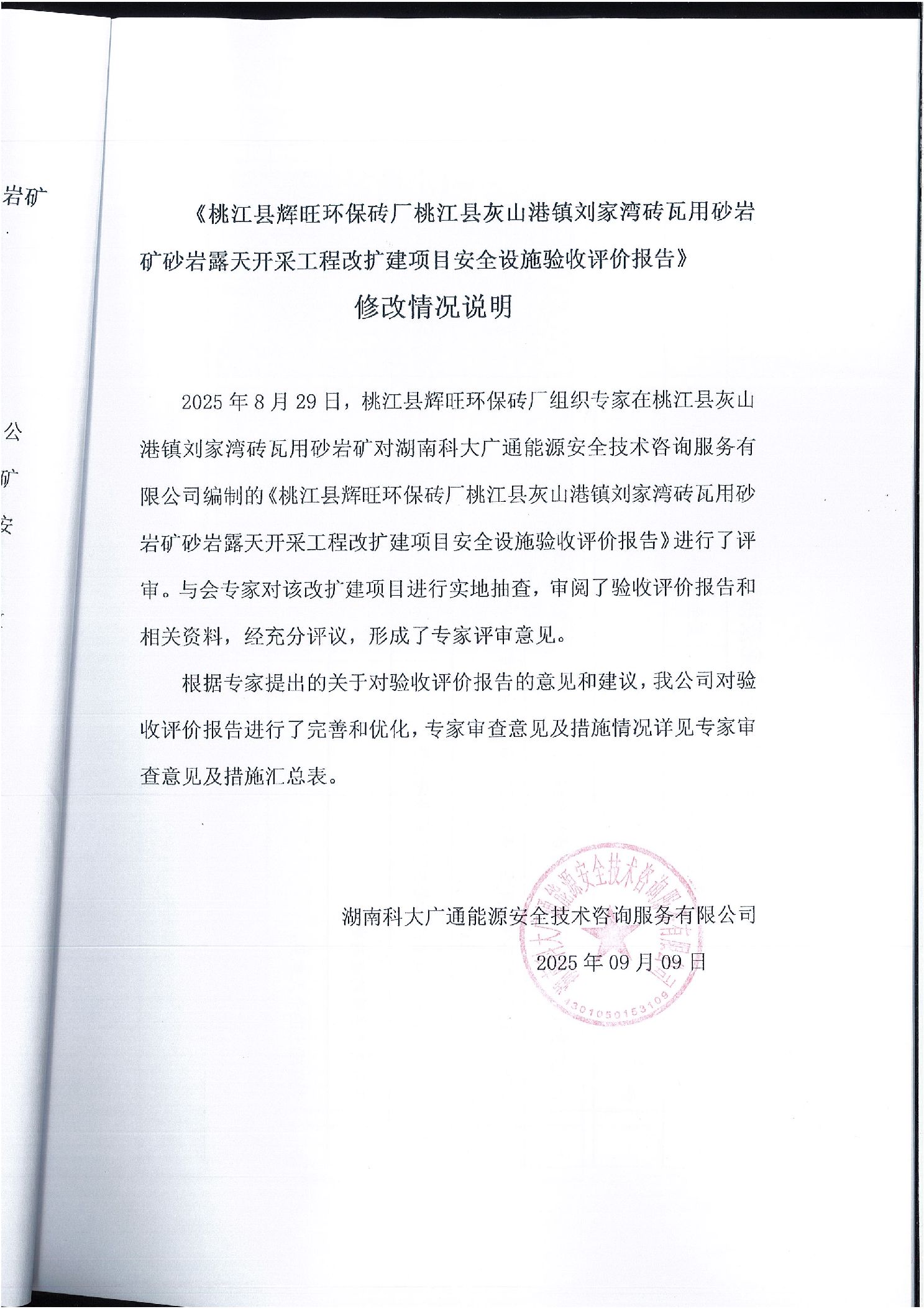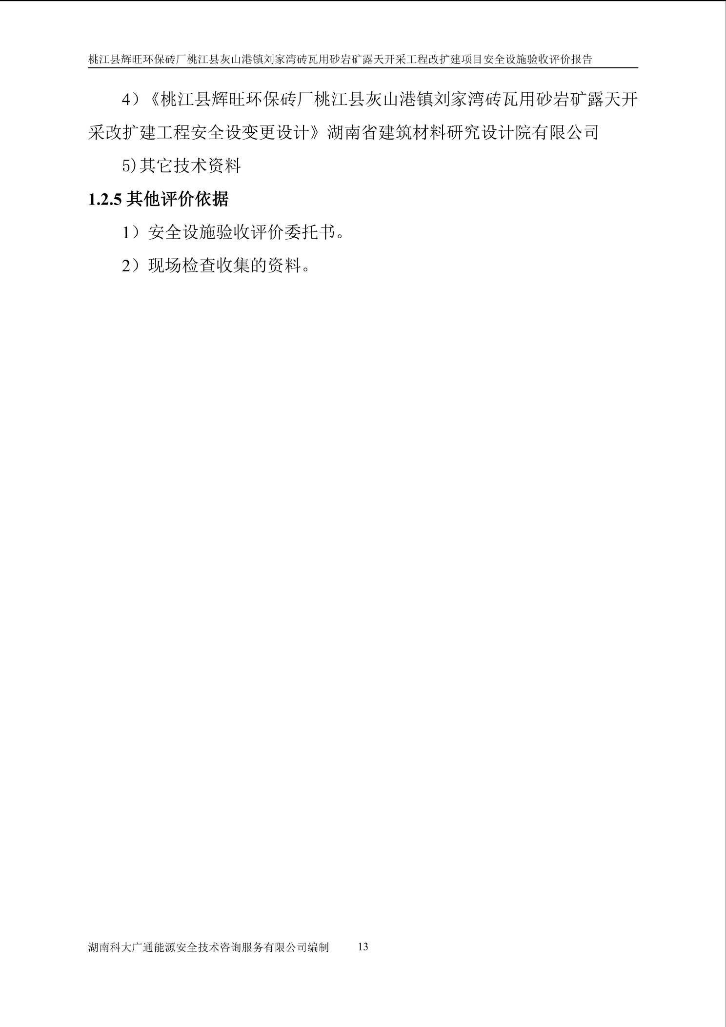 桃江县灰山港镇刘家湾砂岩矿露天开采工程改扩建项目安全设施验收评价报告