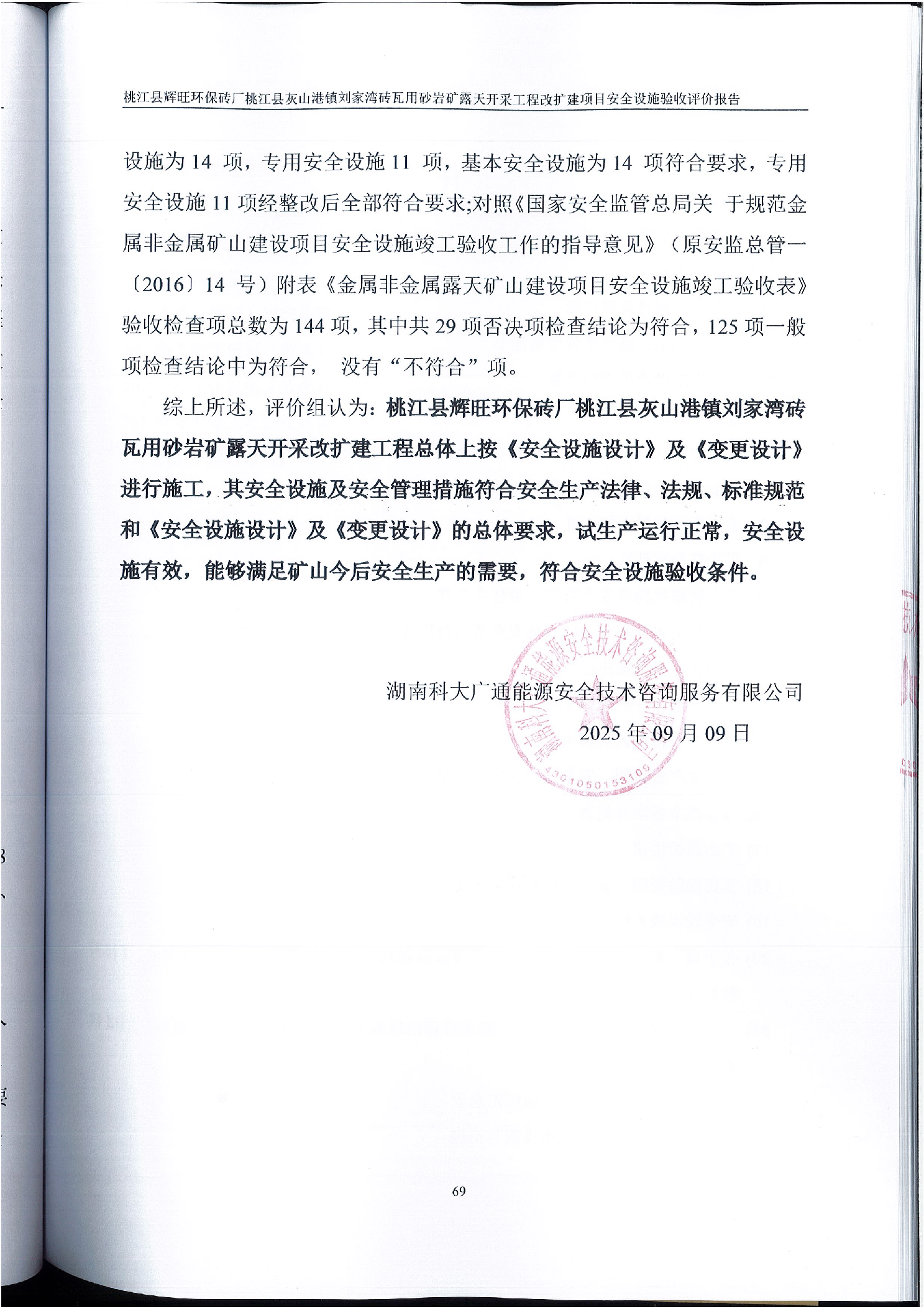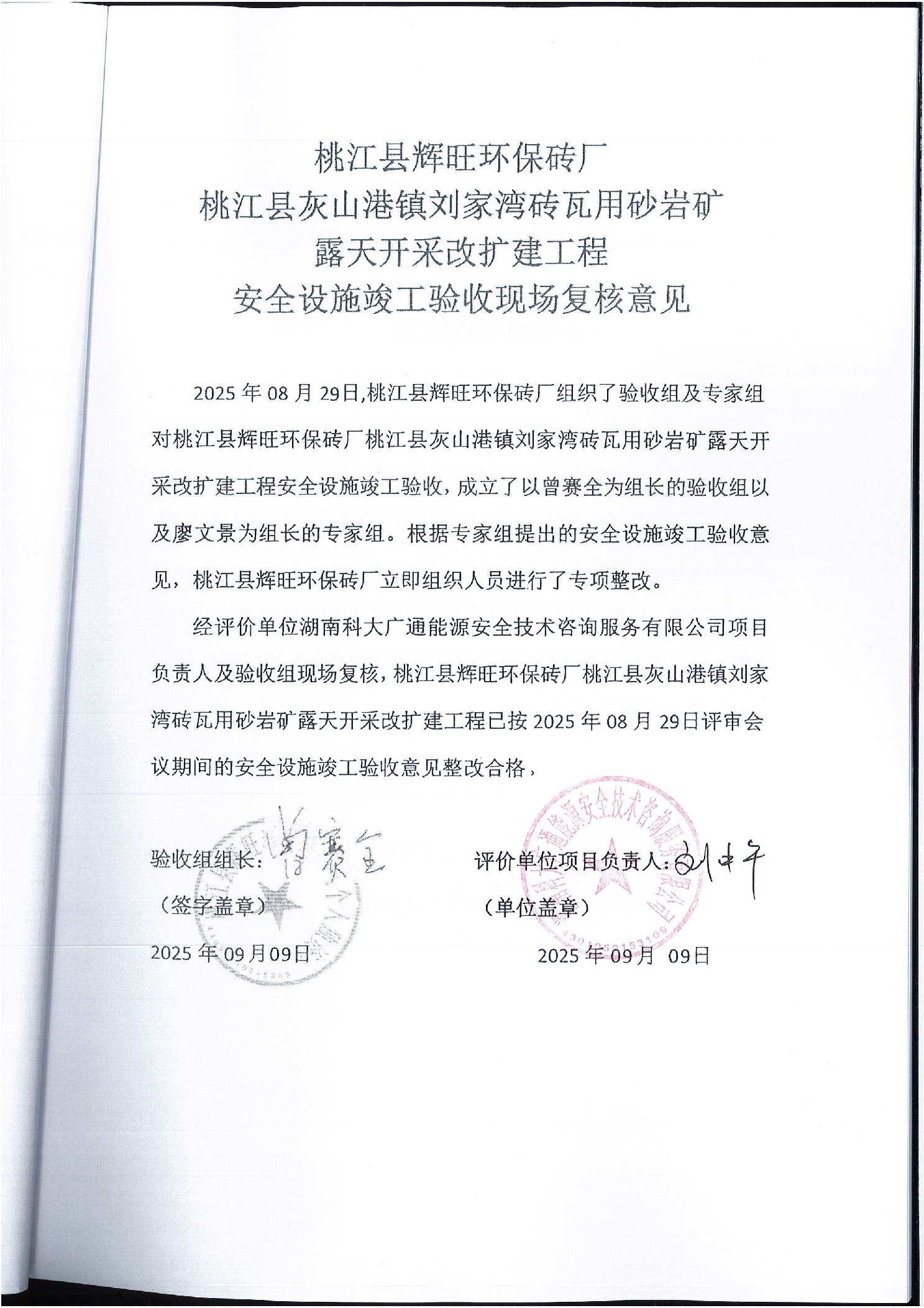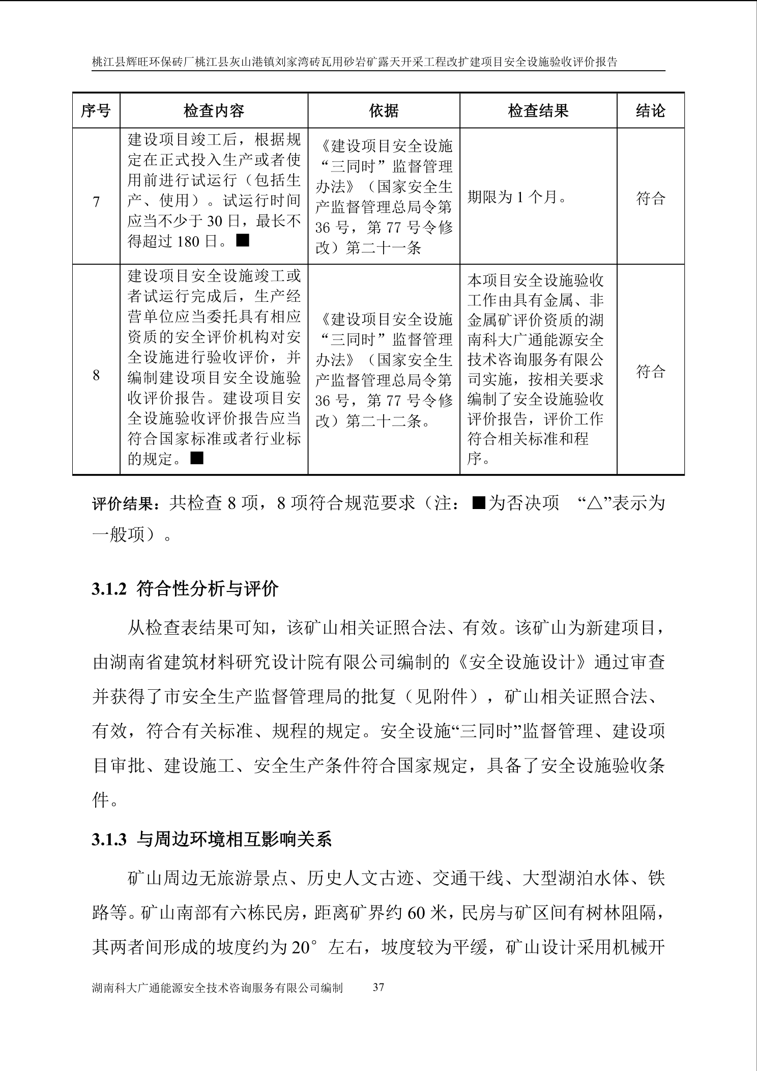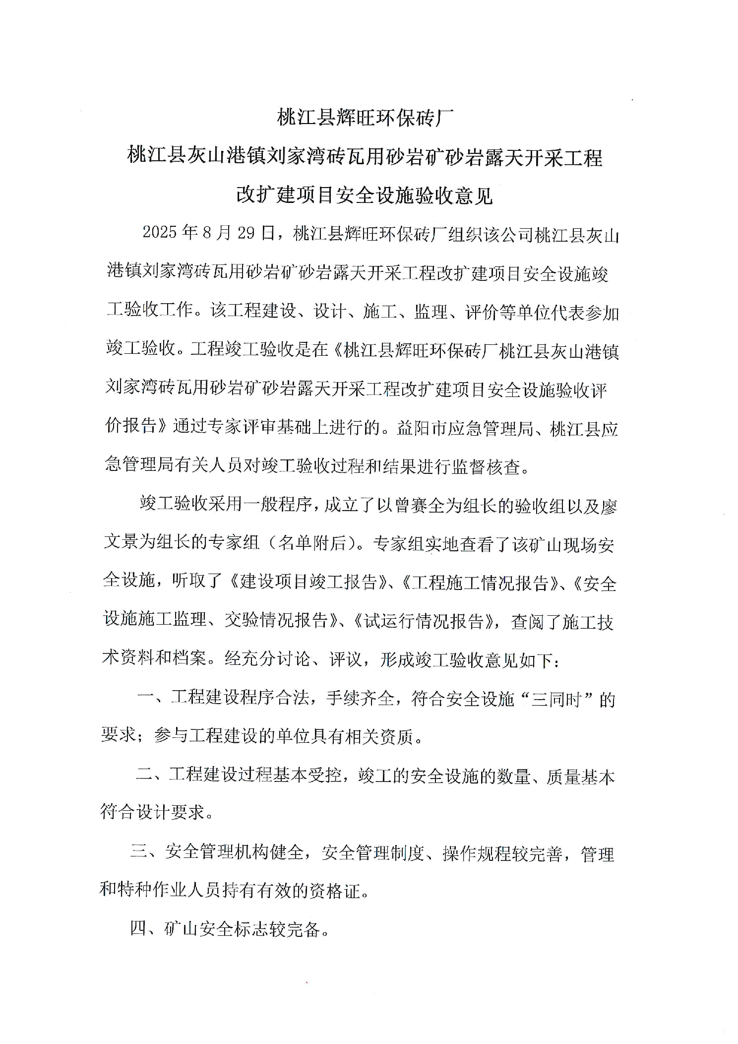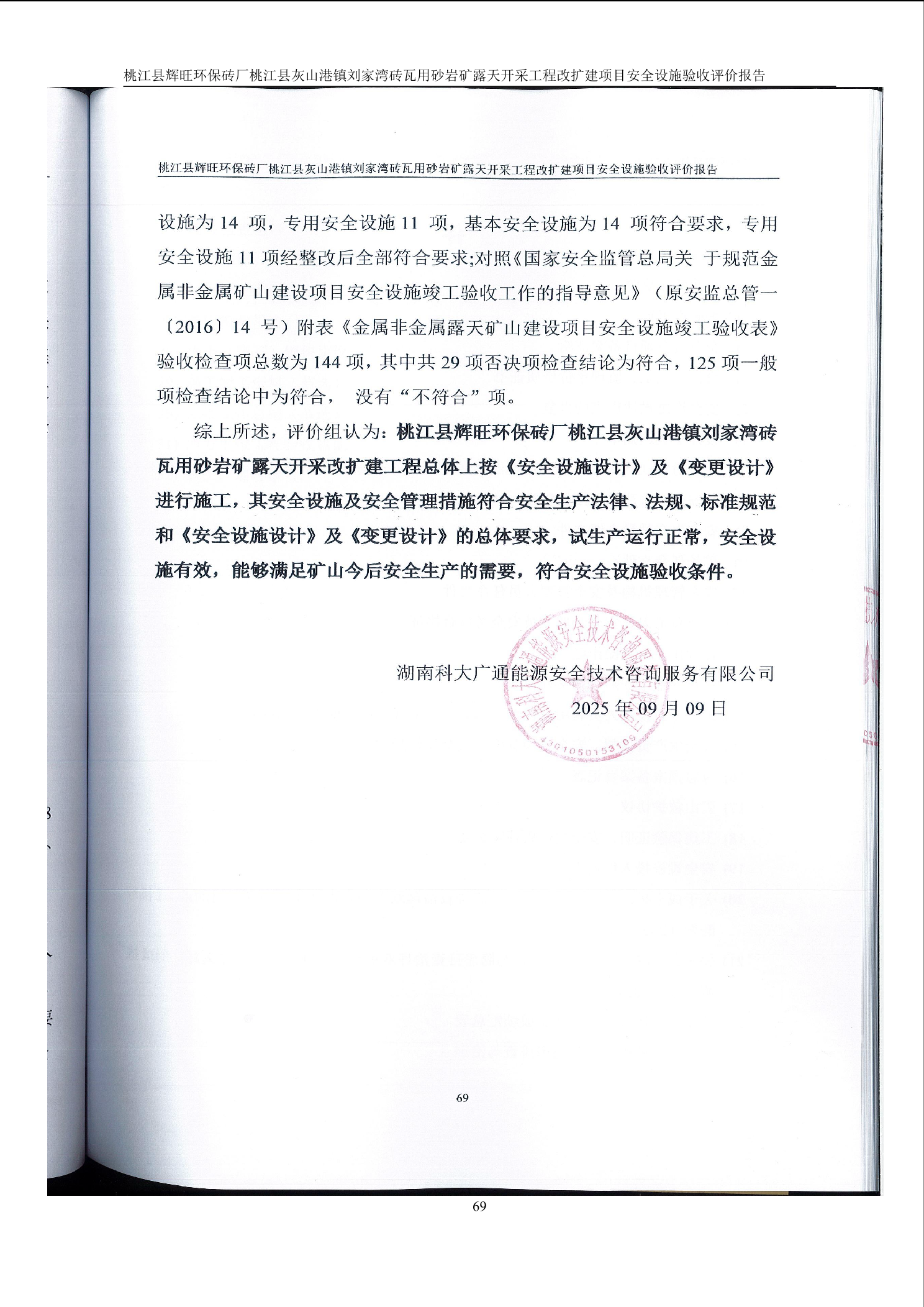 桃江县灰山港镇刘家湾砂岩矿露天开采工程改扩建项目安全设施验收评价报告
