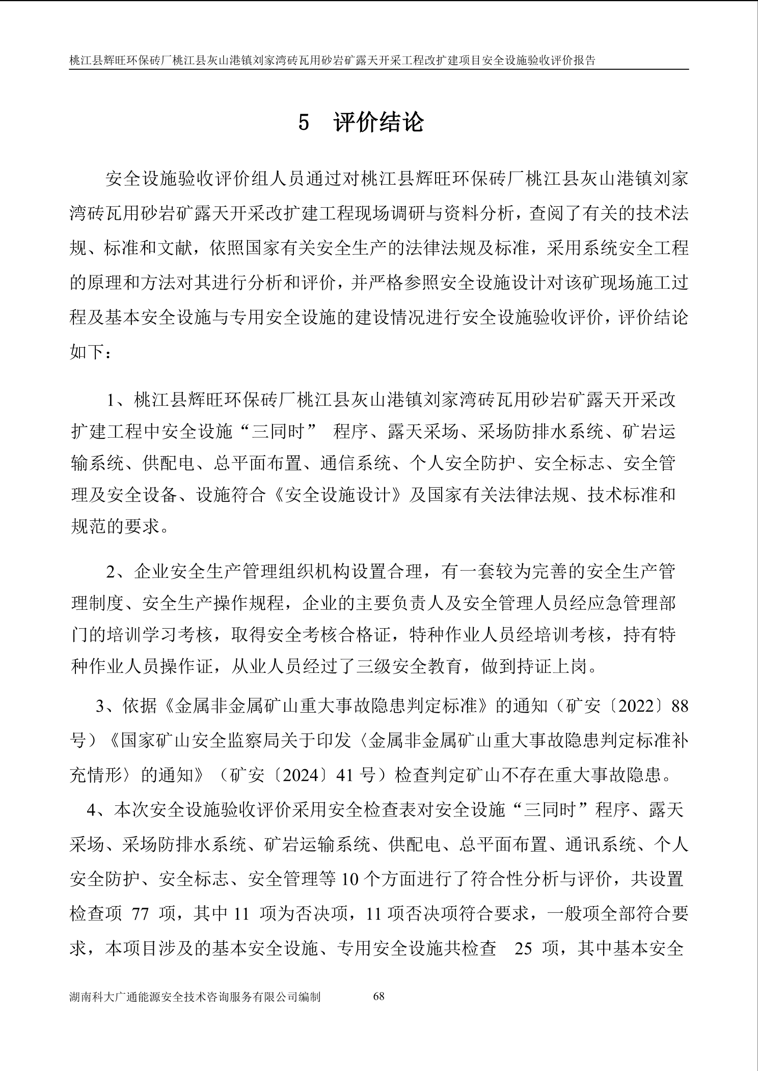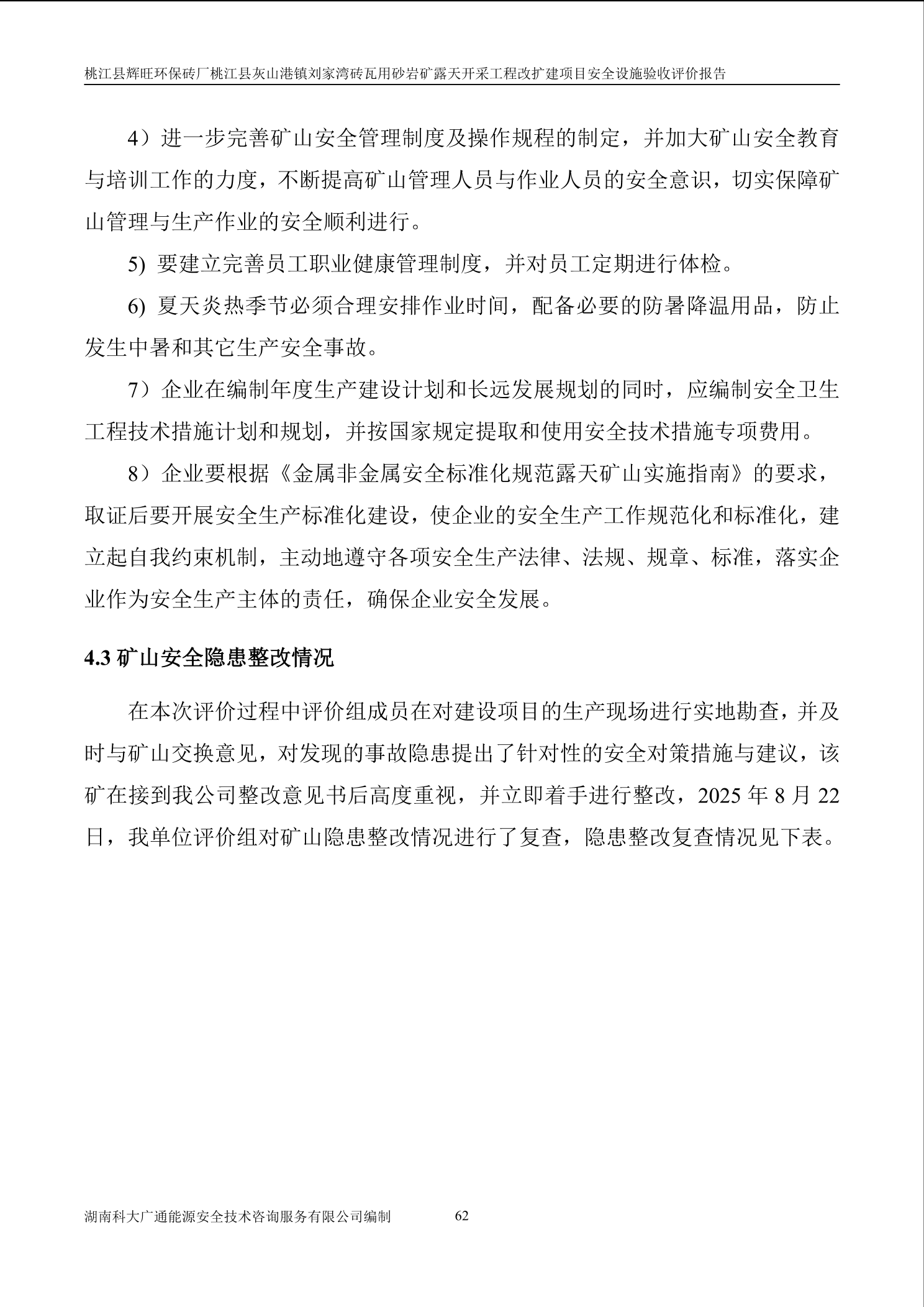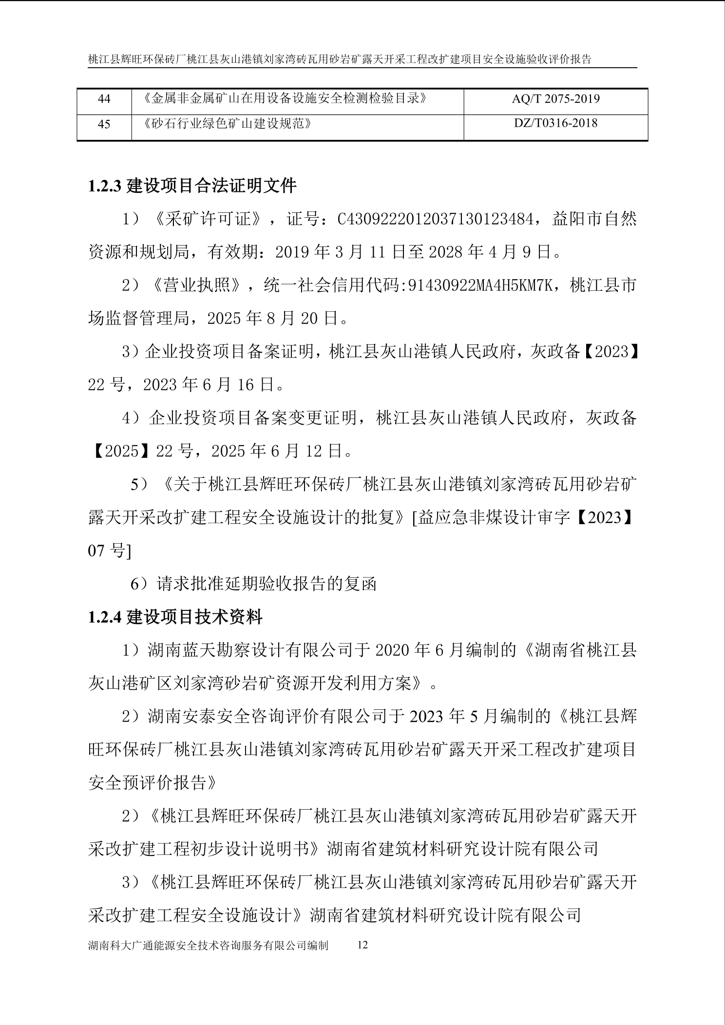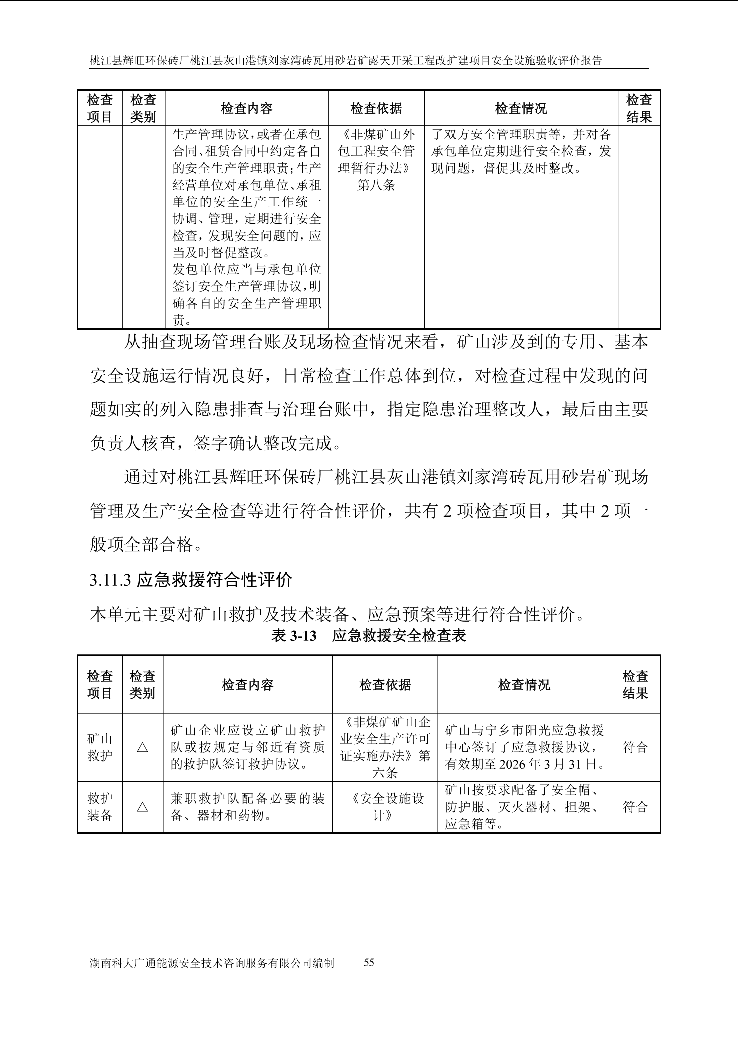 桃江县灰山港镇刘家湾砂岩矿露天开采工程改扩建项目安全设施验收评价报告