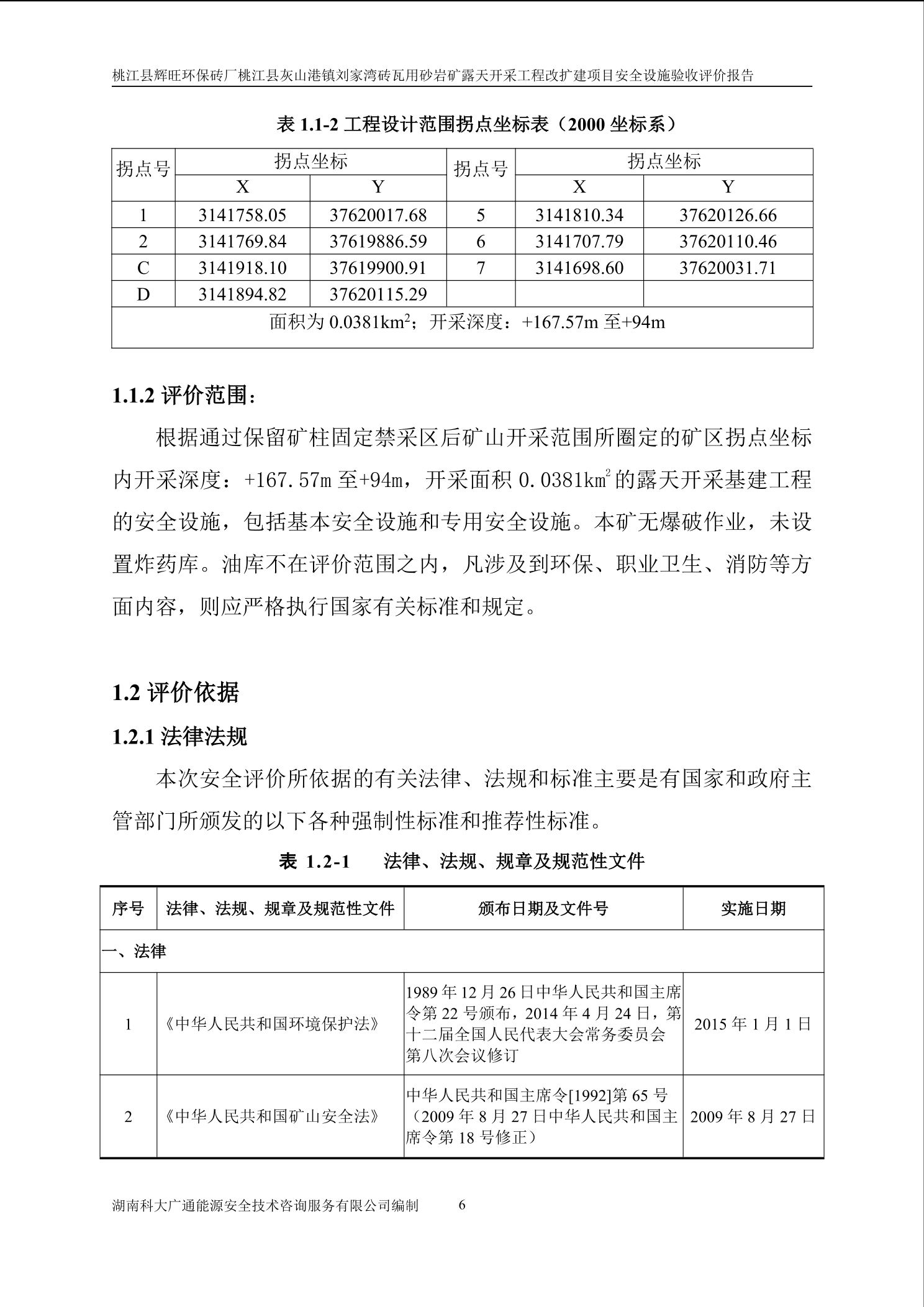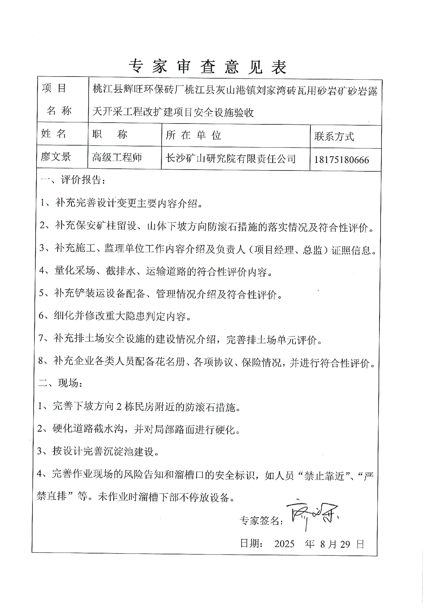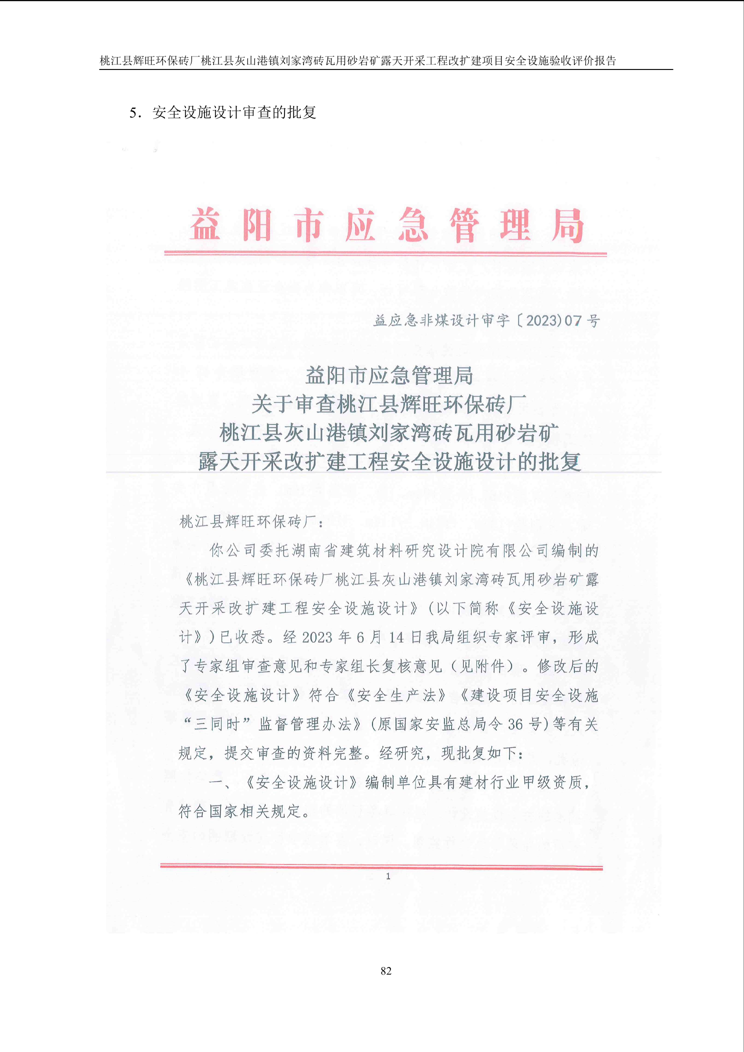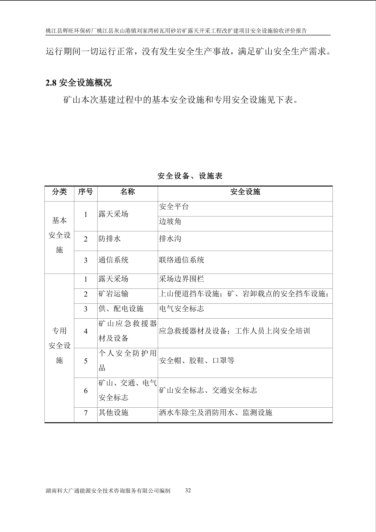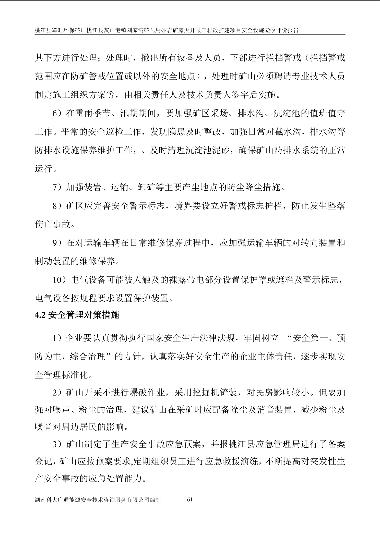 桃江县灰山港镇刘家湾砂岩矿露天开采工程改扩建项目安全设施验收评价报告
