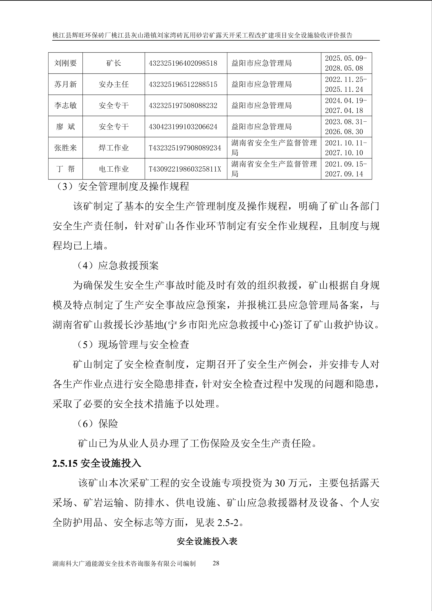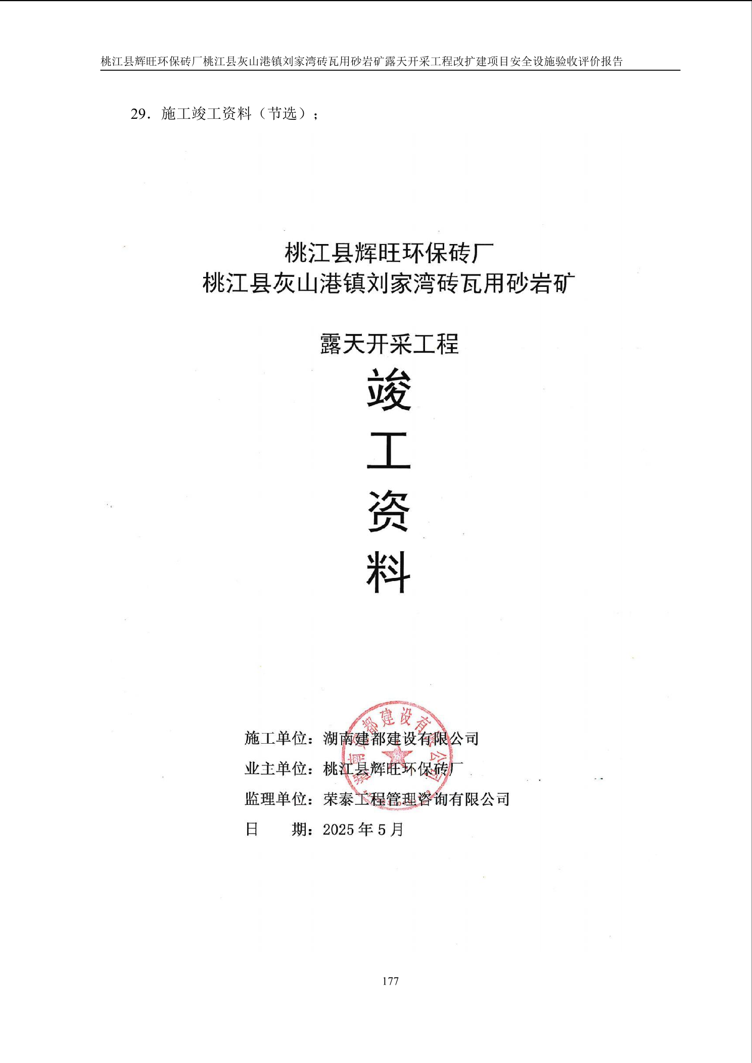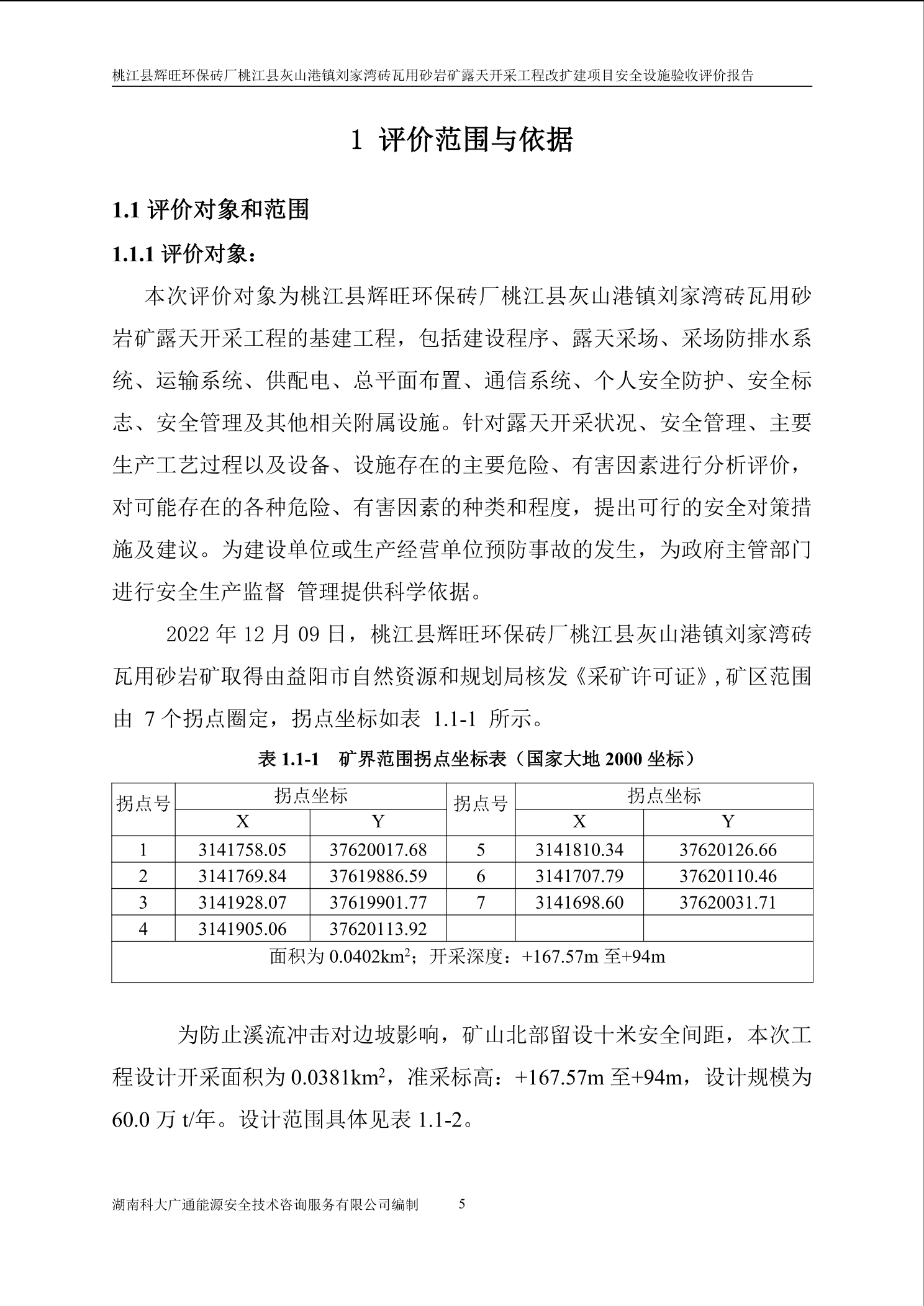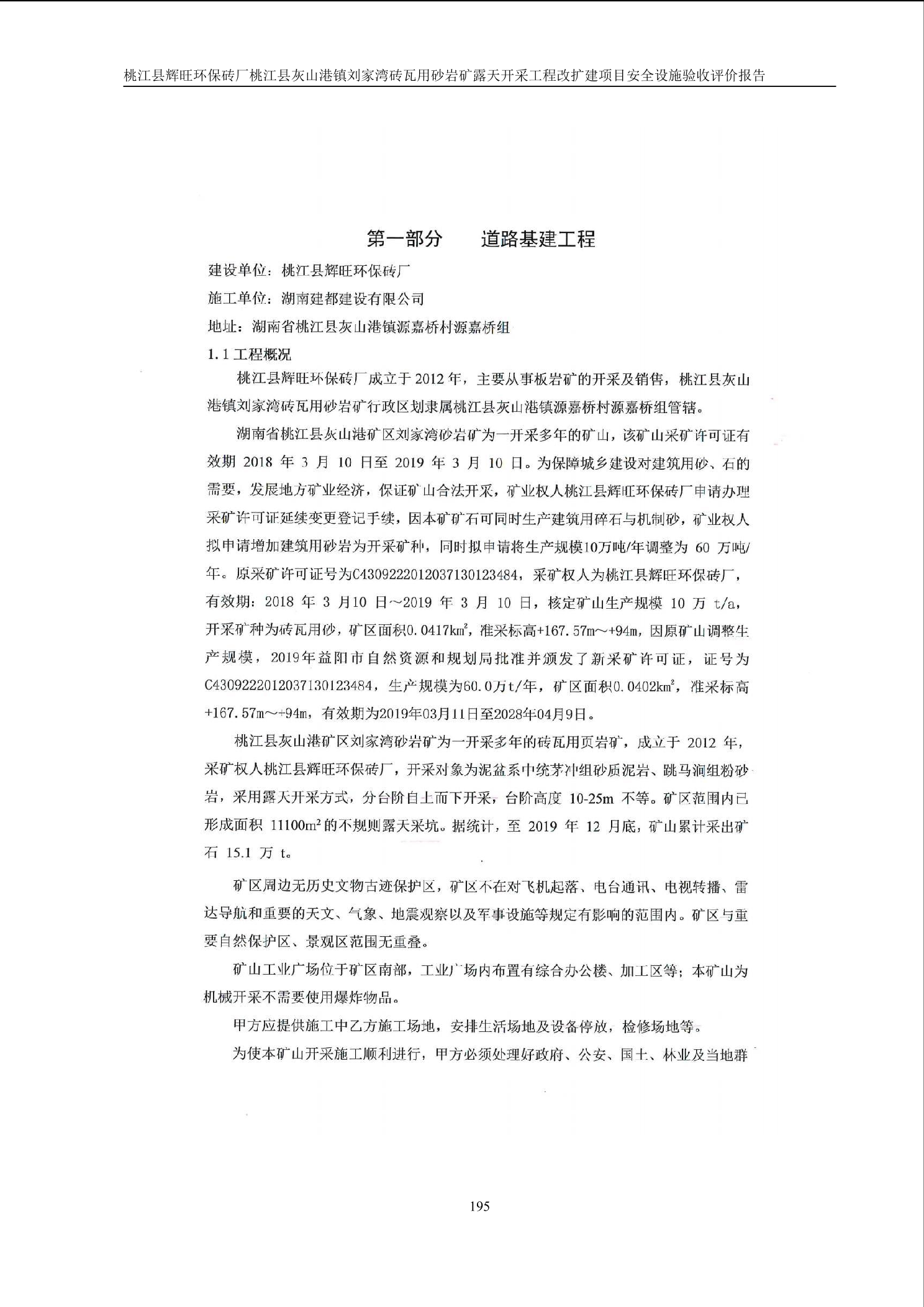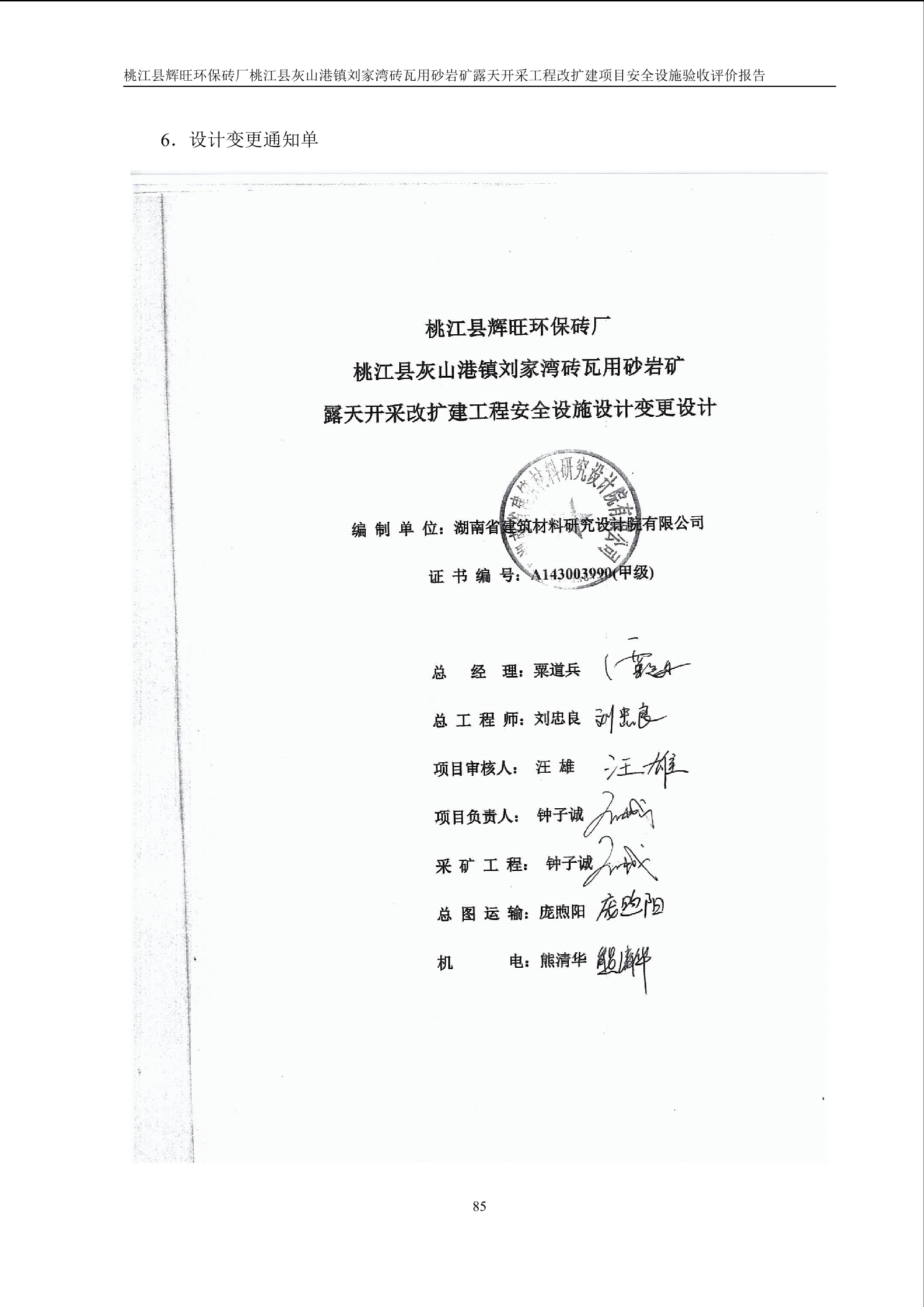 桃江县灰山港镇刘家湾砂岩矿露天开采工程改扩建项目安全设施验收评价报告