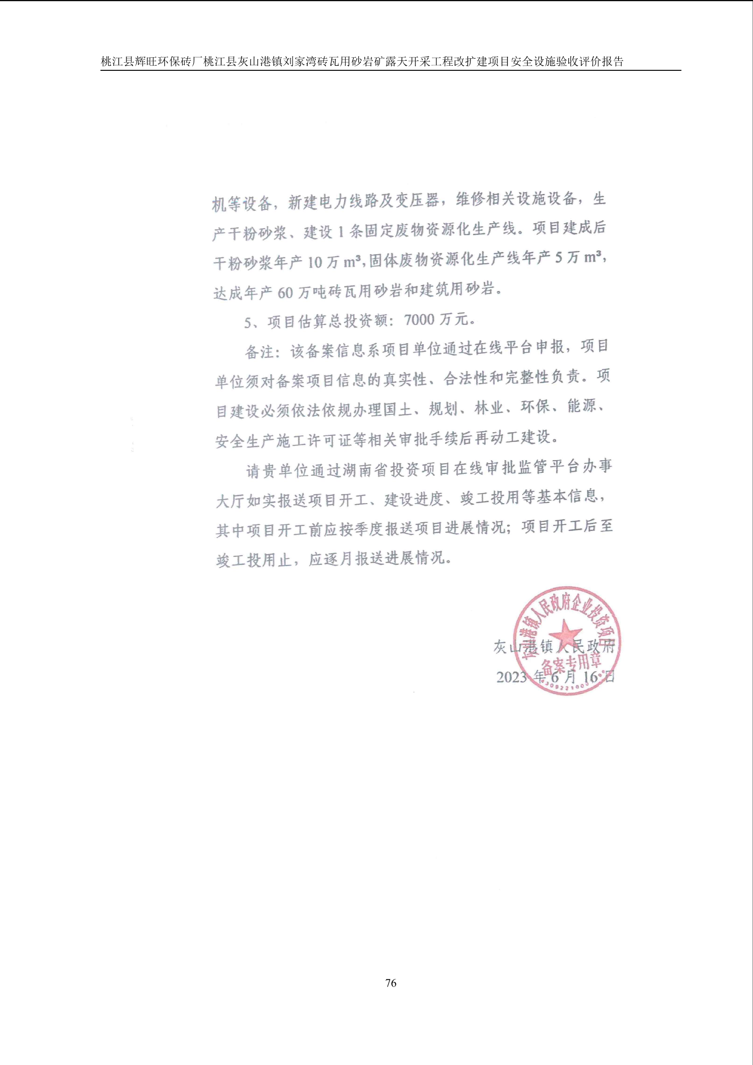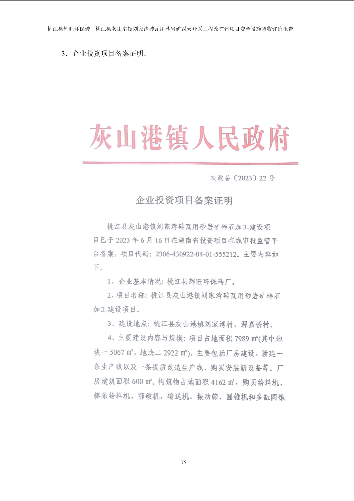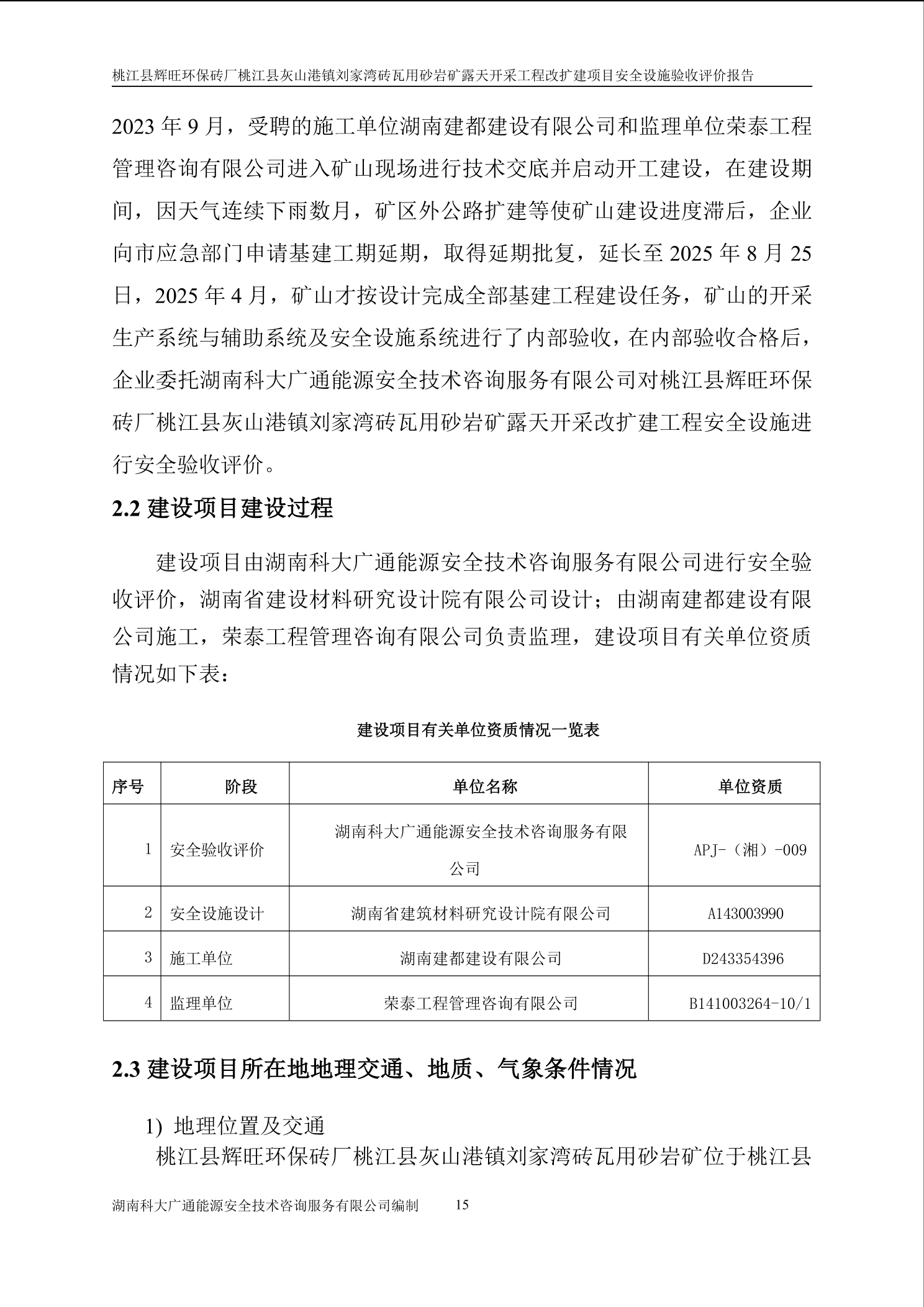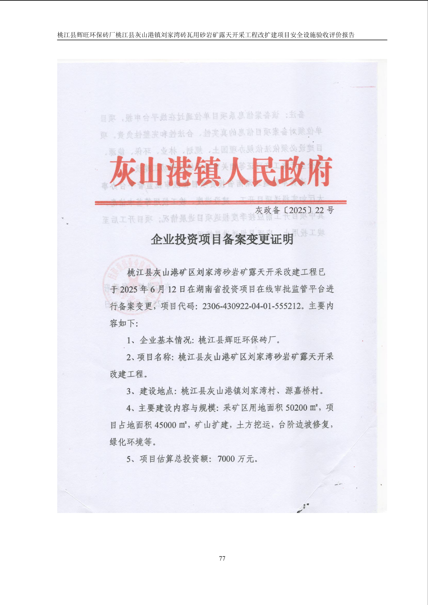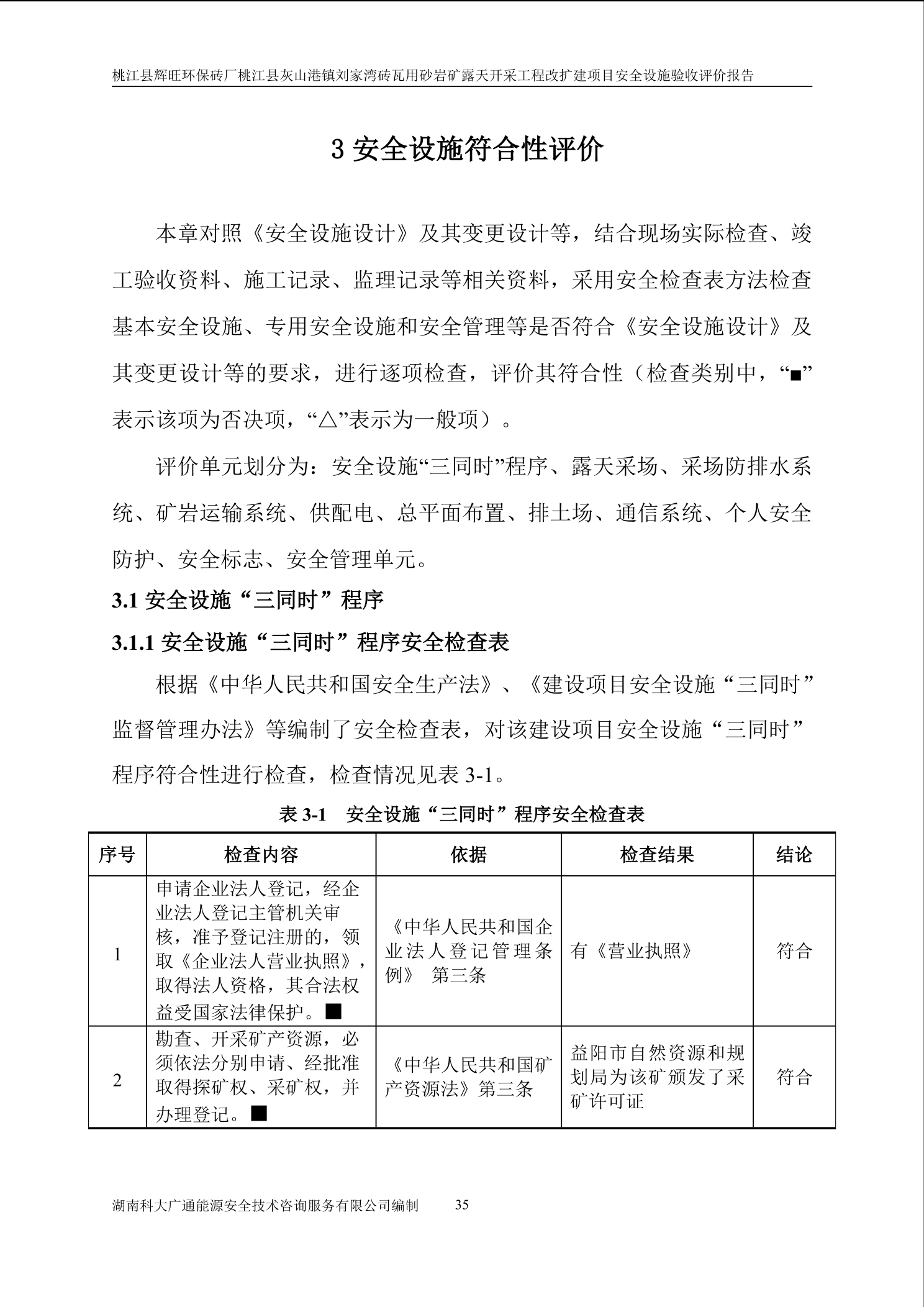 桃江县灰山港镇刘家湾砂岩矿露天开采工程改扩建项目安全设施验收评价报告