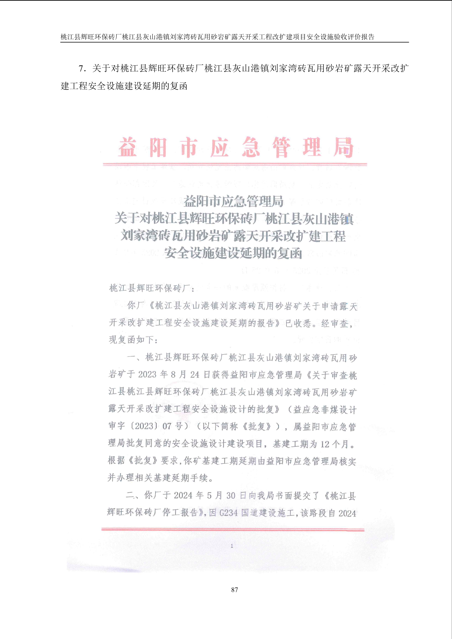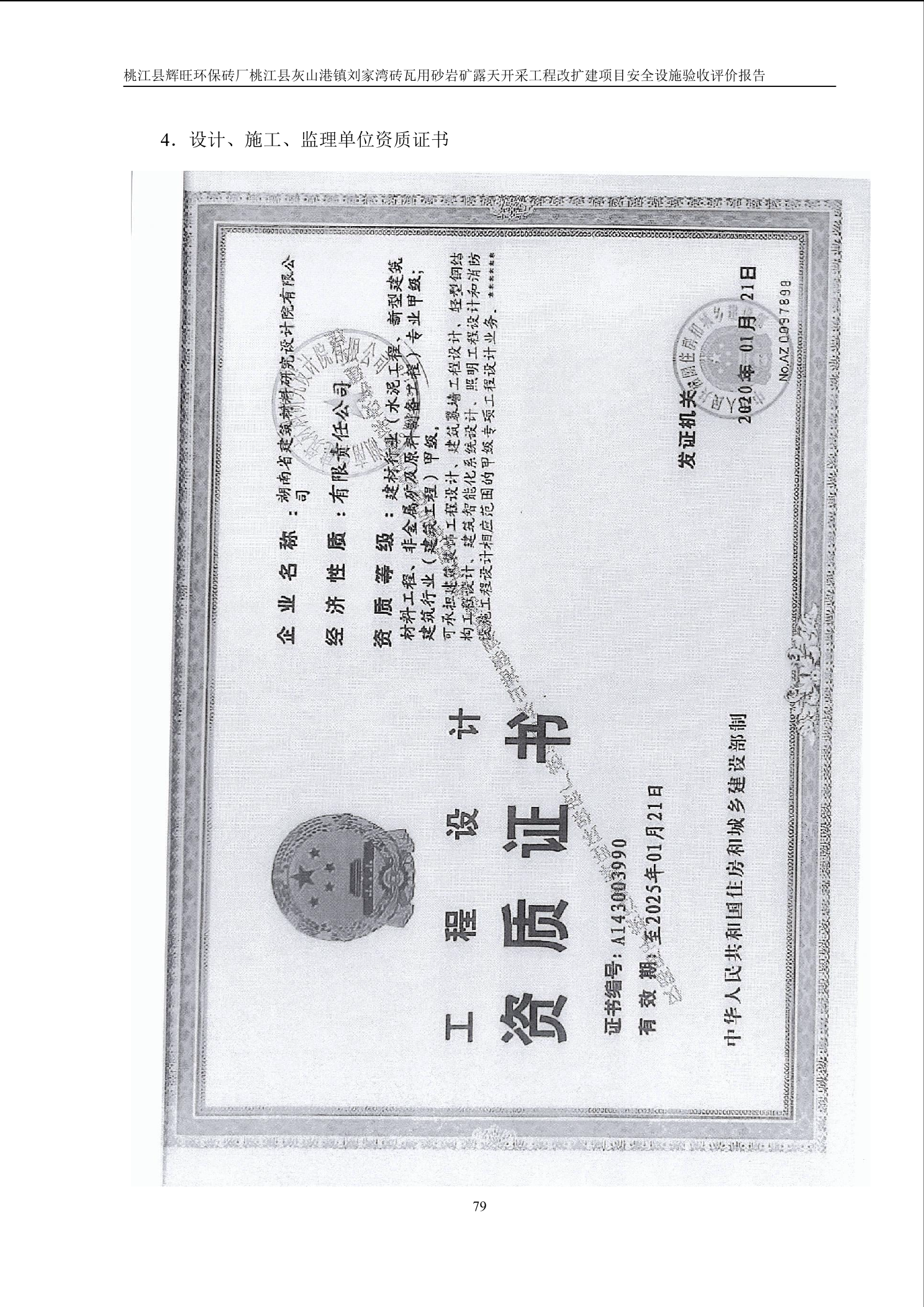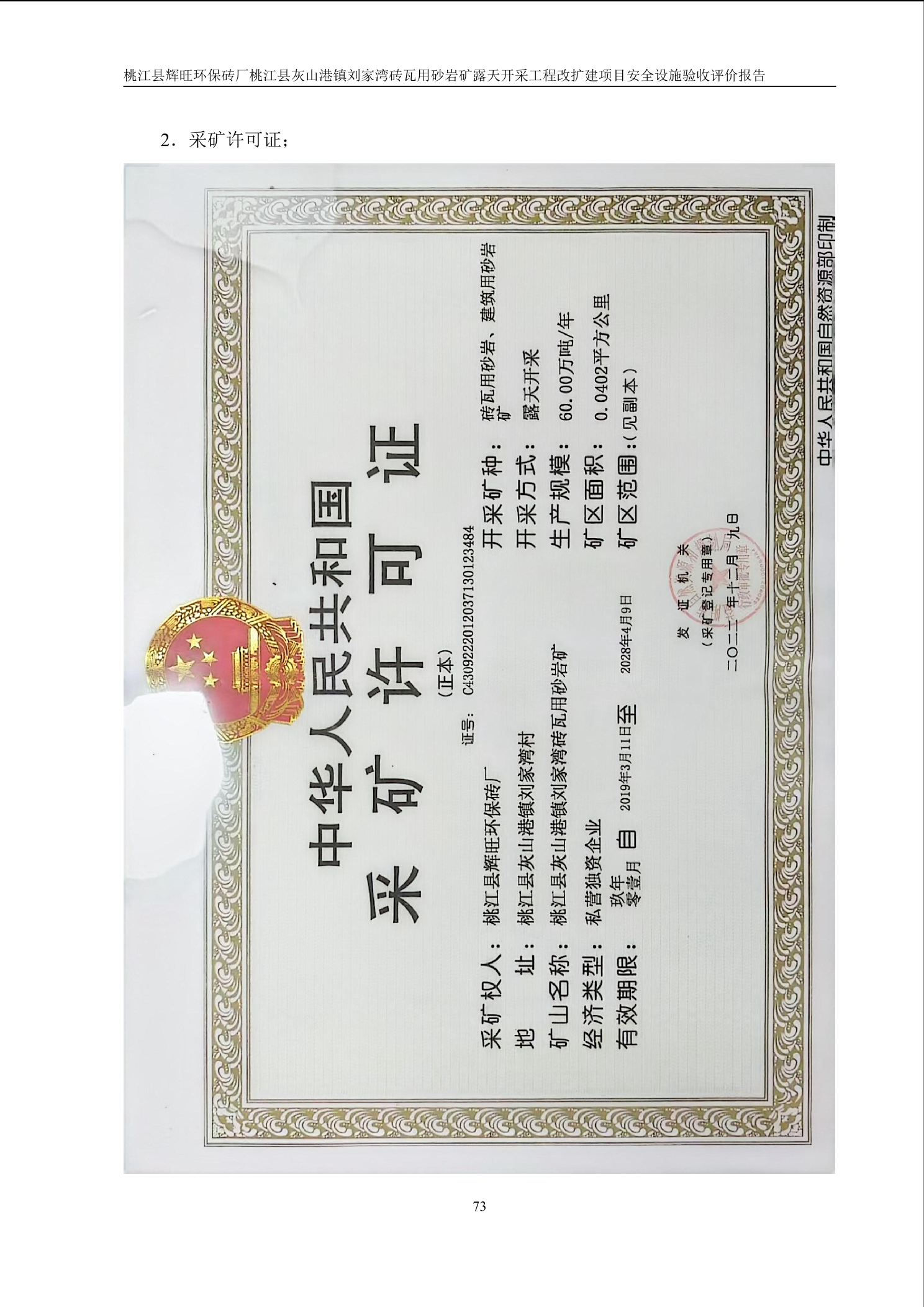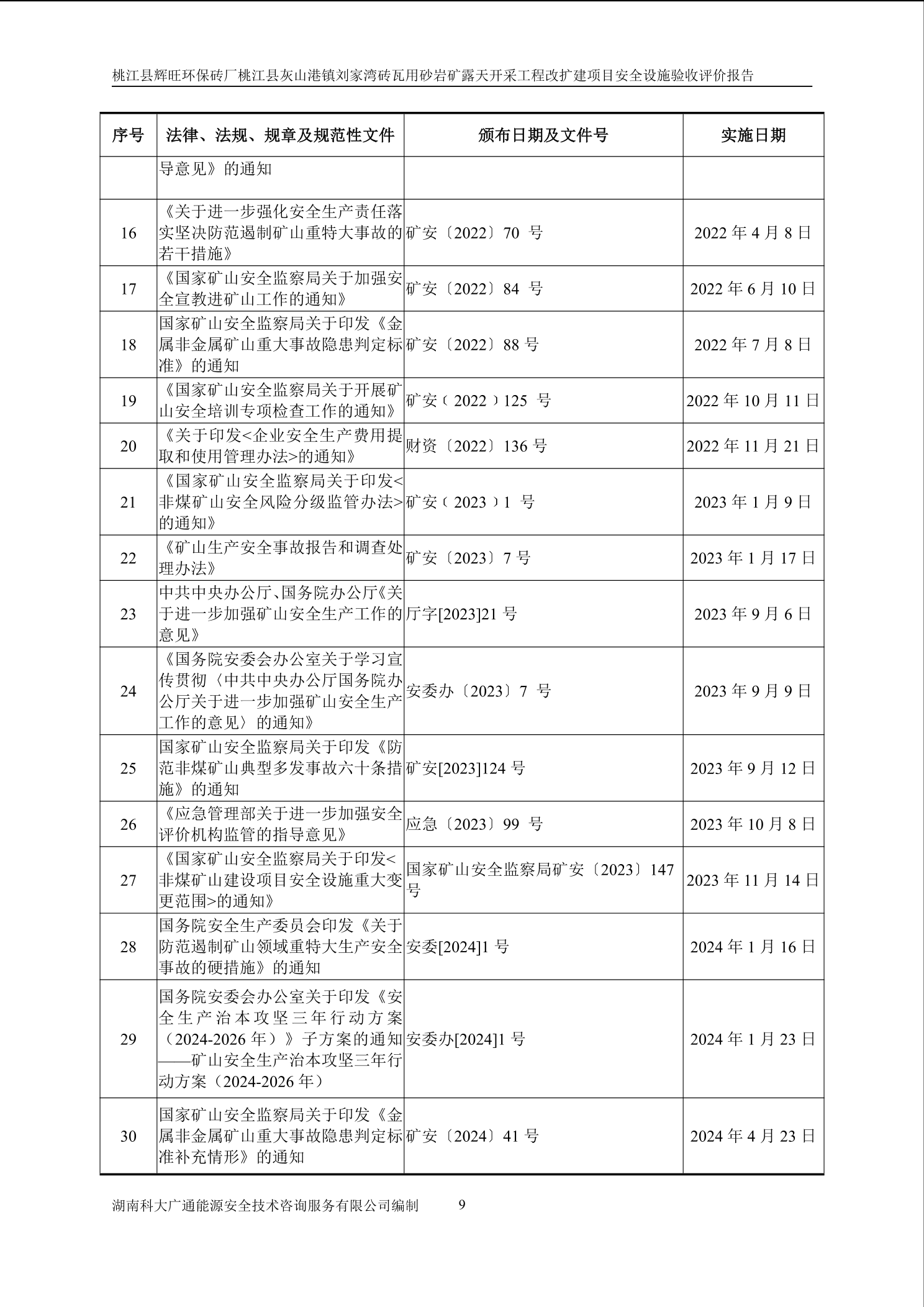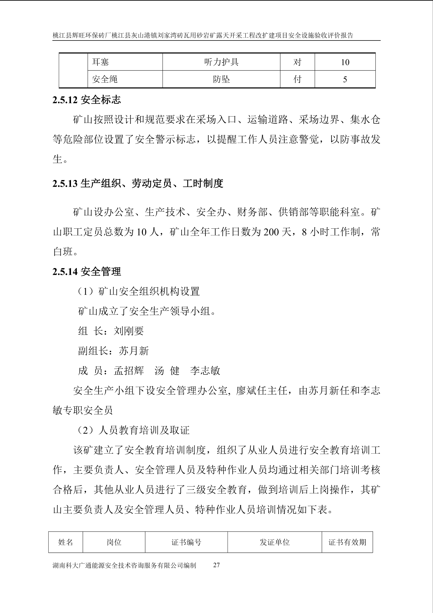 桃江县灰山港镇刘家湾砂岩矿露天开采工程改扩建项目安全设施验收评价报告