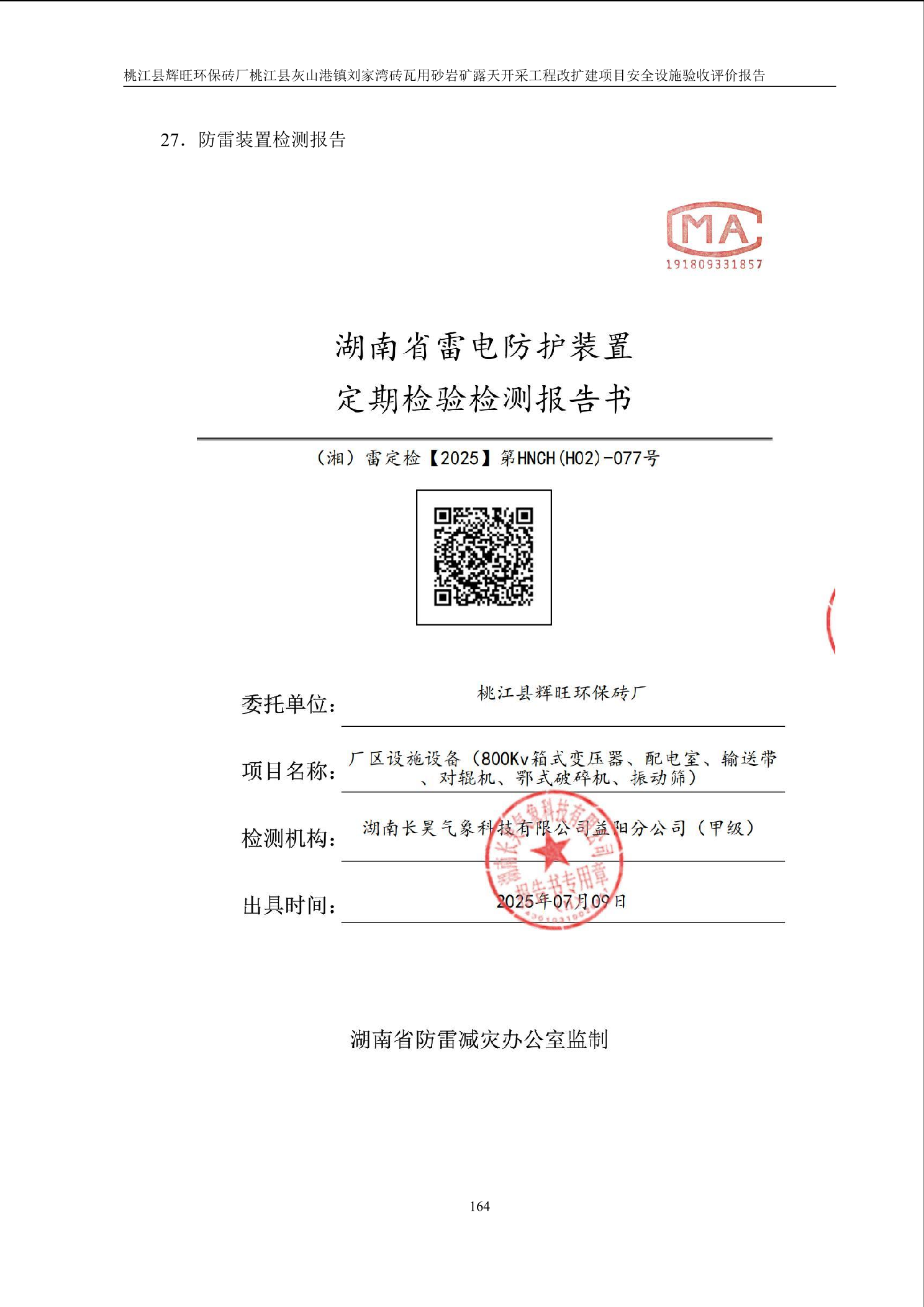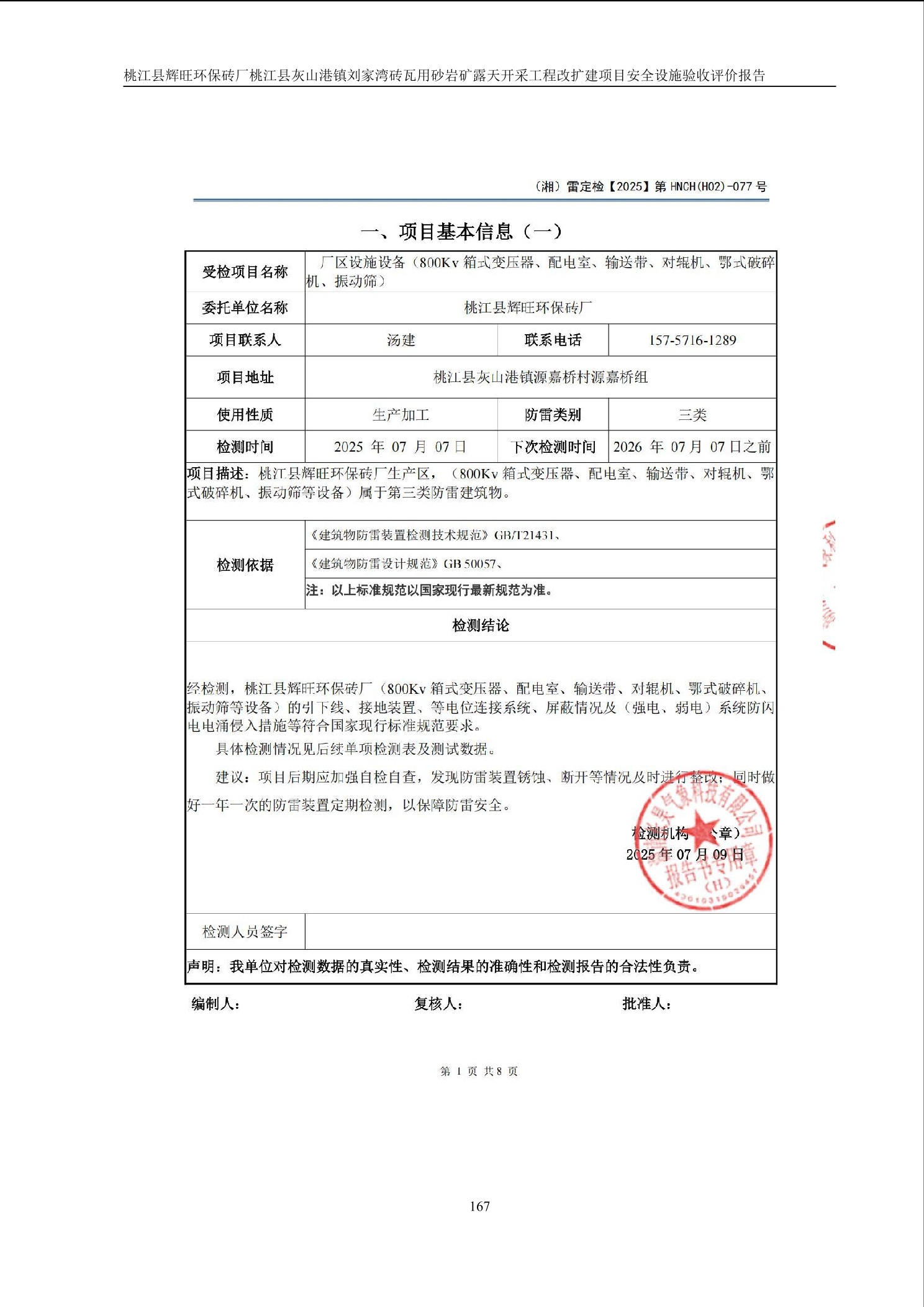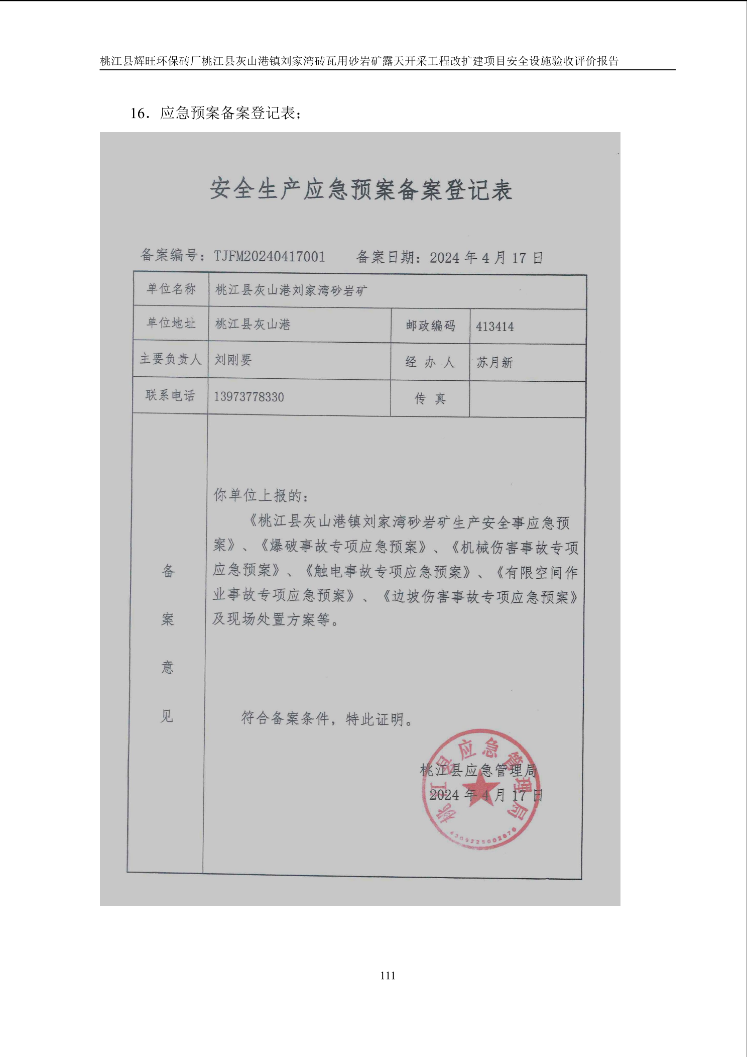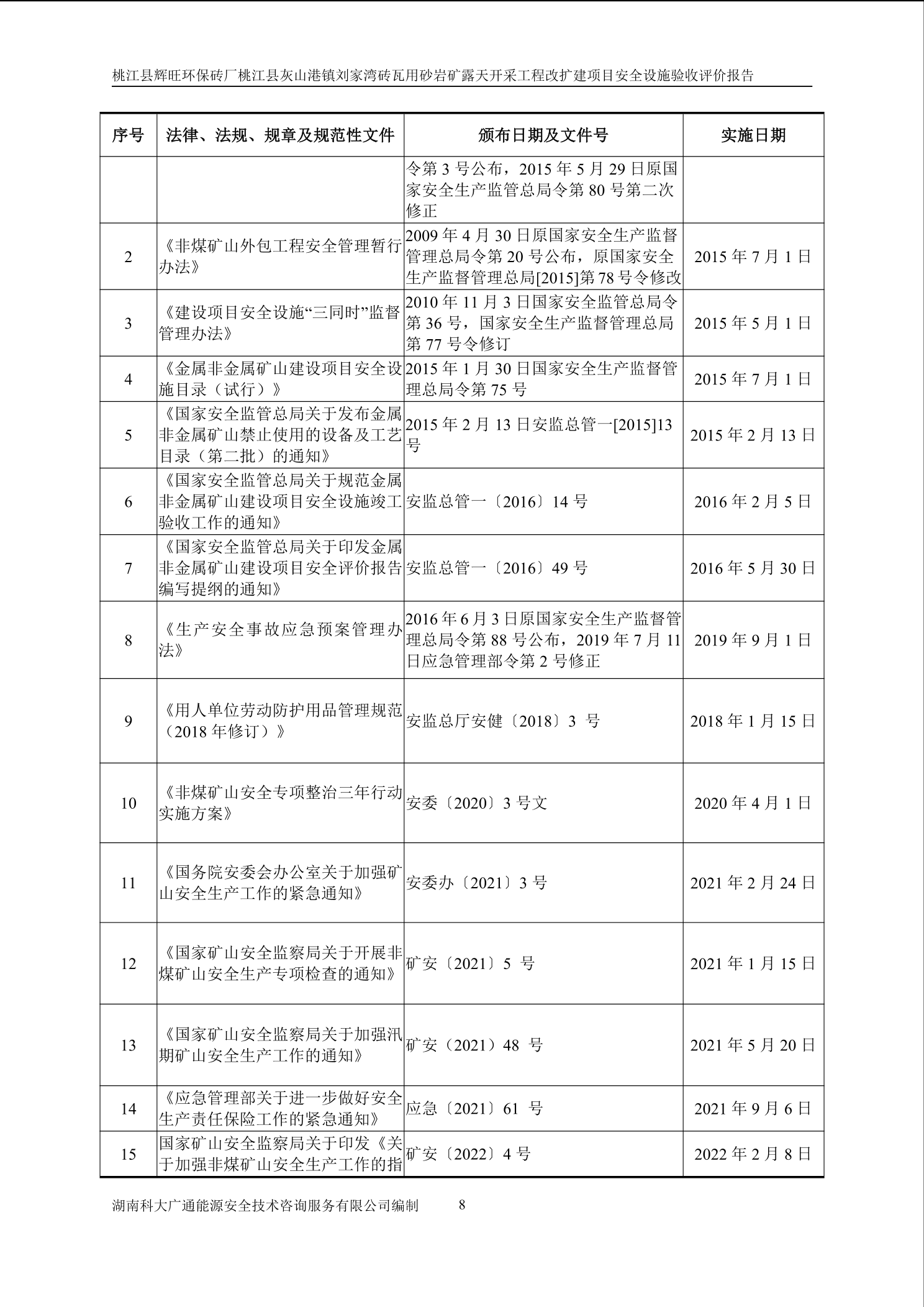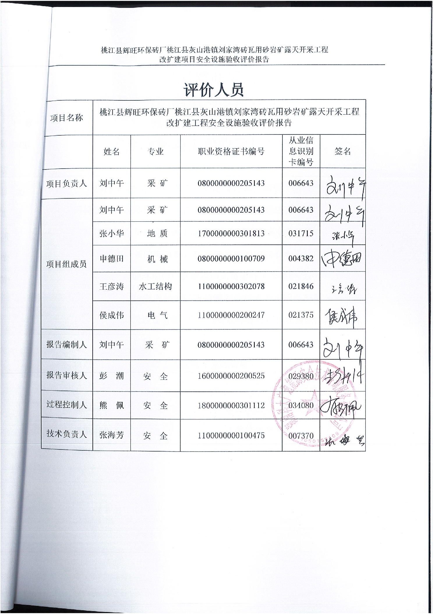 桃江县灰山港镇刘家湾砂岩矿露天开采工程改扩建项目安全设施验收评价报告