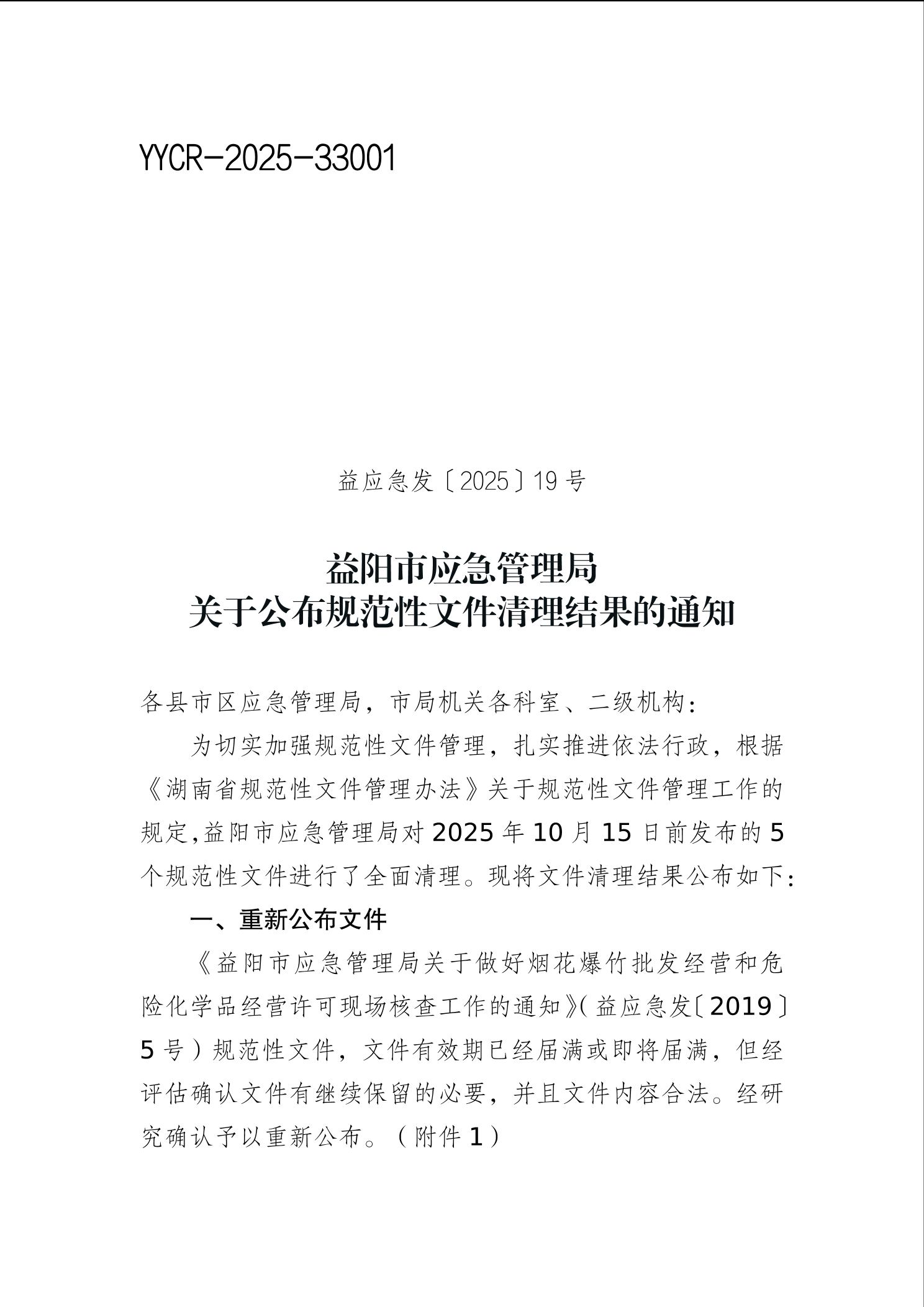 益阳市应急管理局关于公布规范性文件清理结果的通知