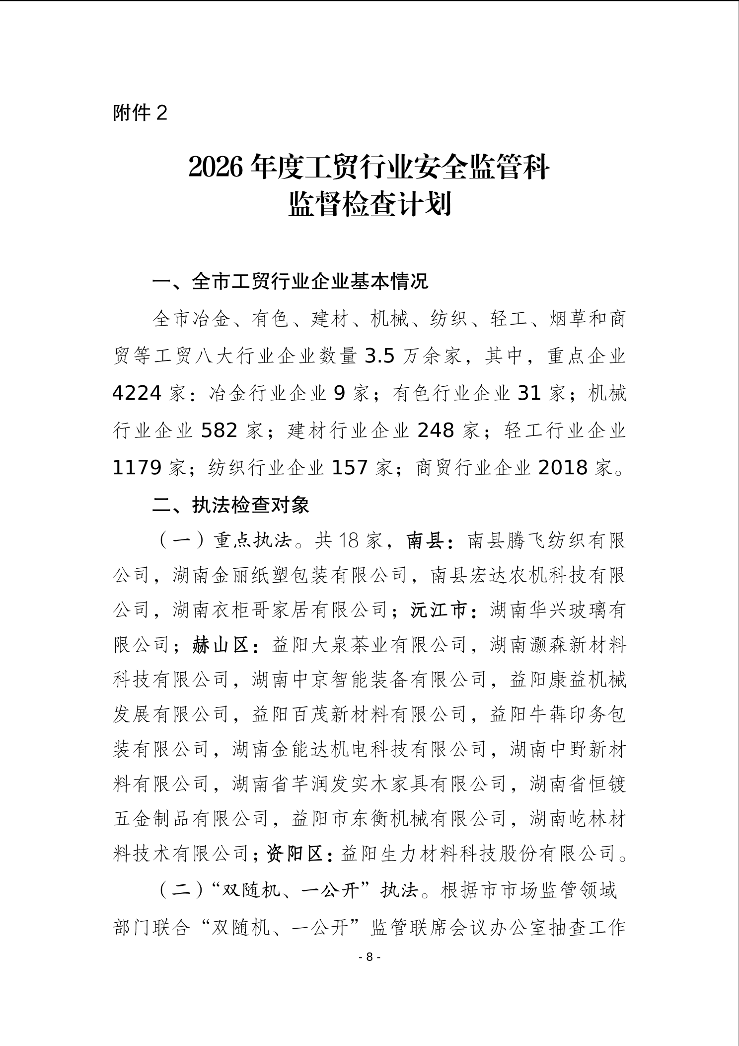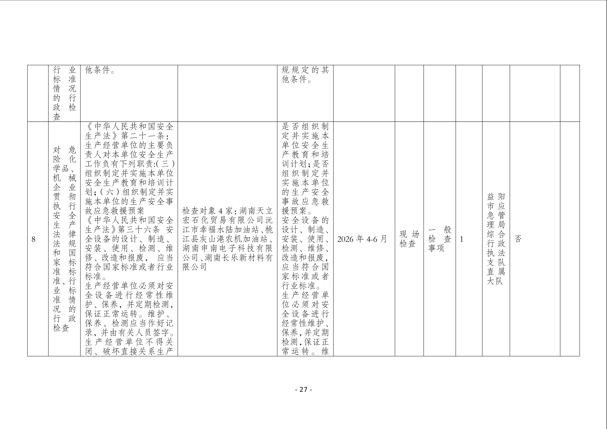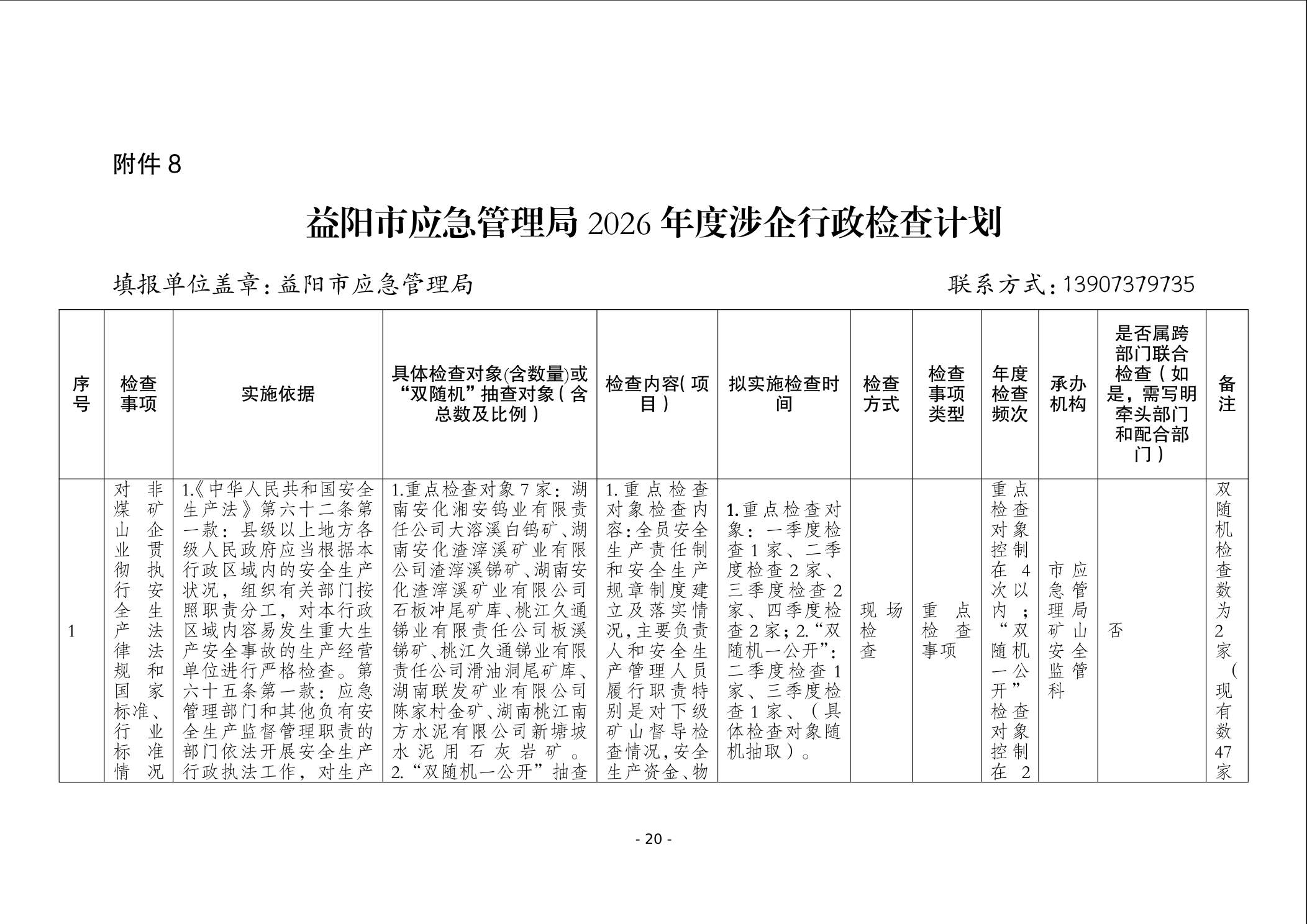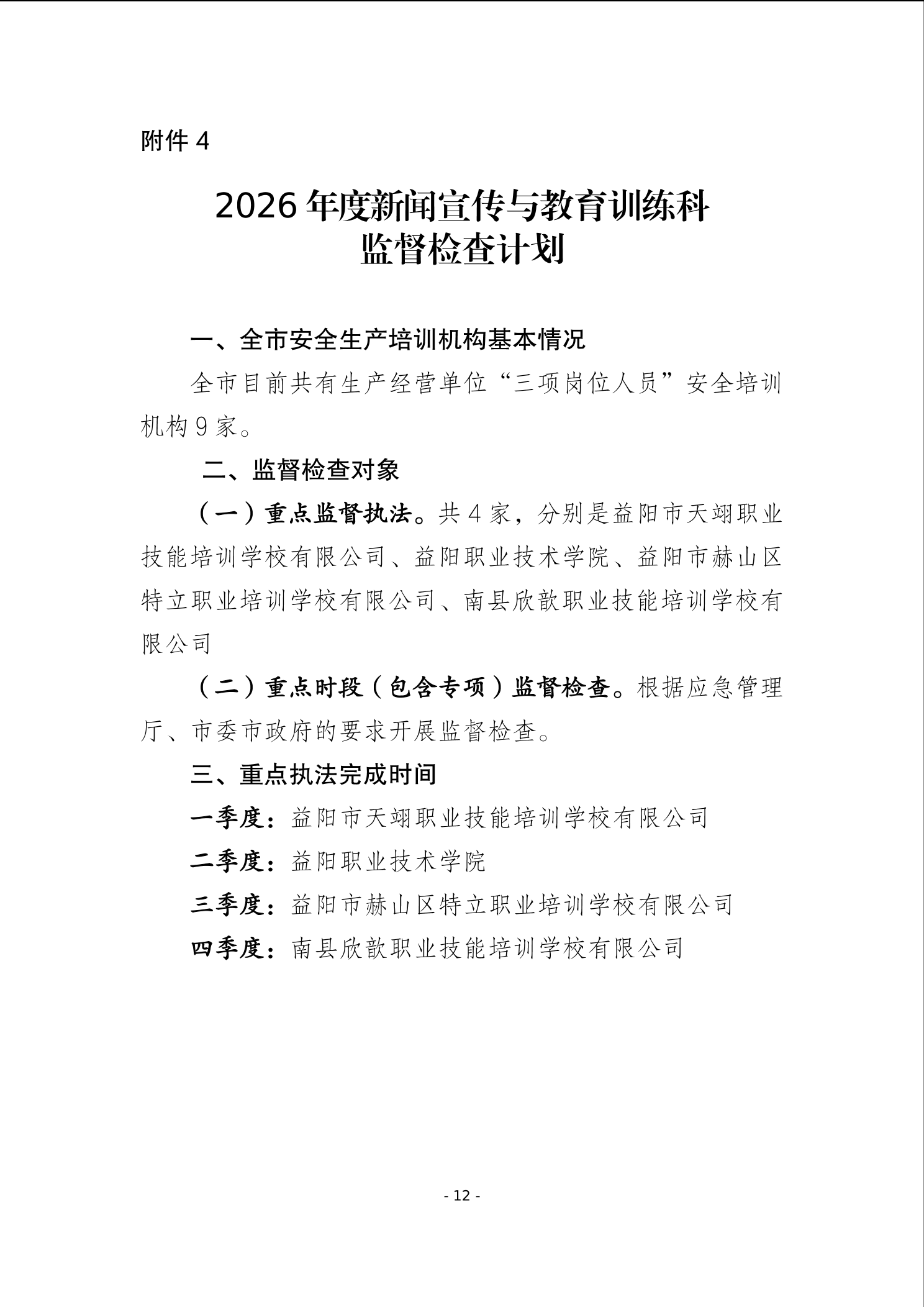 益阳市应急管理局2026年度安全生产监督检查计划