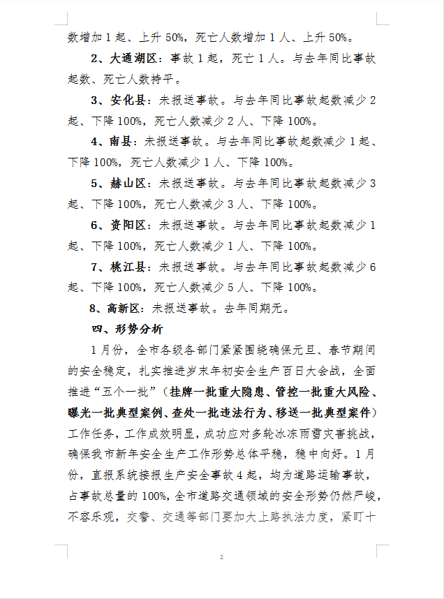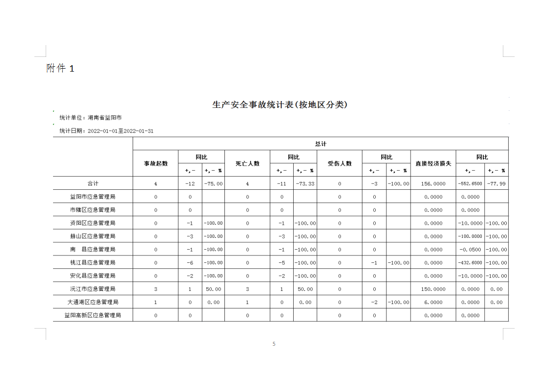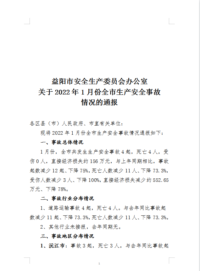 益阳市安全生产委员会办公室关于2022年1月份全市生产安全事故情况的通报