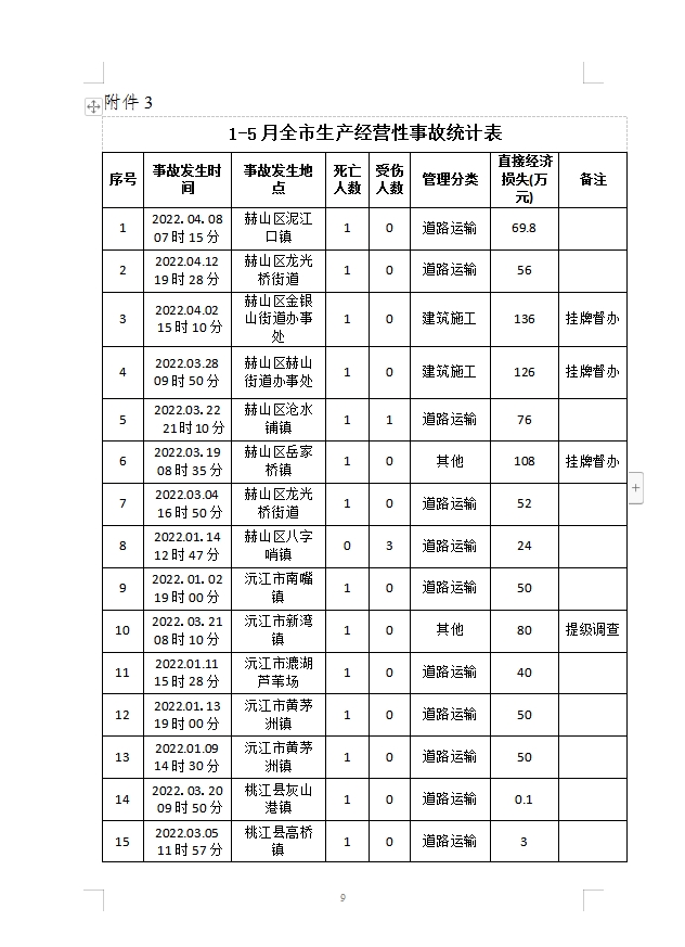现将2022年1-5月份全市生产安全事故情况通报如下: