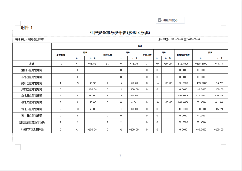 附件:1.2023年1-3月全市生产安全事故统计表(按地区分类)