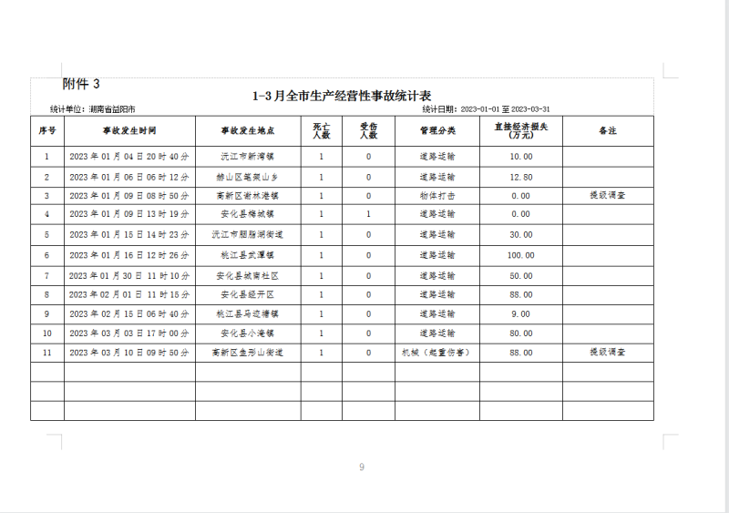 现将2023年1-3月份全市生产安全事故情况通报如下: