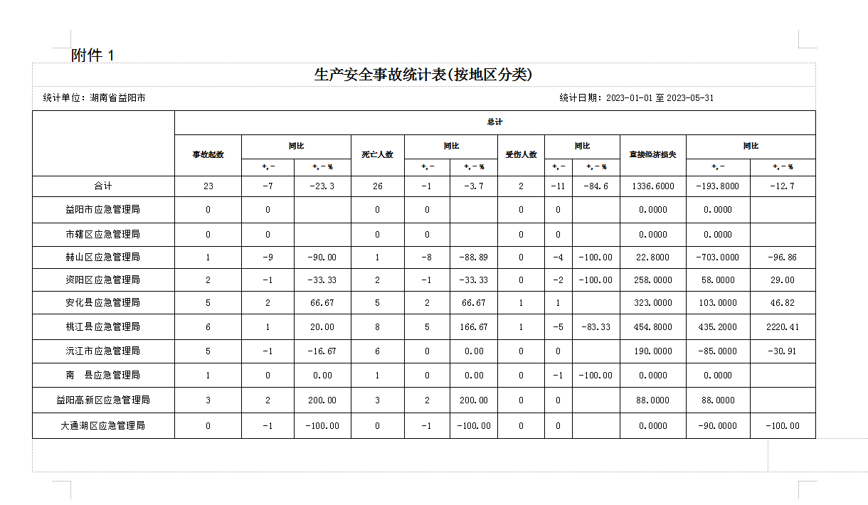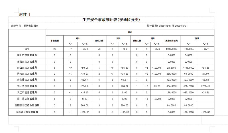 附件:1.2023年1-5月全市生产安全事故统计表(按地区分类)