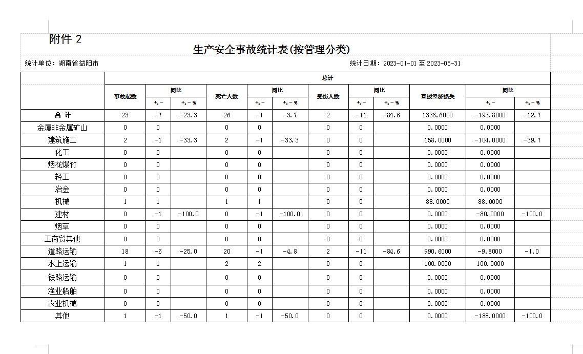 2.2023年1-5月全市生产安全事故统计表(按管理分类)