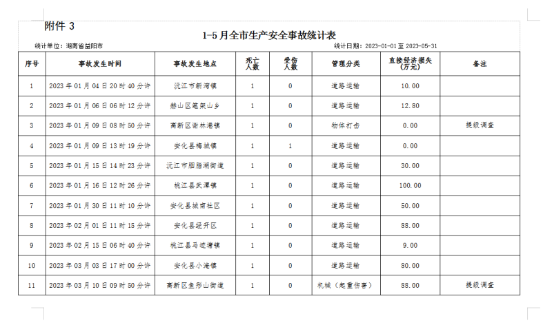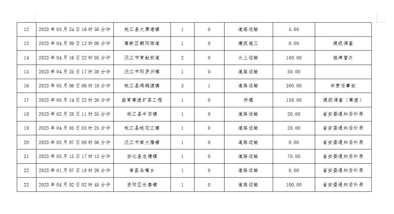 现将2023年1-5月份全市生产安全事故情况通报如下: