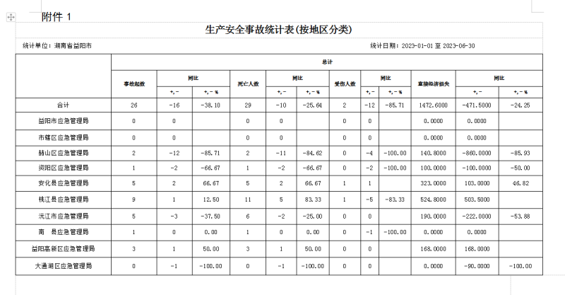 附件:1.2023年1-6月全市生产安全事故统计表(按地区分类)