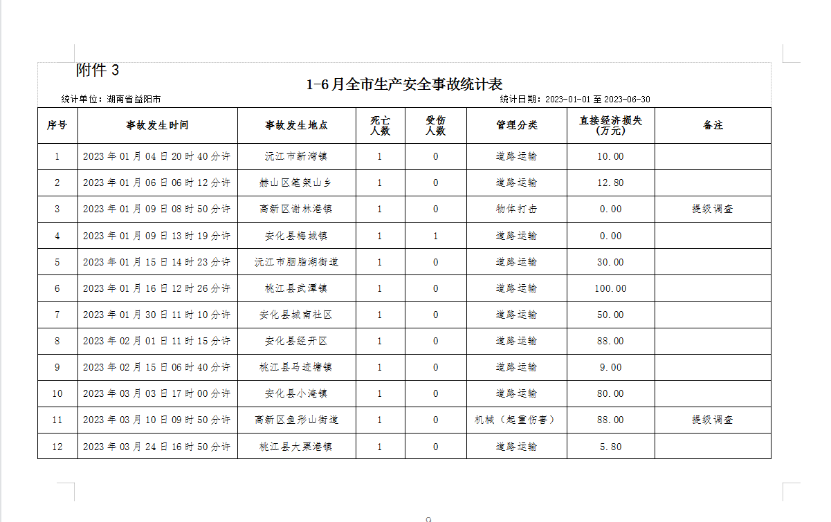 2.2023年1-6月全市生产安全事故统计表(按管理分类)