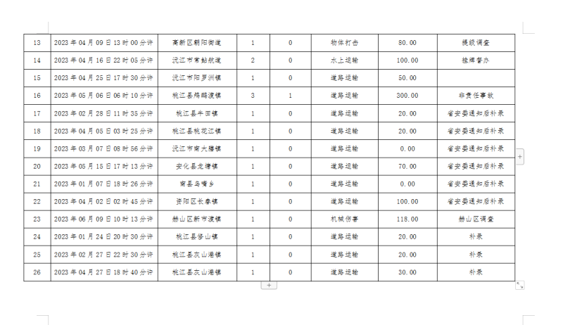3.水上运输:1起,死亡2人。与上年同比事故起数增加1起、上升100%,死亡人数增加2人、上升100%。