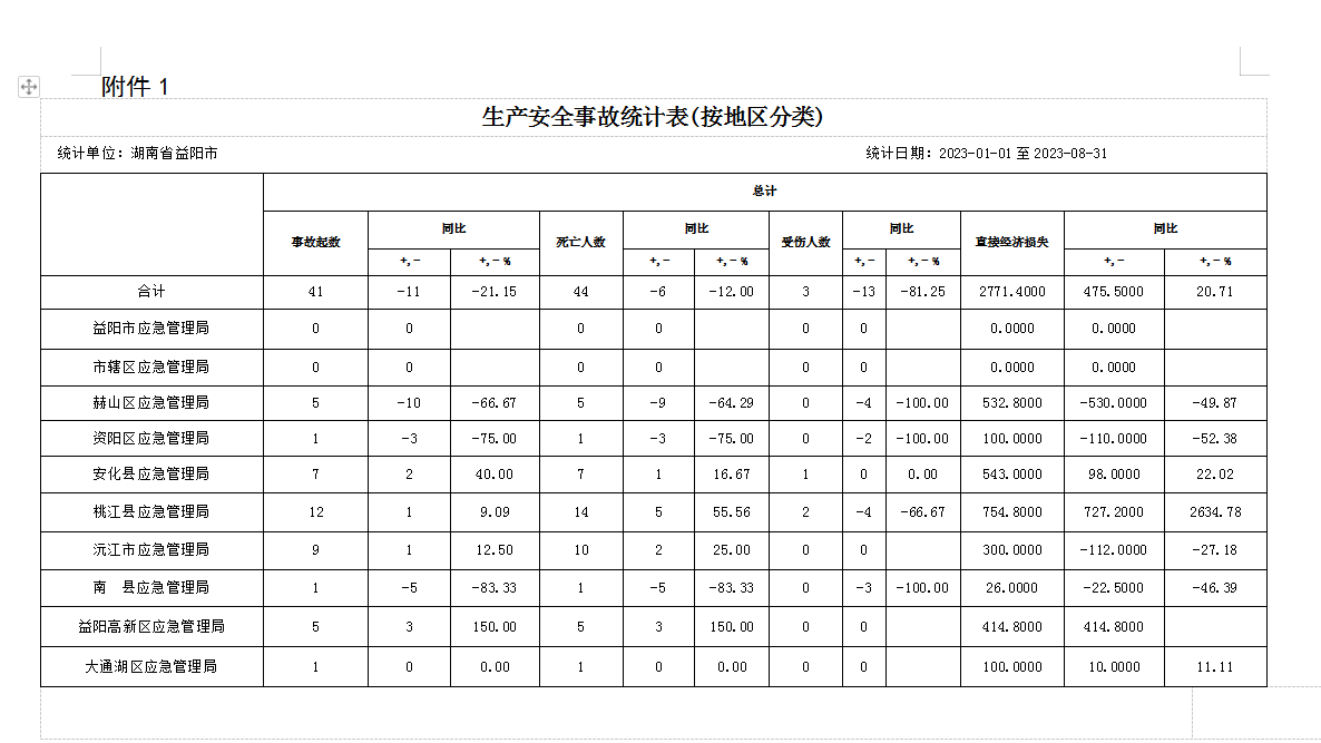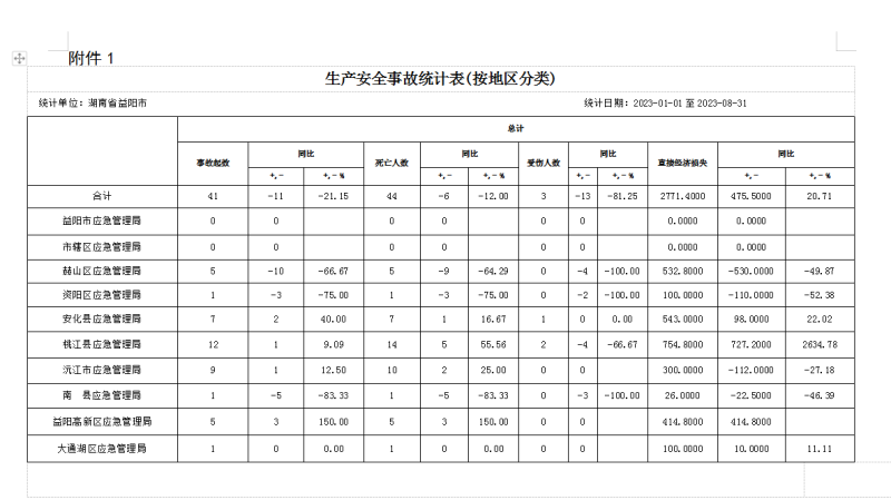 附件:1.2023年1-8月全市生产安全事故统计表(按地区分类)