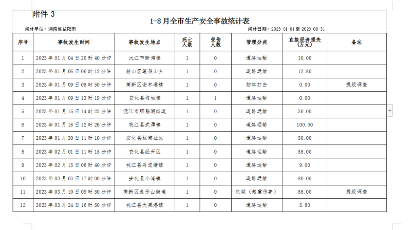 3.2023年1-8月全市生产安全事故统计表