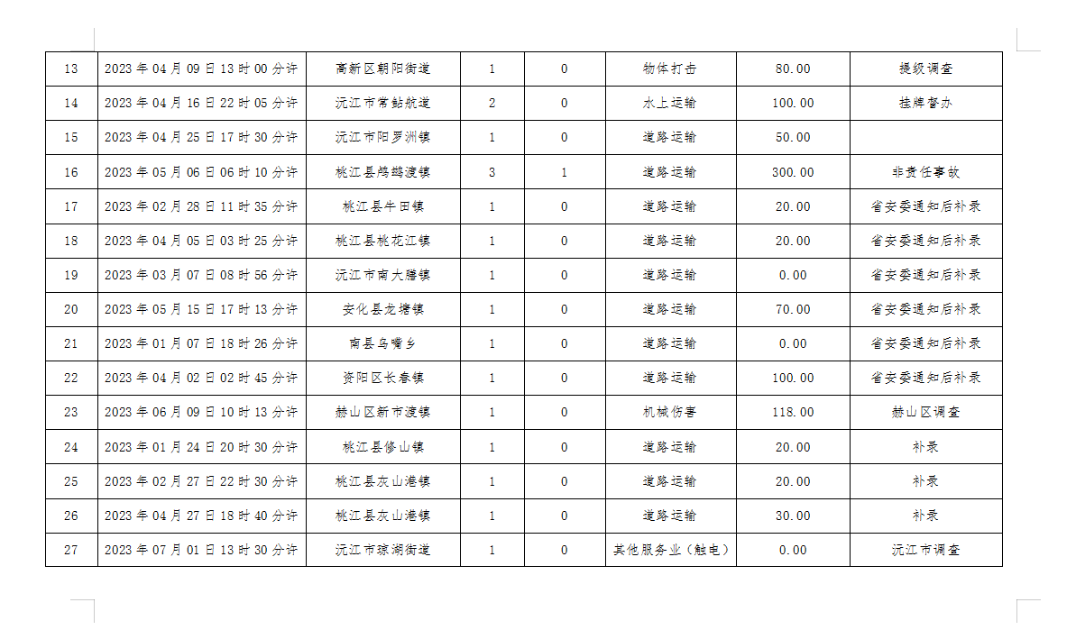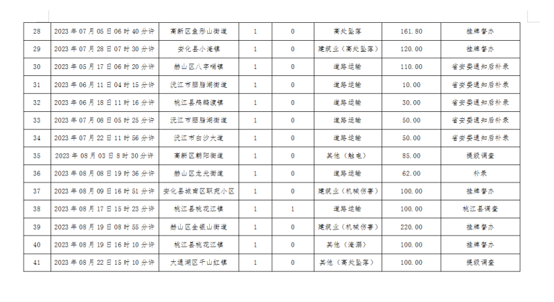 2.挂牌督办事故8起:其中沅江市3起(2起已审核),资阳区1起(已审核),赫山区1起,安化县2起,益阳高新区1起。