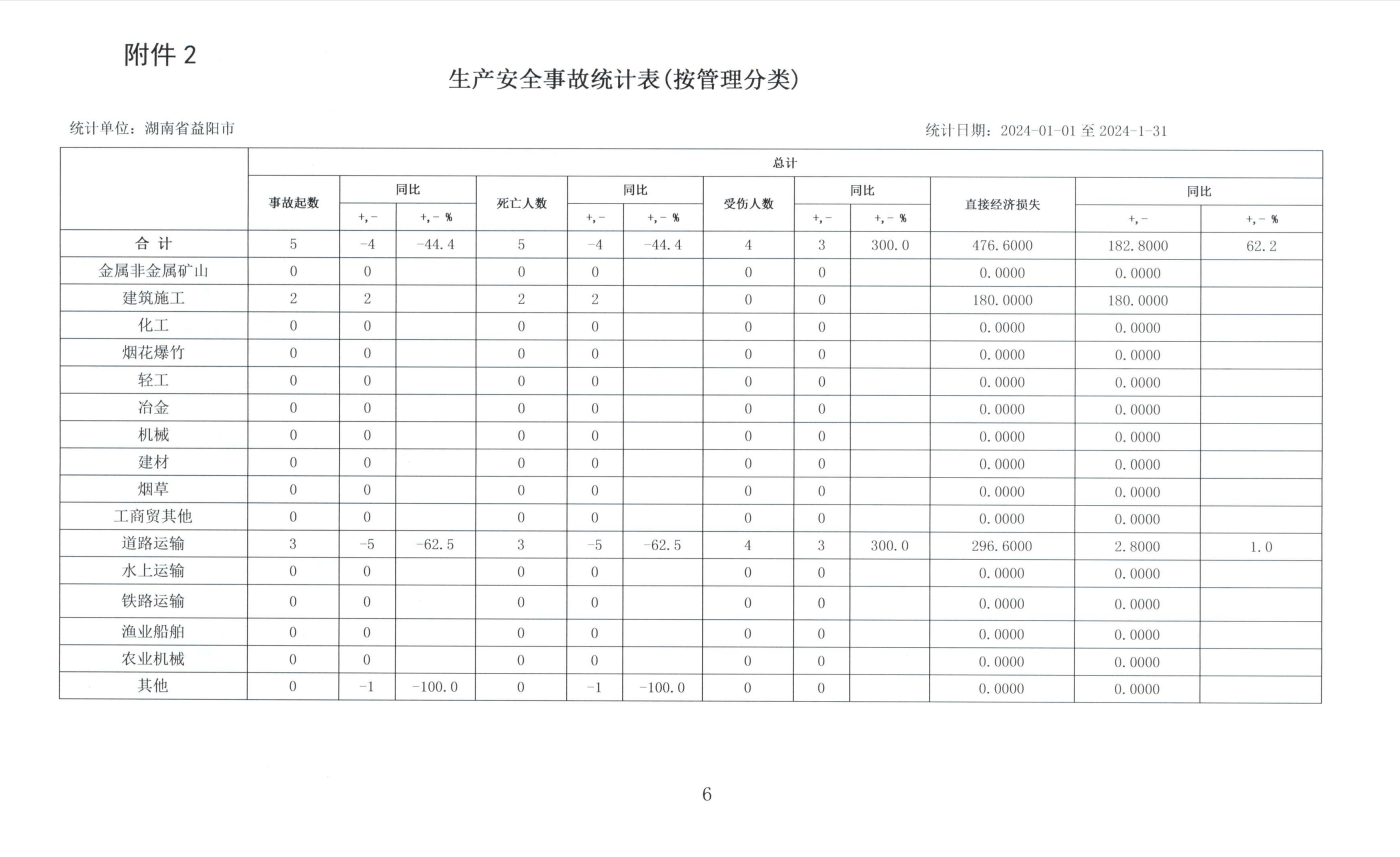 2.2024年1月全市生产安全事故统计表(按管理分类)