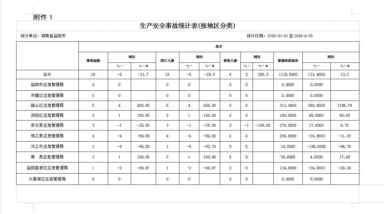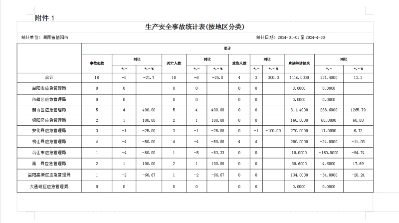 附件:1.2024年1-4月全市生产安全事故统计表(按地区分类)