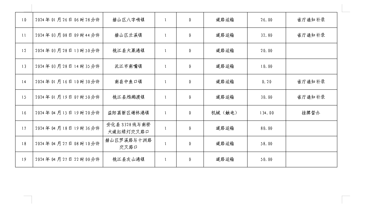 1.赫山区:道路运输事故5起,死亡5人。与上年同期相比,事故起数增加4起、上升400%,死亡人数增加4人、上升400%。
