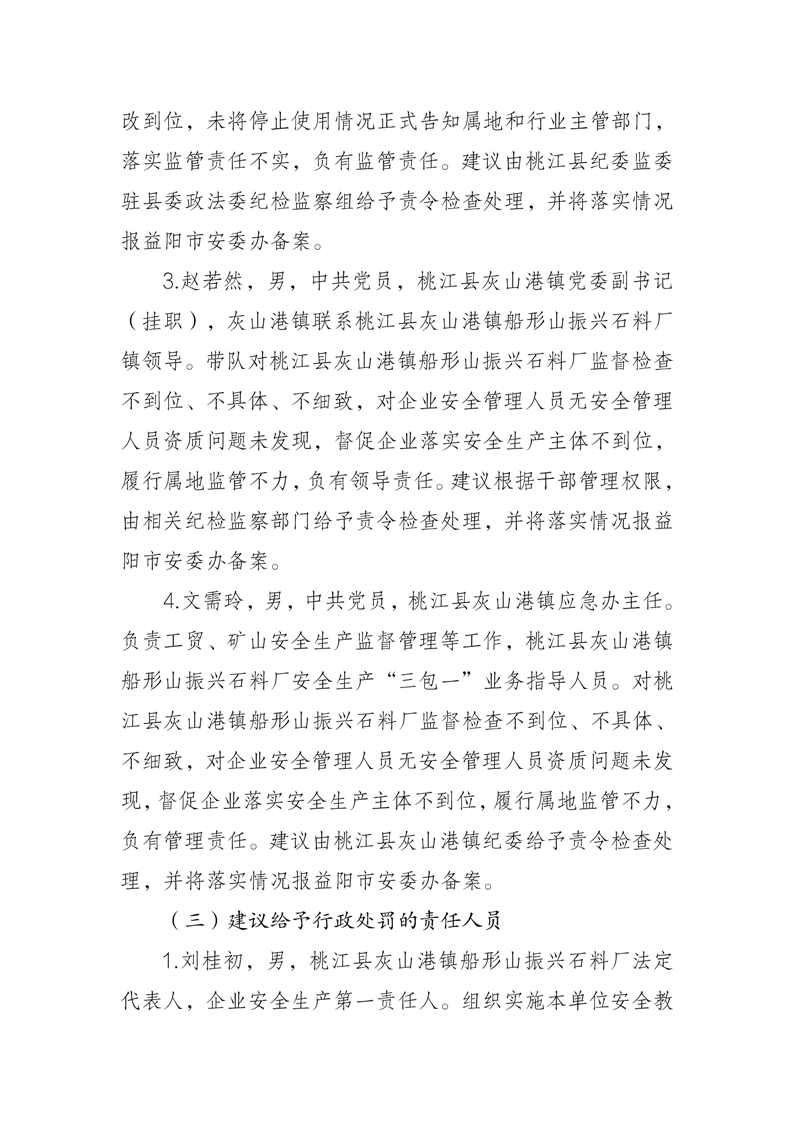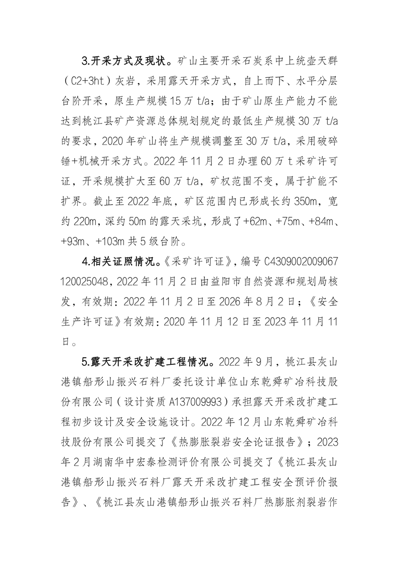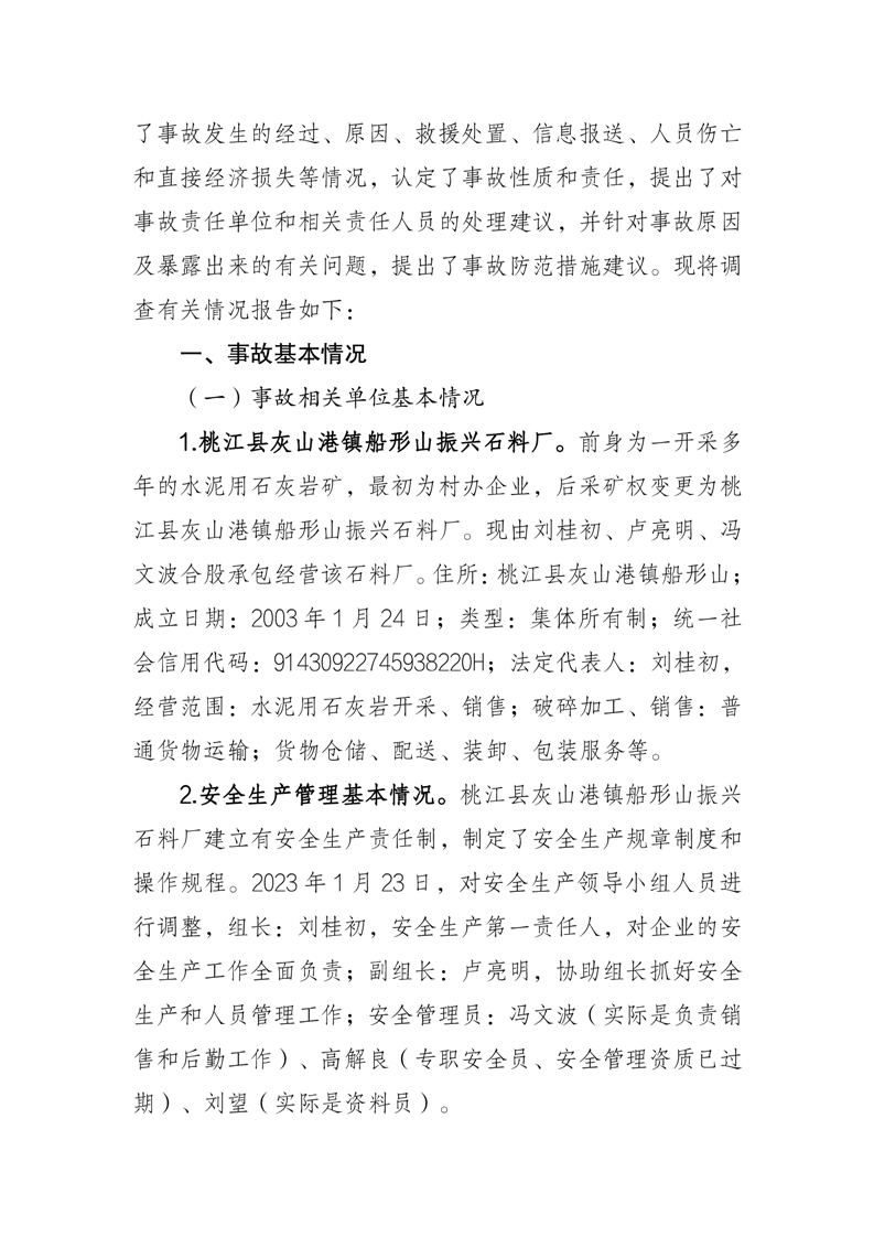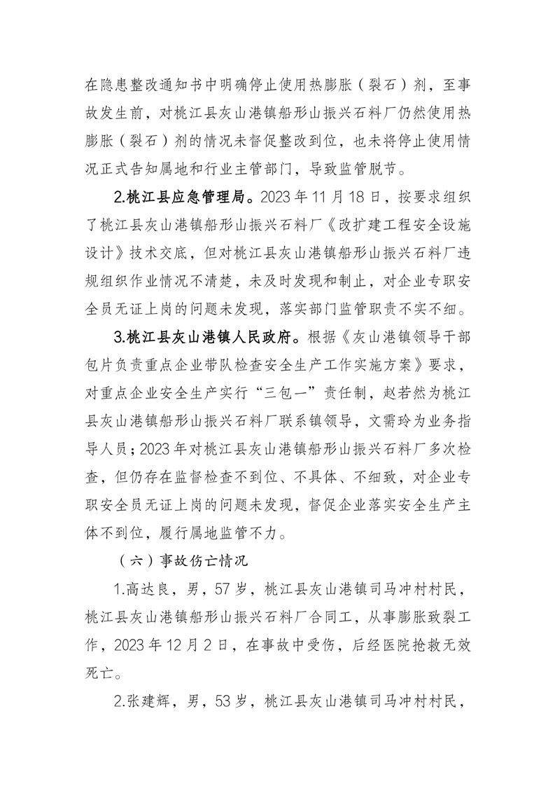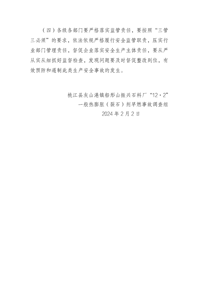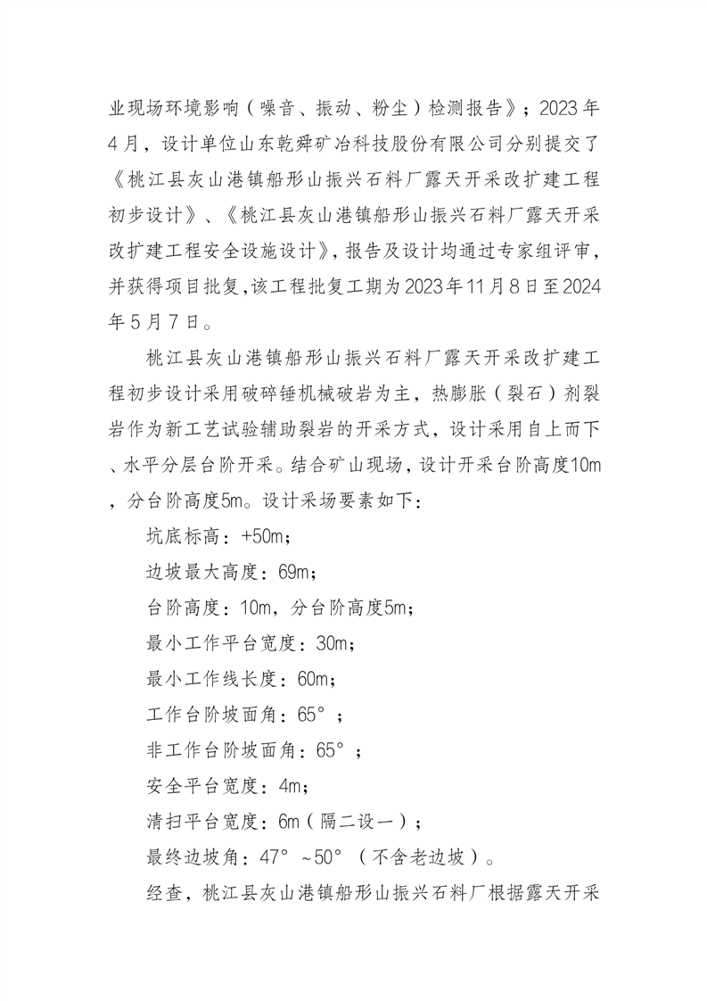 桃江县灰山港镇船形山振兴石料厂“12·2”一般热膨胀(裂石)剂早燃事故调查报告