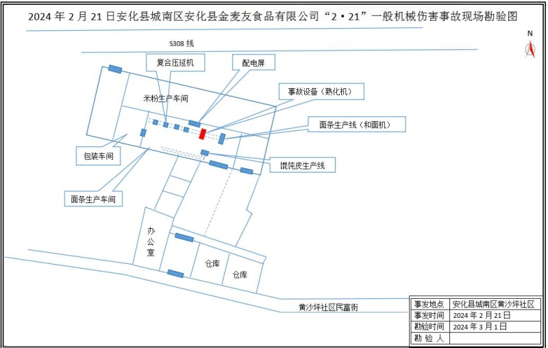 2024年2月21日22时22分许,在安化县城南区黄沙坪社区安化县金麦友食品有限公司面条生产车间发生一起机械伤害事故,导致一人死亡,事故直接经济损失约100万元(不含事故罚款)。