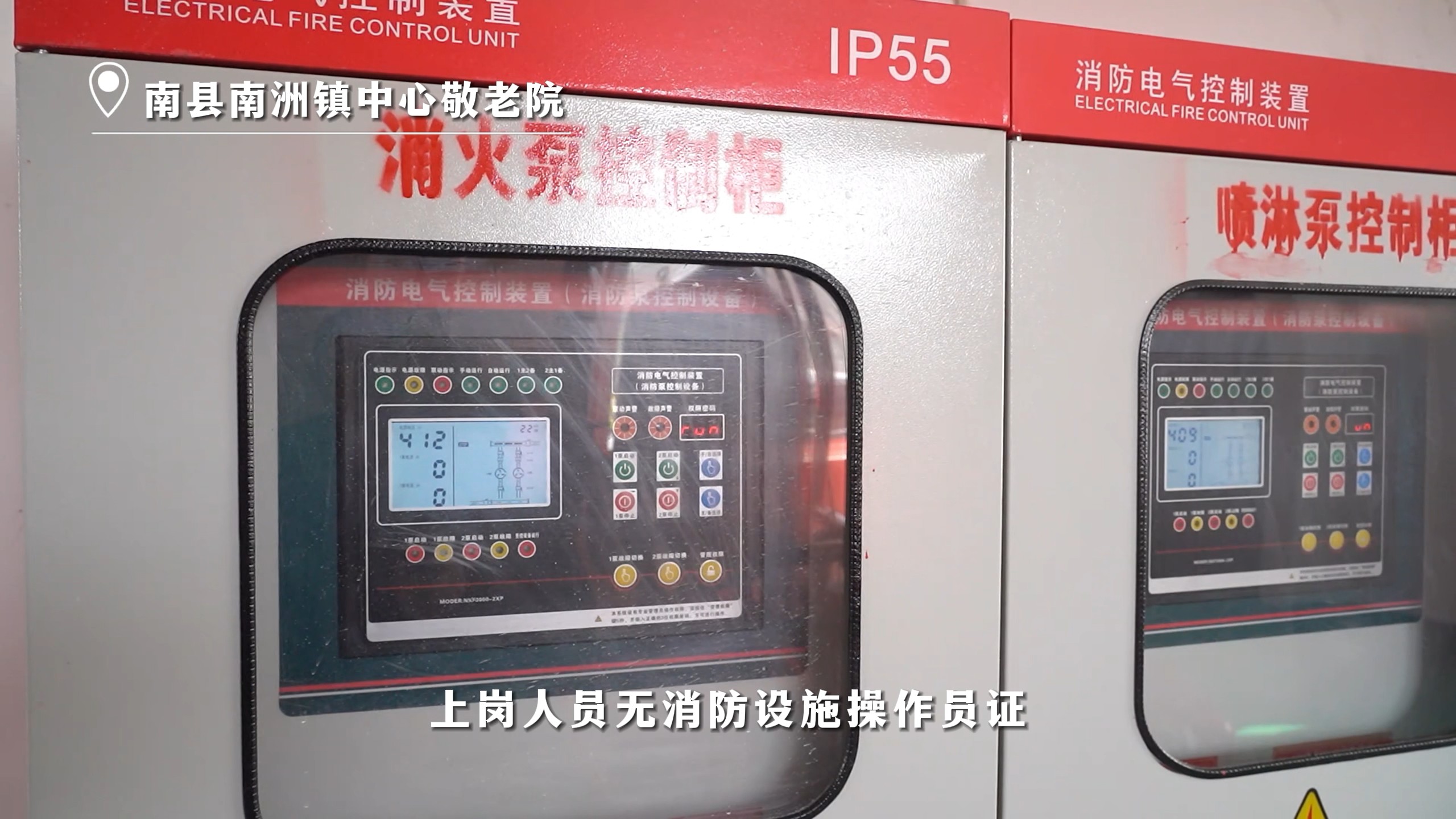 南县南洲镇中心敬老院:消防控制室设备齐全,上岗人员无消防设施操作员证。