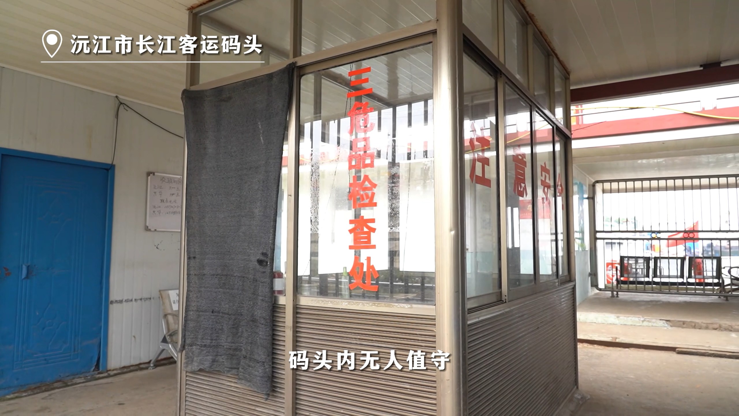 沅江市长江客运码头:码头内无人值守,船边缺少防护栏或防护网,船上强电与弱电混合捆绑。