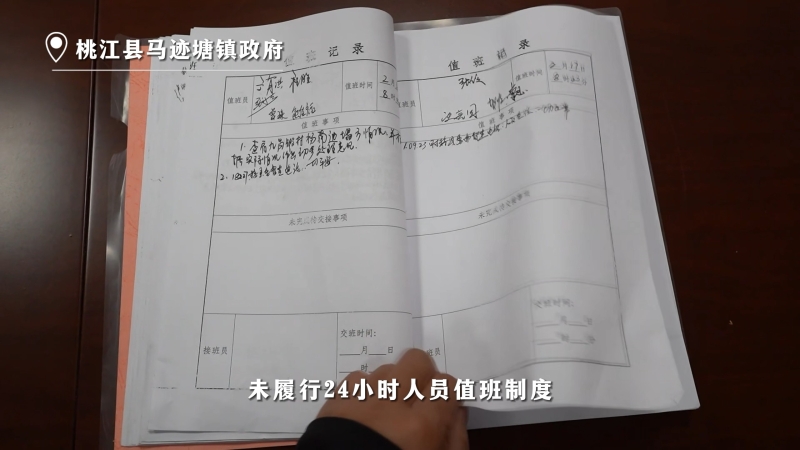 在桃江县马迹塘镇政府,暗访组发现,应急值班室无固定电话,未履行24小时人员值班制度,无接班员交接和值班事项登记。护林员制度落实不到位。