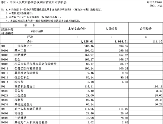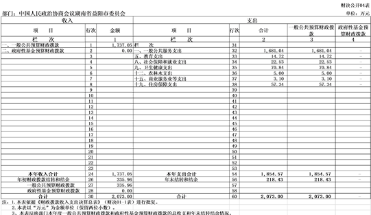 第二部分 中国人民政治协商会议湖南省益阳市委员会2019 年度部门决算表