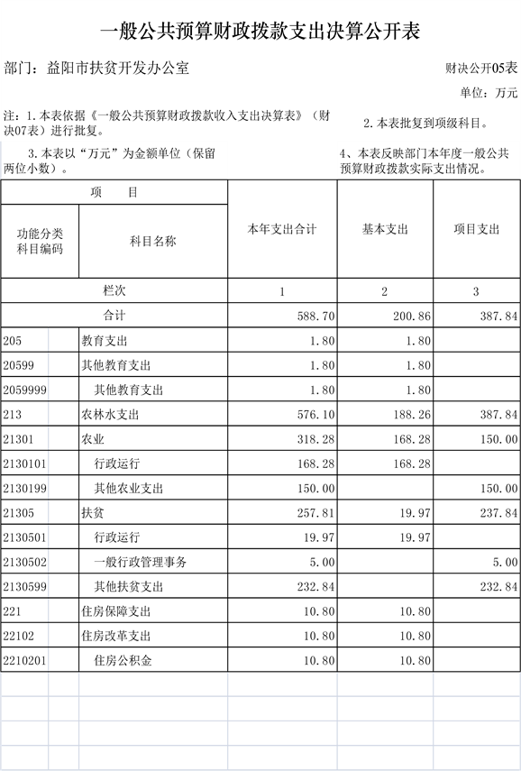 益阳市扶贫开发办公室2019年度部门决算情况说明
