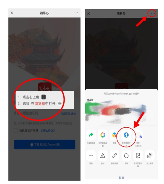 第1步:使用微信扫描识别“湘易办”推广二维码,进入APP安装指引界面。