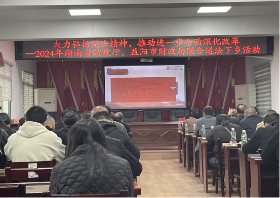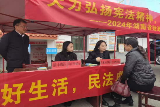2024年12月4日是我国第十一个国家宪法宣传日,以增强全社会的宪法意识、弘扬宪法精神为出发点,为深入学习领悟习近平法治思想,推动全面依法治国、依宪执政。4日上午湖南省财政厅税政法规处联合益阳市财政局前往赫山区兰溪镇,开展以“大力弘扬宪法精神 推动进一步全面深化改革”为主题的送法下乡宣传活动。
