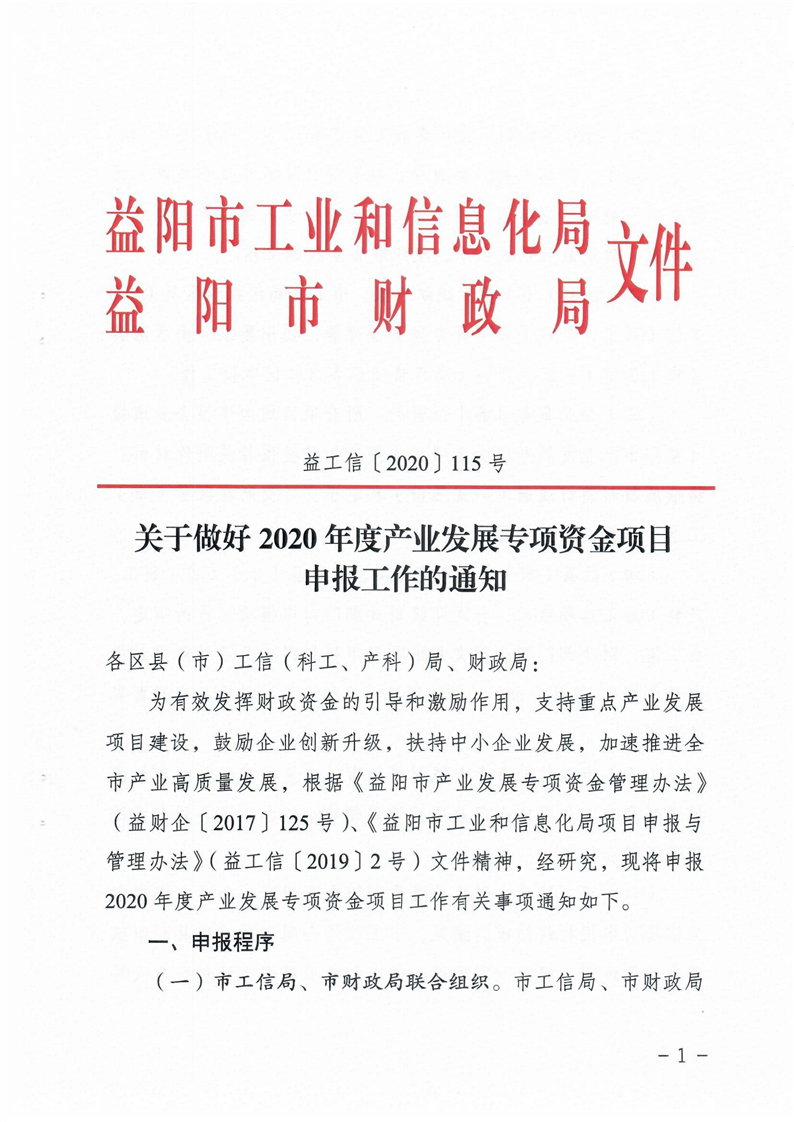 关于做好2020年度产业发展专项资金项目申报工作的通知