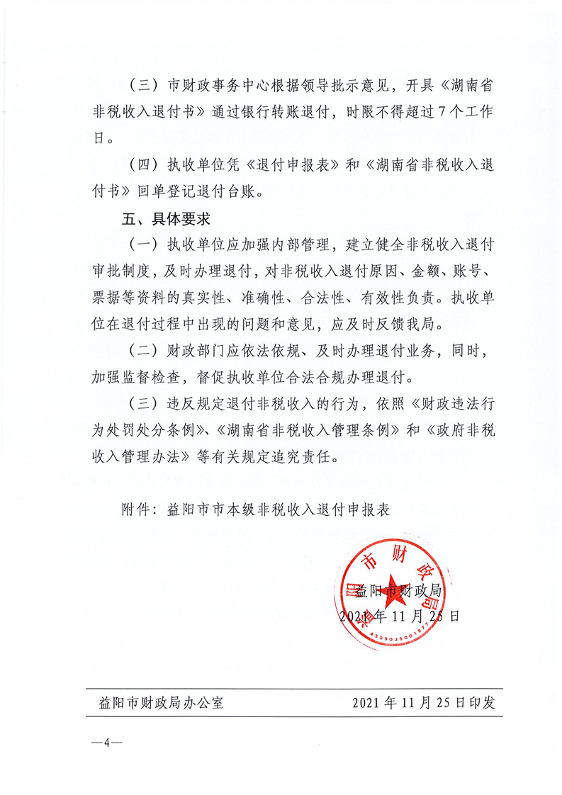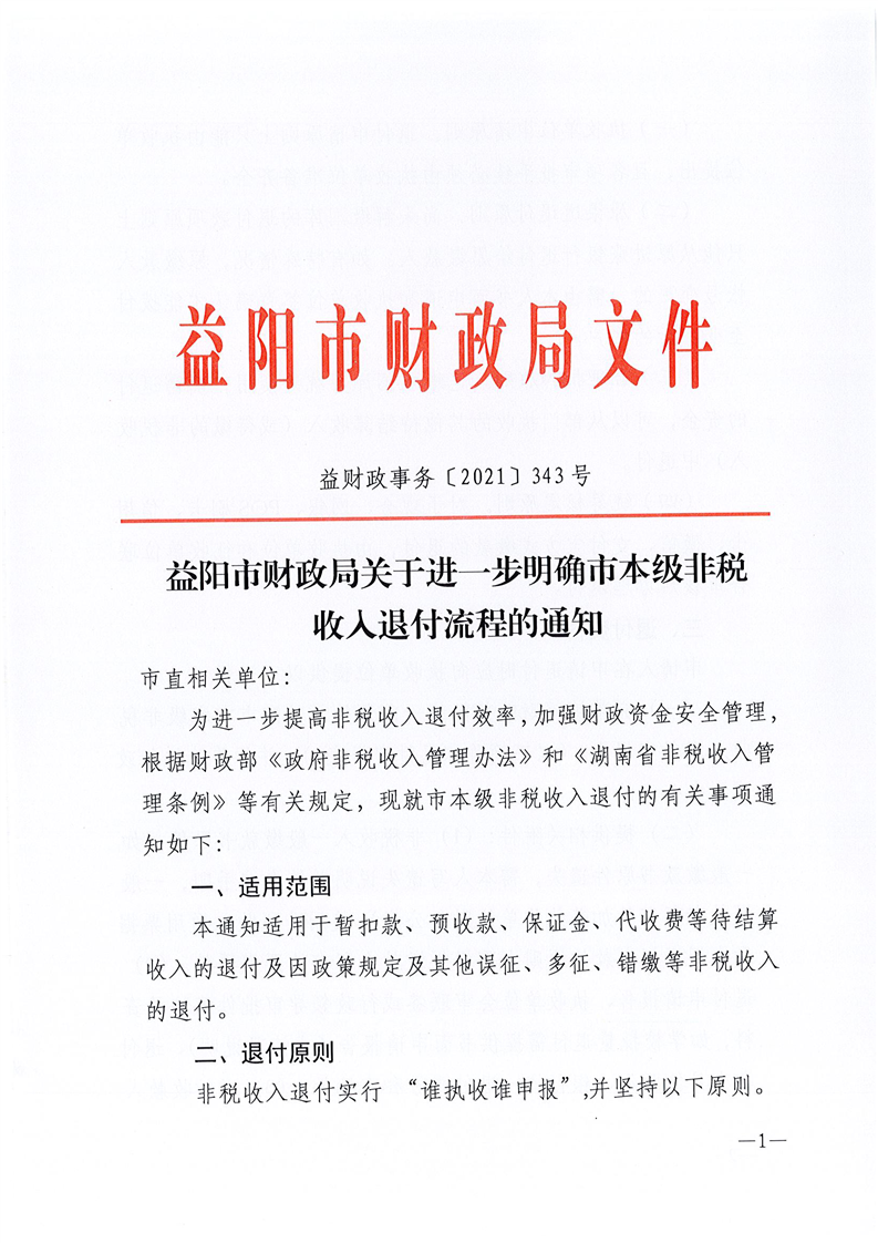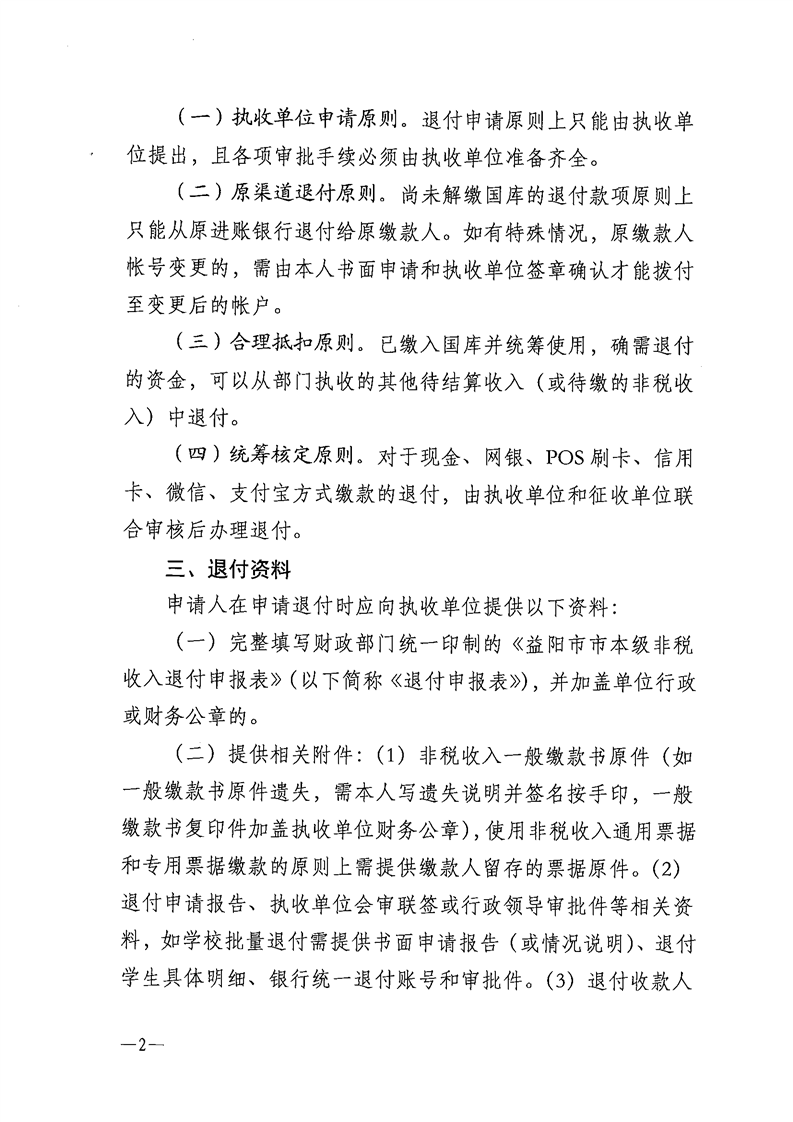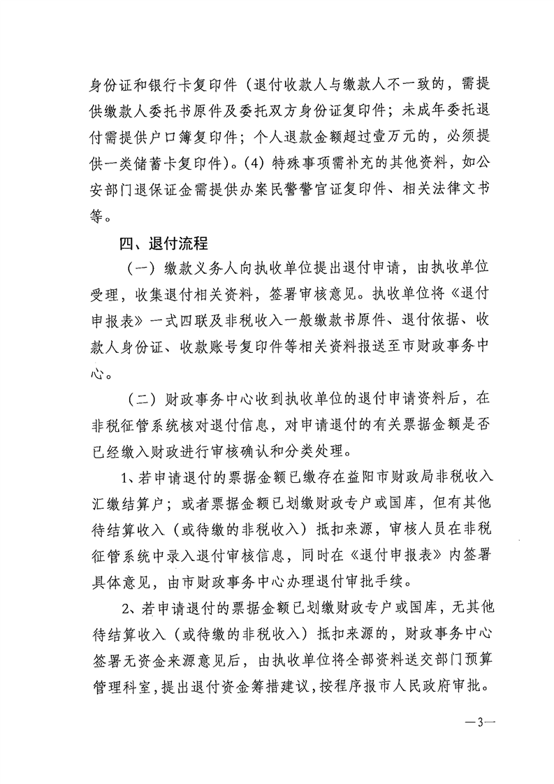 益阳市财政局关于进一步明确市本级非税收入退付流程的通知