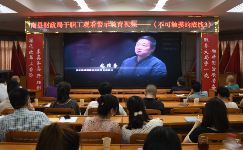 端午节前夕,南县财政局把握传统节假日反腐倡廉关键点,适时召开了全面从严治党工作会议,组织机关全体干职工和财政所长集中观看警示教育片《不可触摸的底线3》,让警钟长鸣不成为一句口号。