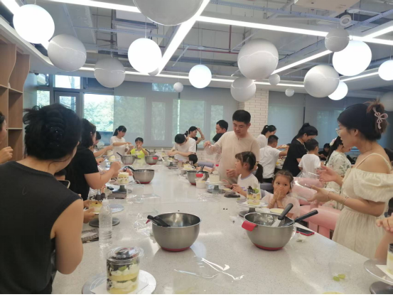 接下来的烘焙课更是充满了欢声笑语。专业的烘焙老师早早准备好了食材和工具,并进行了细致的指导。家长和孩子们分工合作,原本普通的食材在大家的巧手下逐渐变成了一个个造型可爱、色彩鲜艳的蛋糕。汤女士与儿子合作制作的蛋糕获得全场点赞,"平时工作太忙,很少有机会和孩子一起完成作品,今天发现他比想象中更细心",汤女士擦拭着儿子脸上的奶油笑道。活动尾声,各组家庭举着亲手制作的蛋糕合影留念,镜头定格下洋溢着成就感的幸福笑容。