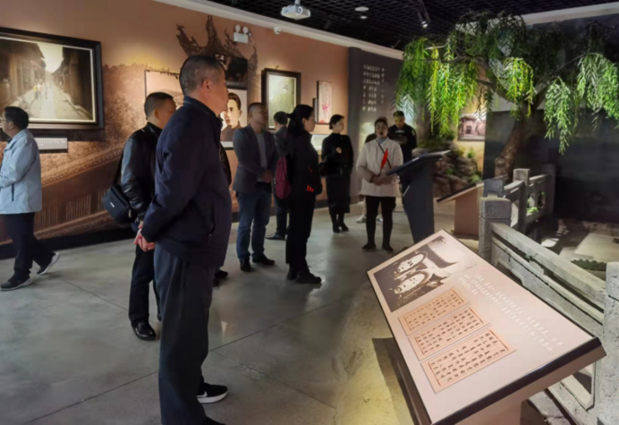 来到梅山文化园党员教育培训基地,支部全体党员面对毛泽东铜像,高举右手庄严宣誓。在展览厅,大家认真聆听讲解,凝神观看一件件珍贵历史实物和图文资料,脑海中重现了青年毛泽东在安化的游学之旅。1917年暑期,正在湖南第一师范读书的青年毛泽东,为了解民情、熟悉社会,同时也为锻炼自己的胆量,邀请当时已从一师毕业、在楚怡小学教书的萧子升,各带一把雨伞、一个挎包,装着简单的换洗衣服和文房四宝,不带分文,外出“游学”。大约7月底8月初到达安化梅城,在这里一住三天,调查民情,拜访学人,游览名胜,感受一方文化。