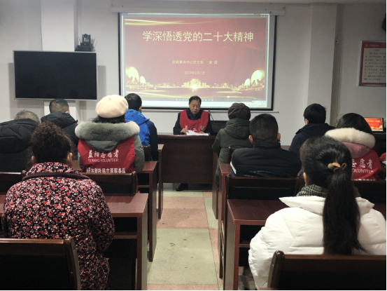 在人民路社区党群服务中心,市财政事务中心主任、党支部书记曾霞同志以《学深悟透二十大精神》为主题,为现场的党员群众上了一堂生动的党课,深入解读党的二十大报告,带领大家在全面学习把握落实党的二十大精神上下功夫,在深学细悟中充分认识和理解党的二十大的重要意义、在亮眼数字中深刻感悟立党为公执政为民的本质要求、在担当实干中成为党的二十大精神的宣传贯彻引领者,通过深入细致学、带着思考学、结合实际学,深刻领会核心要义,做到学深悟透、融会贯通。