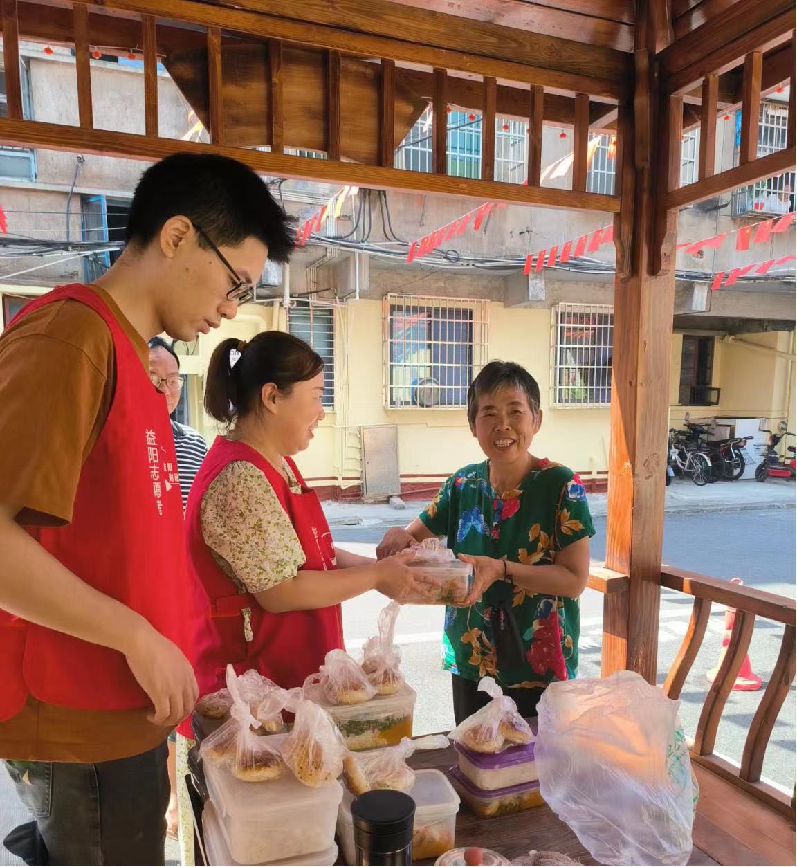 9月7日,在人民路社区出现了几位穿着红马甲、背着保温箱的“外卖员”,在社区休息亭、居民楼门口,“外卖员”们将一份份热气腾腾的饭菜送到社区老人们手中。这是市财政局党员干部正在开展爱心助老志愿活动。