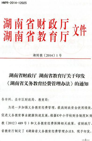 《湖南省义务教育经费管理办法》