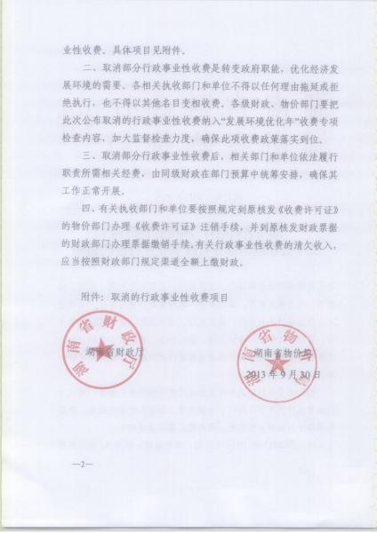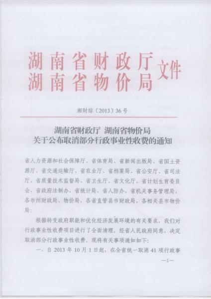 湖南省财政厅湖南省物价局关于公布取消部分行政事业性收费的通知