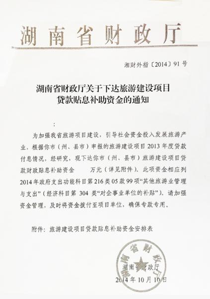 湖南省财政厅关于下达旅游建设项目贷款贴息补助资金的通知