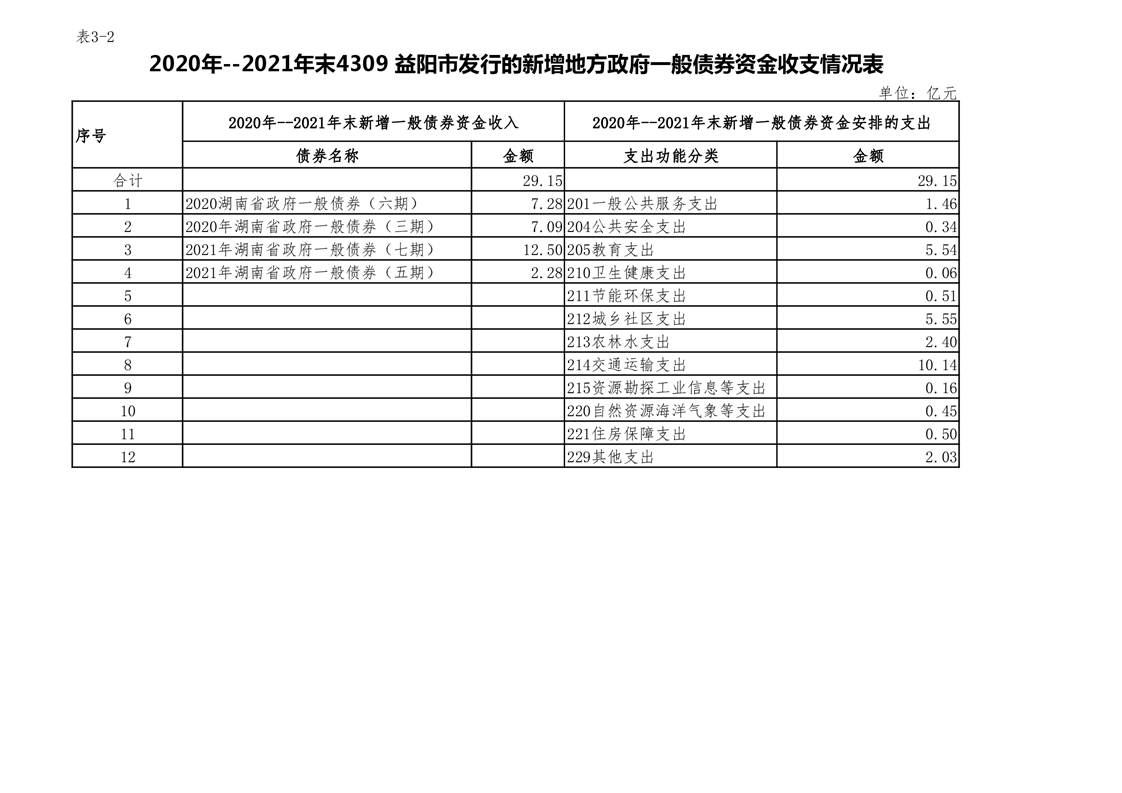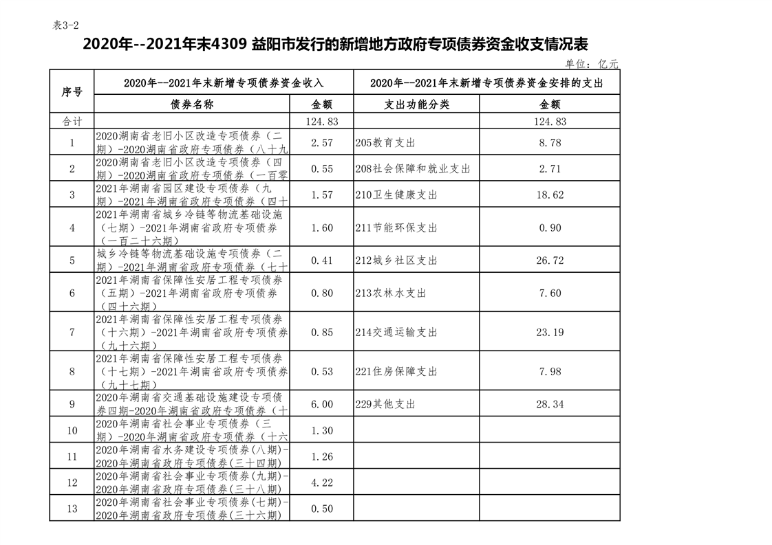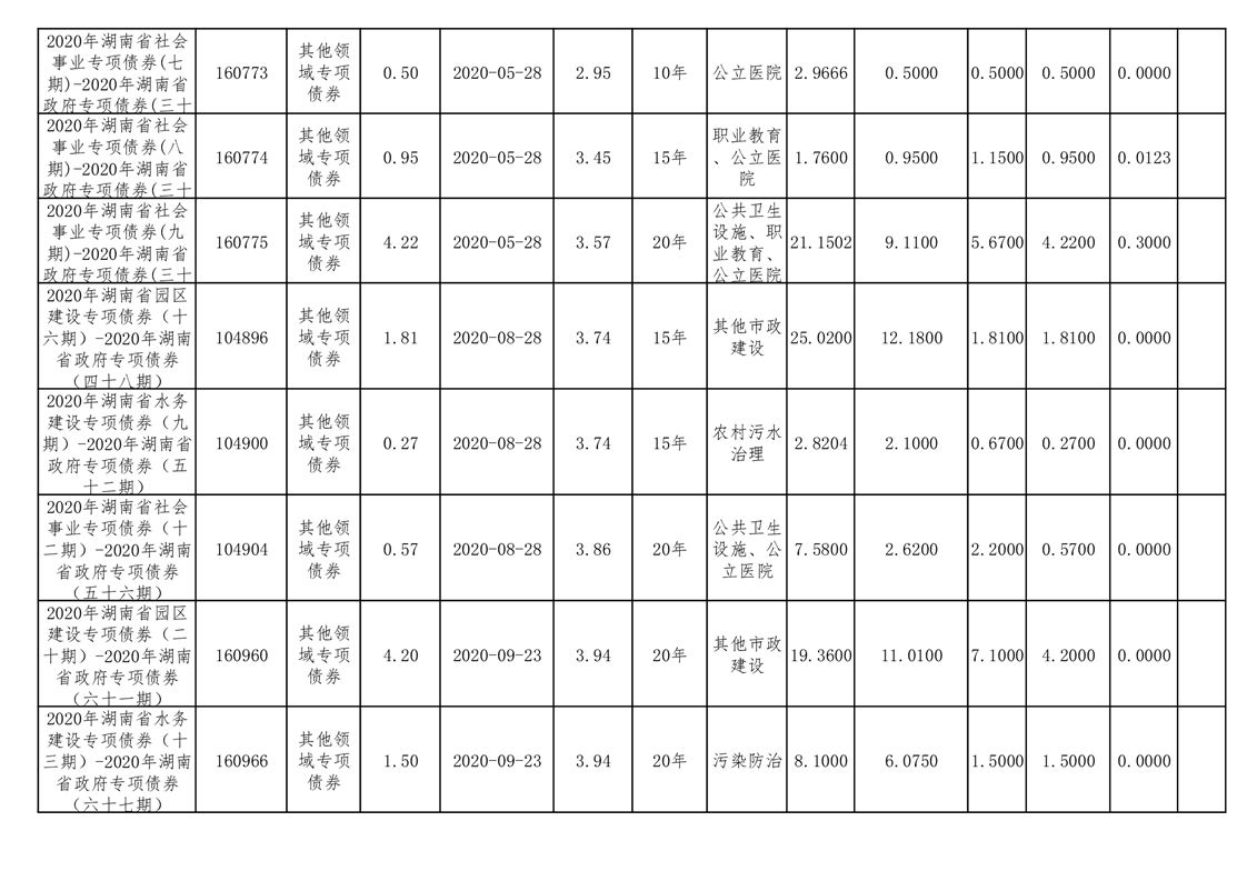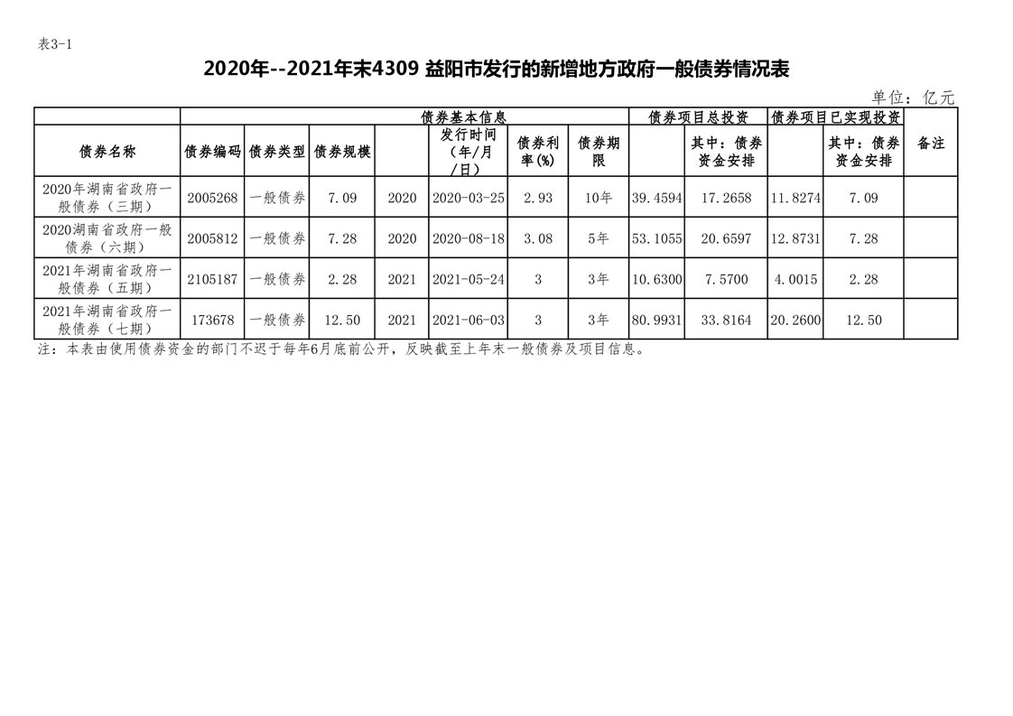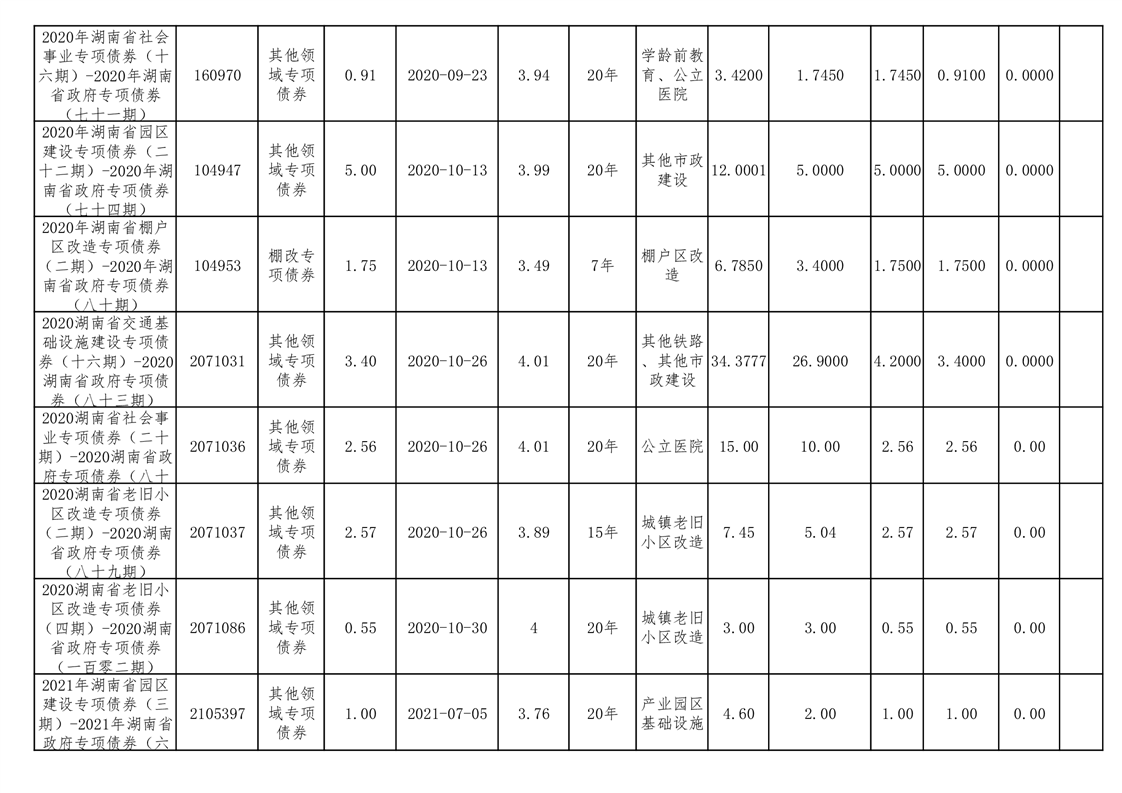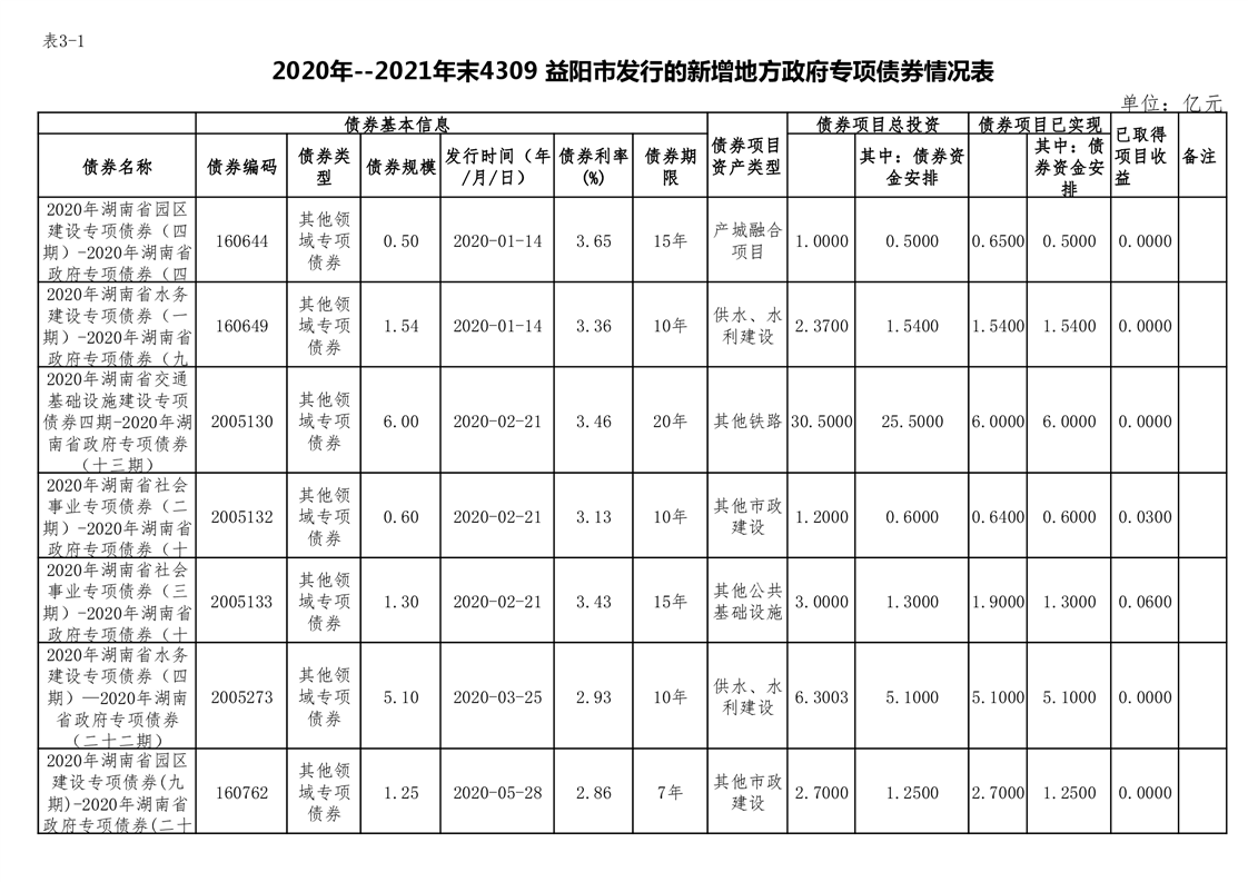 2020年--2021年益阳市新增地方政府债券存续期公开套表