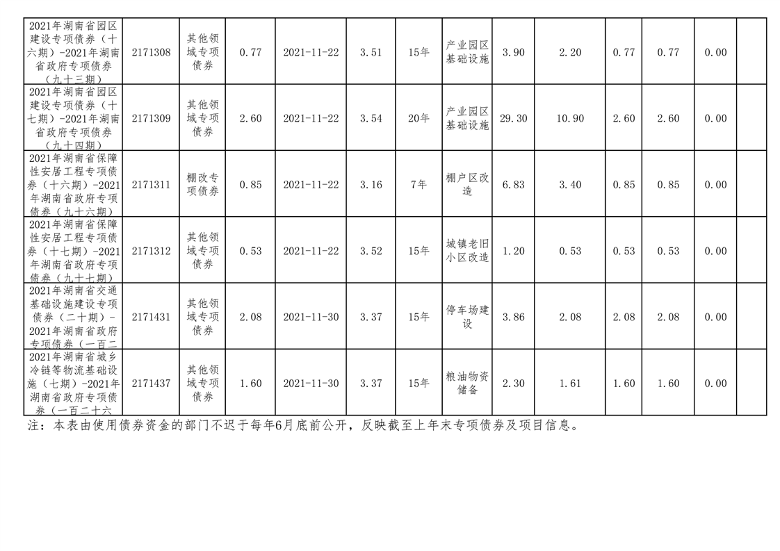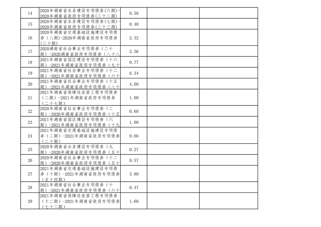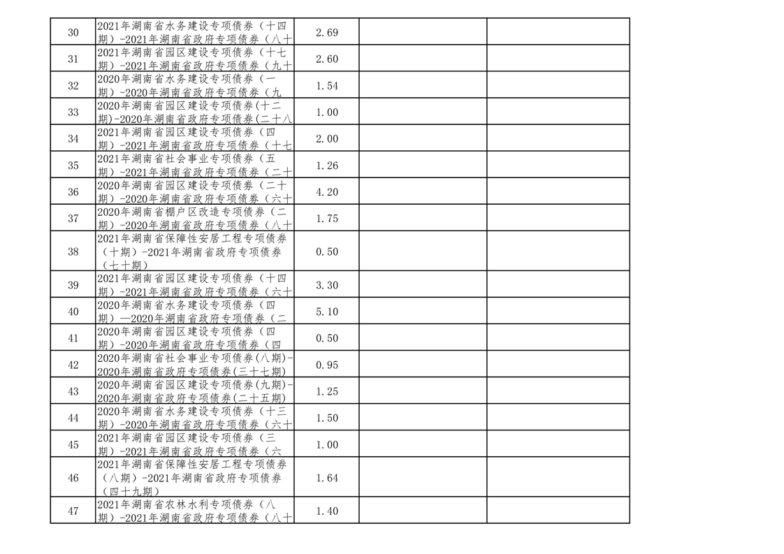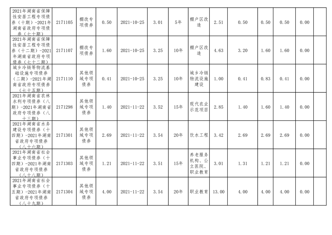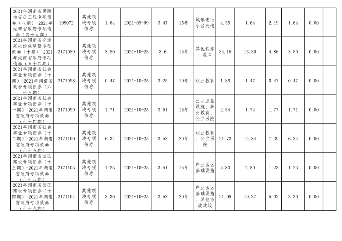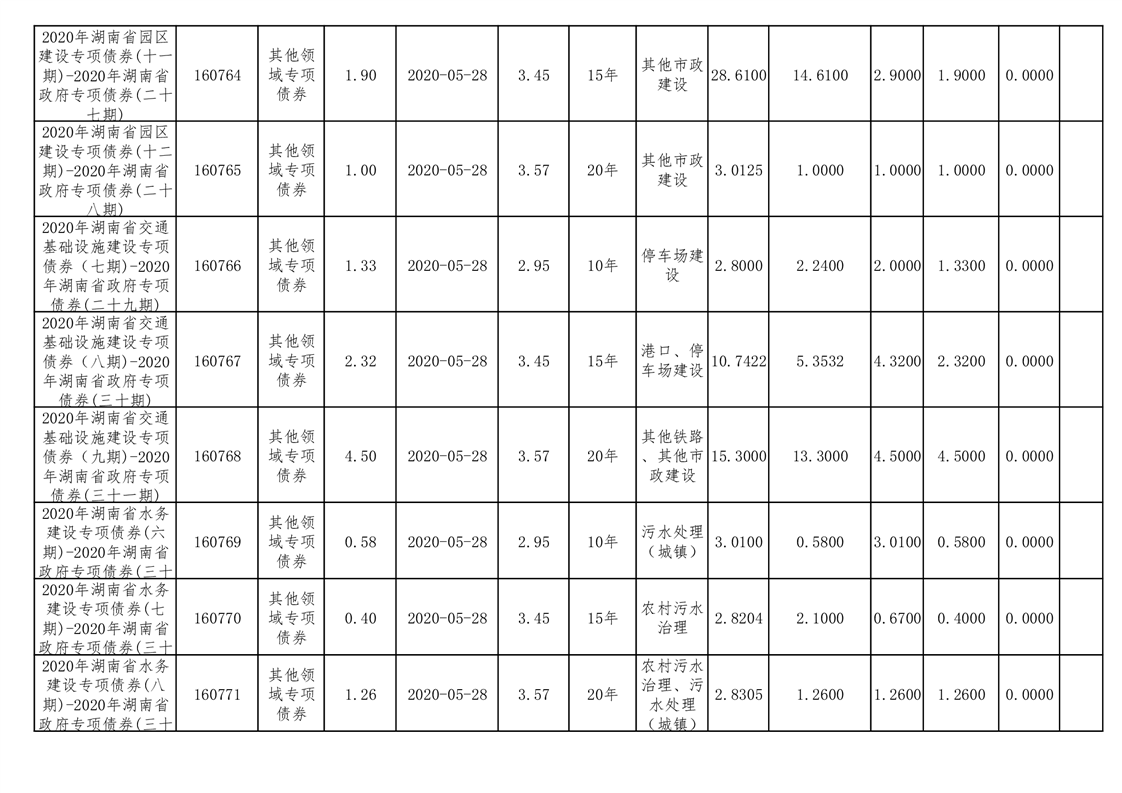 2020年--2021年益阳市新增地方政府债券存续期公开套表