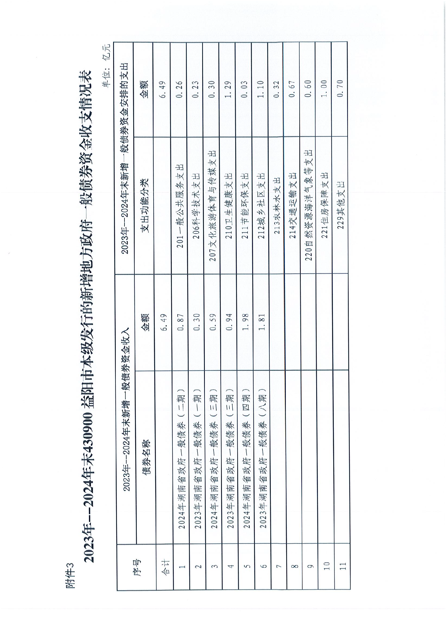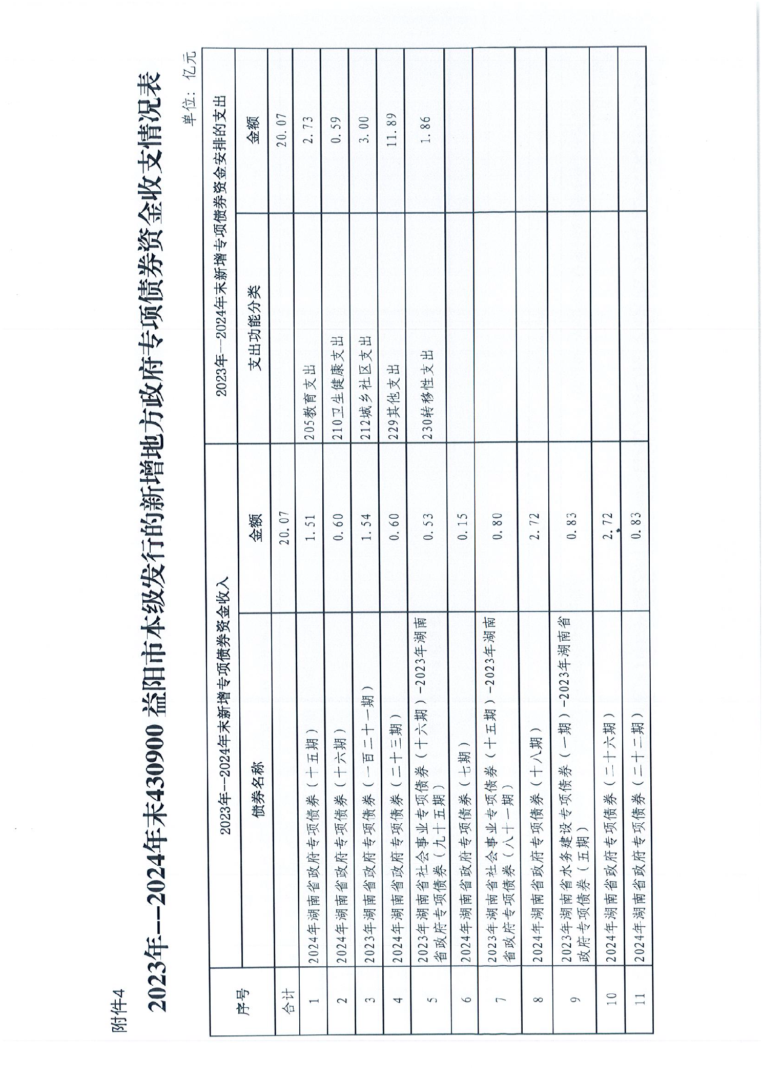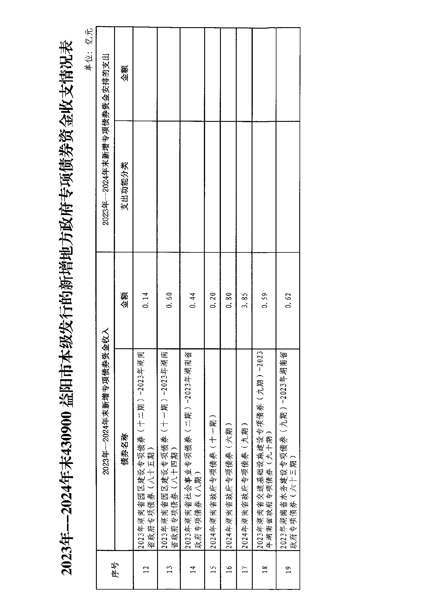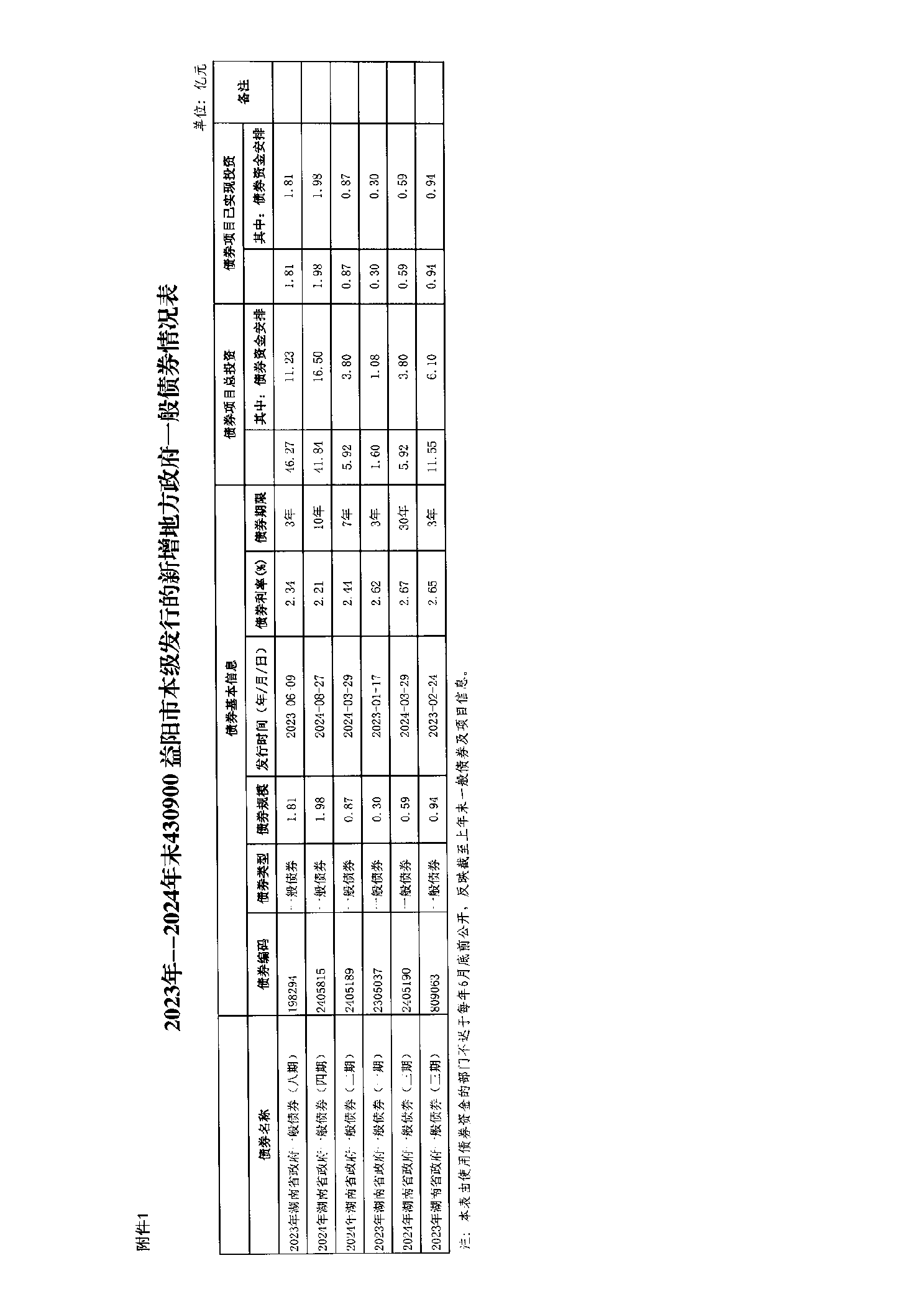 2023年—2024年益阳市本级新增地方政府债券存续期公开套表