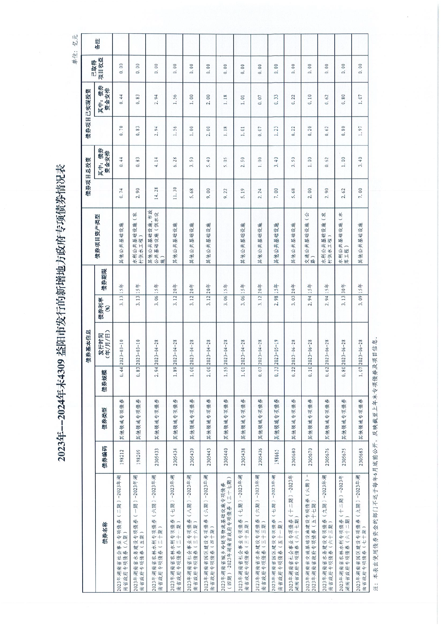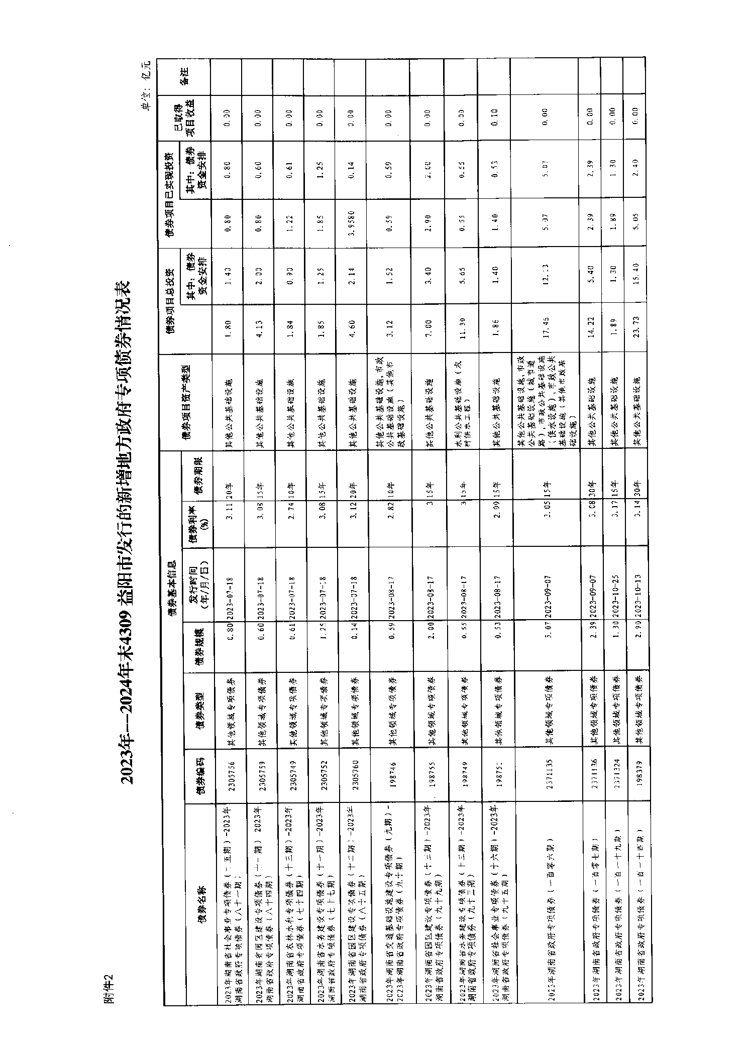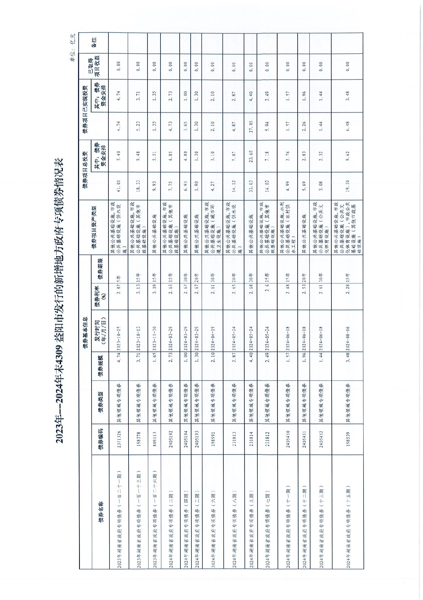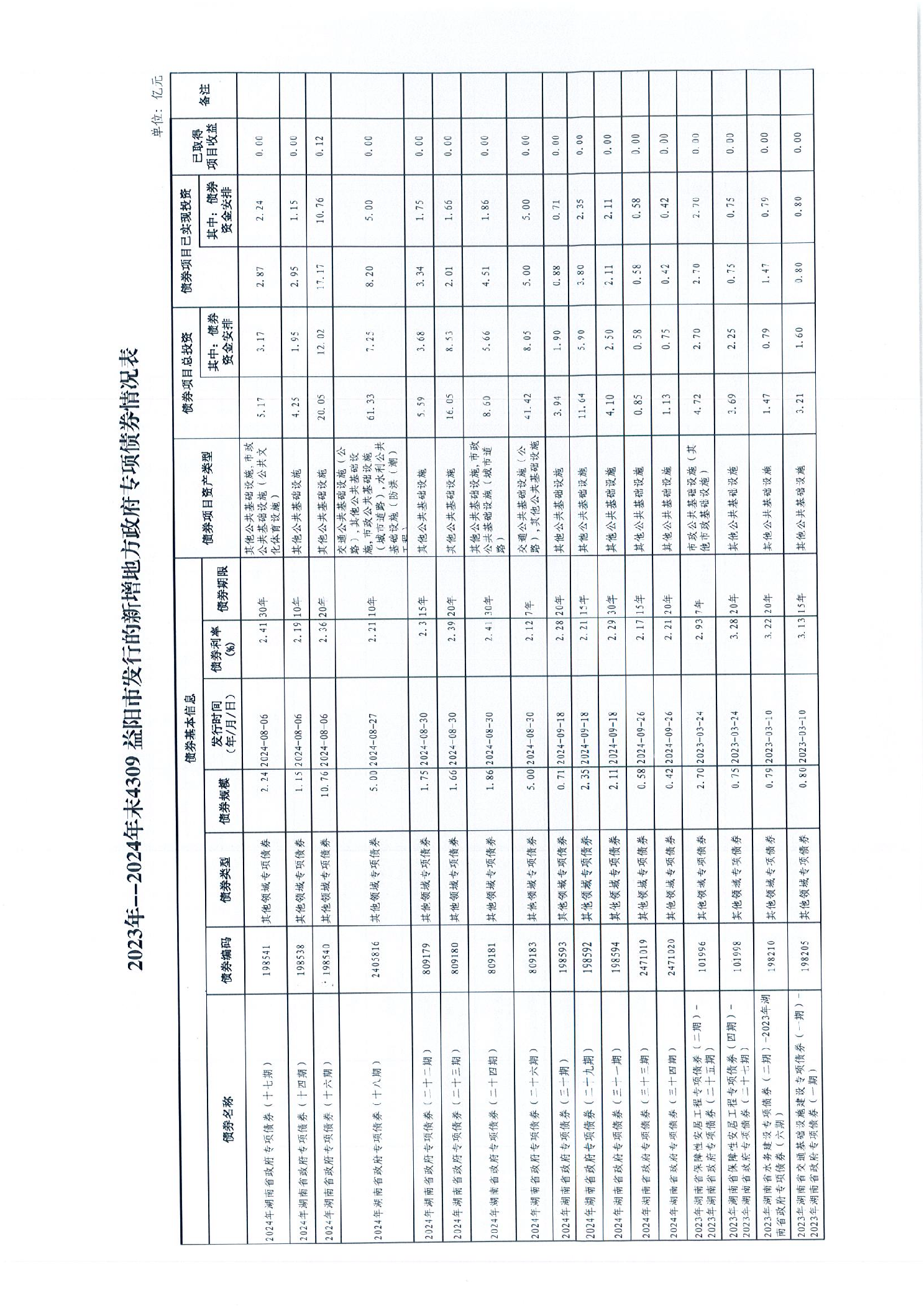 2023年—2024年益阳市新增地方政府债券存续期公开套表