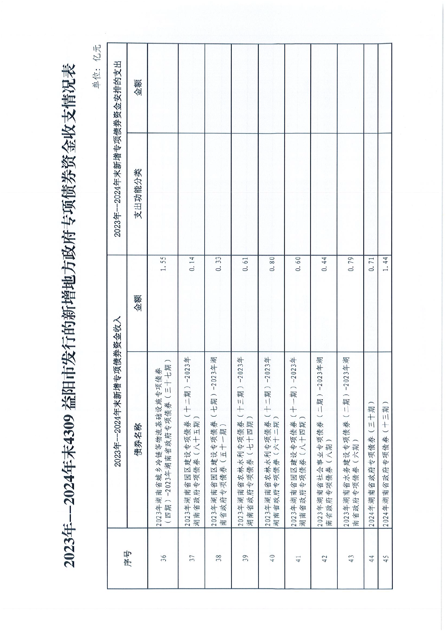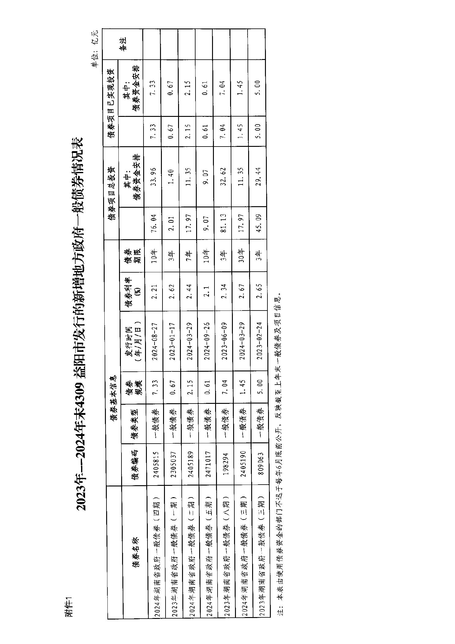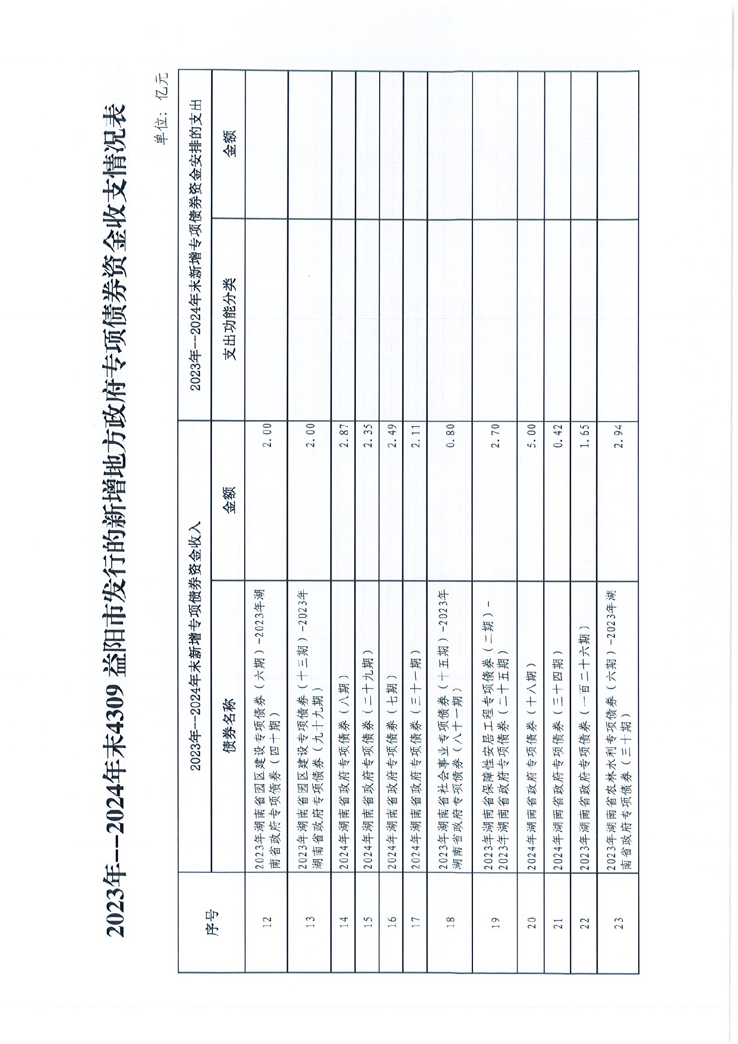 2023年—2024年益阳市新增地方政府债券存续期公开套表